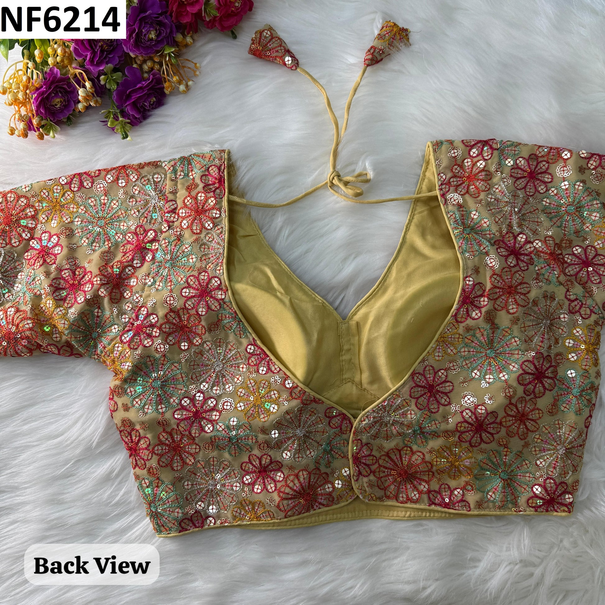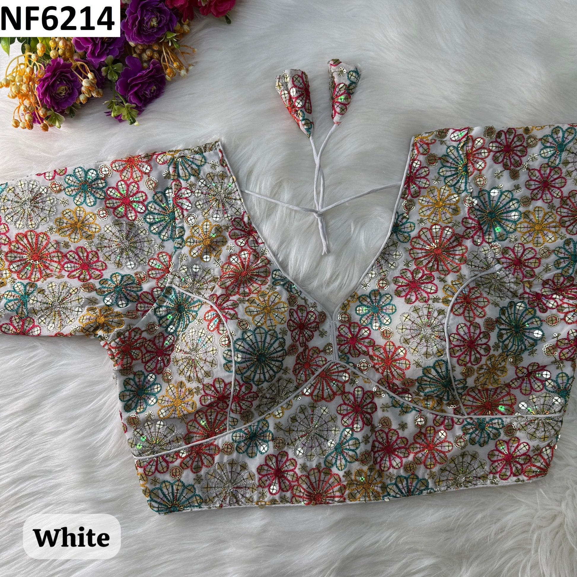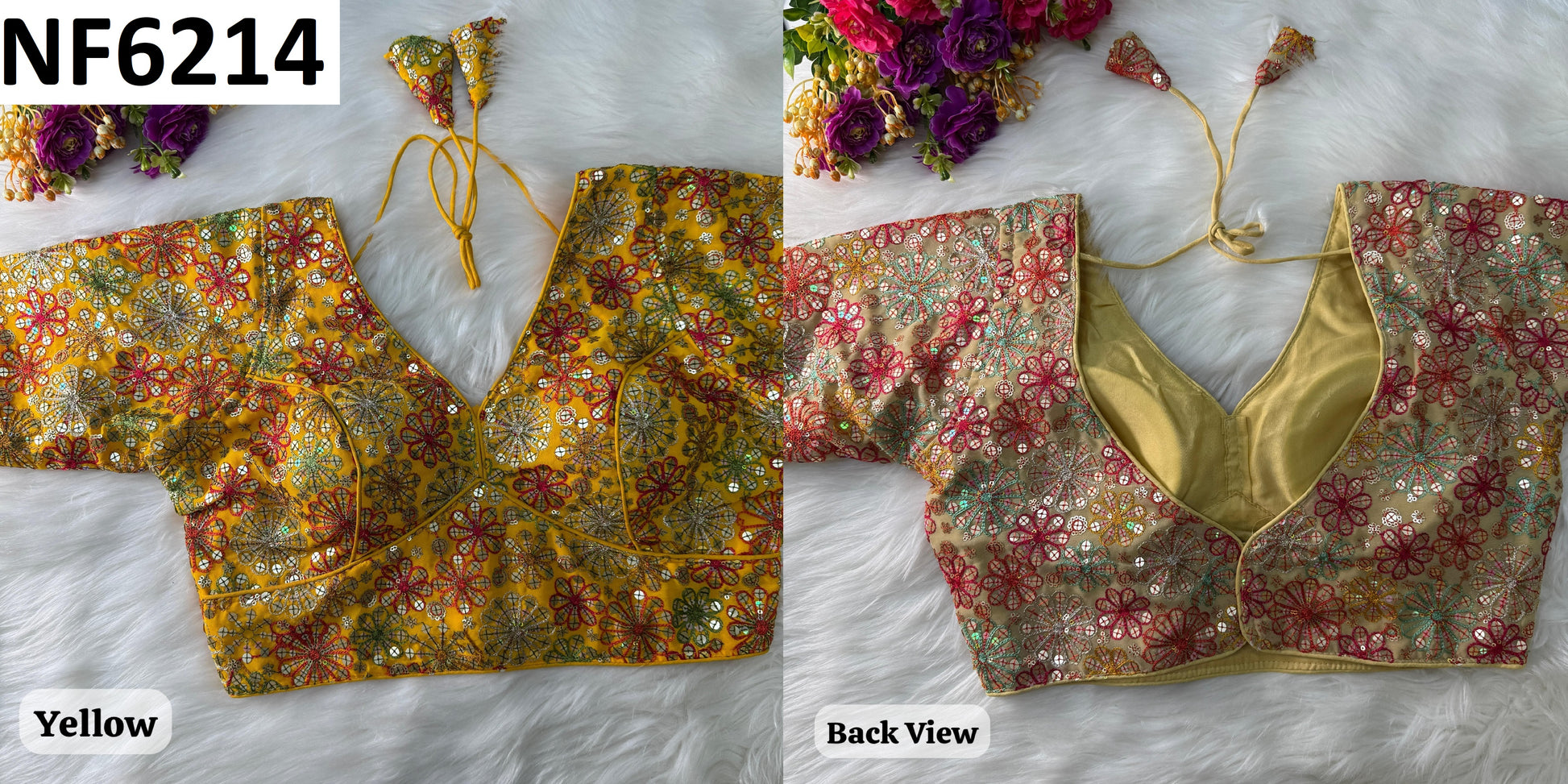 - Fabric Detail: Heavy Fox Georgette Beautiful Traditional Partywear Stitching Heavy Padded With Beautiful Neck Pattern Back Open Style, Sleeves 12 Inch Long Fancy Blouse , , , Size : 40 Ready Ulter Up To 42 Apx