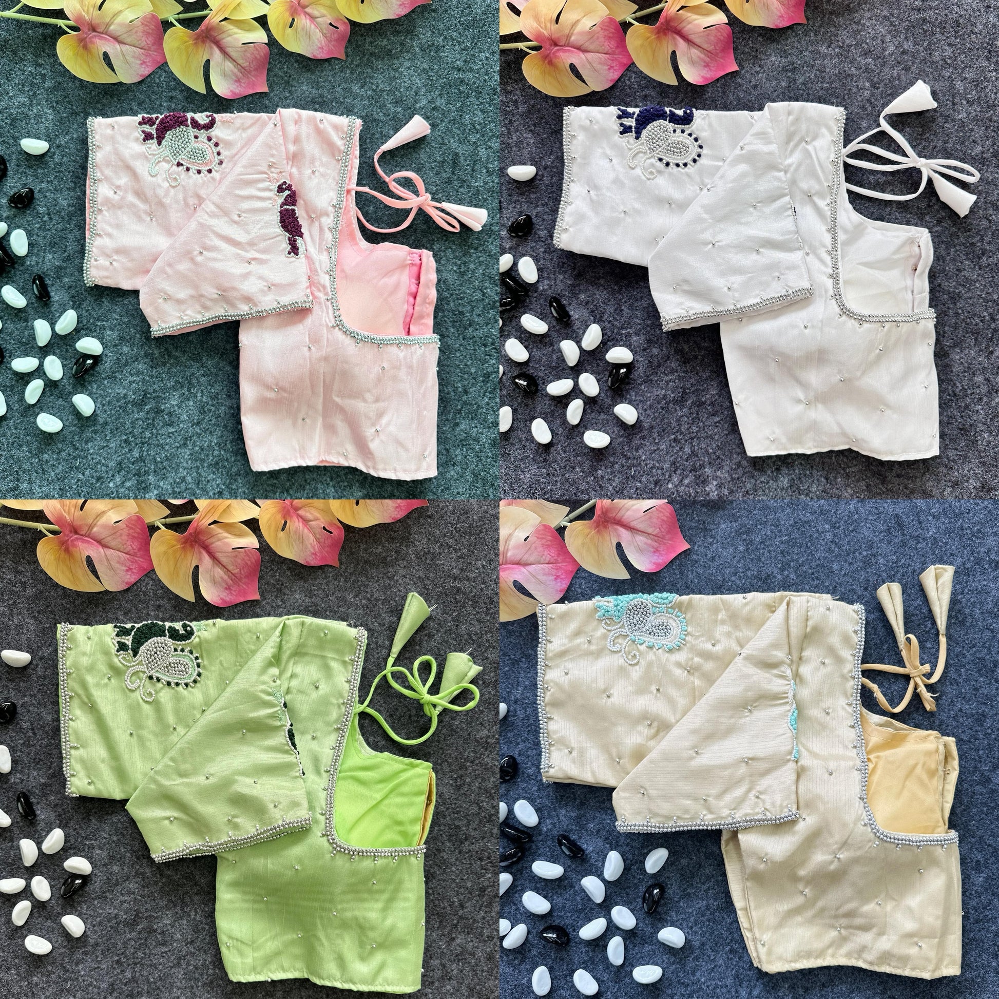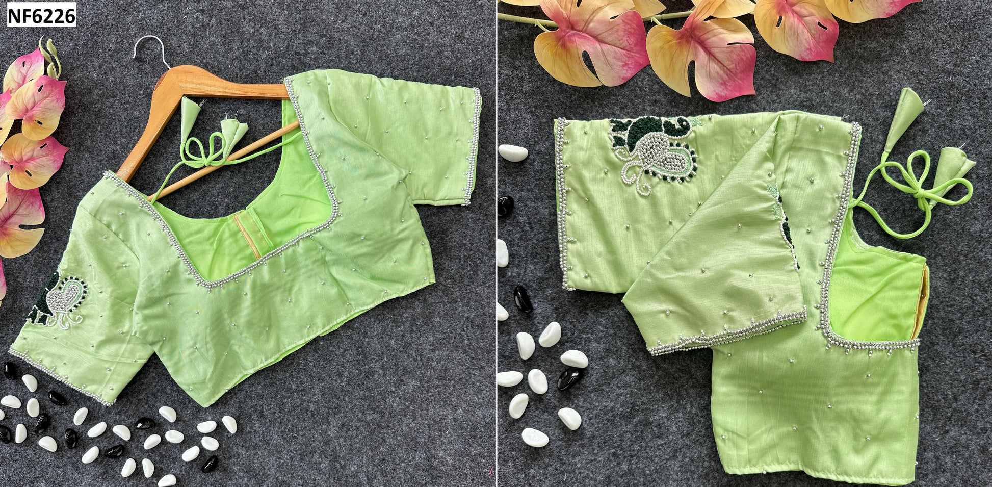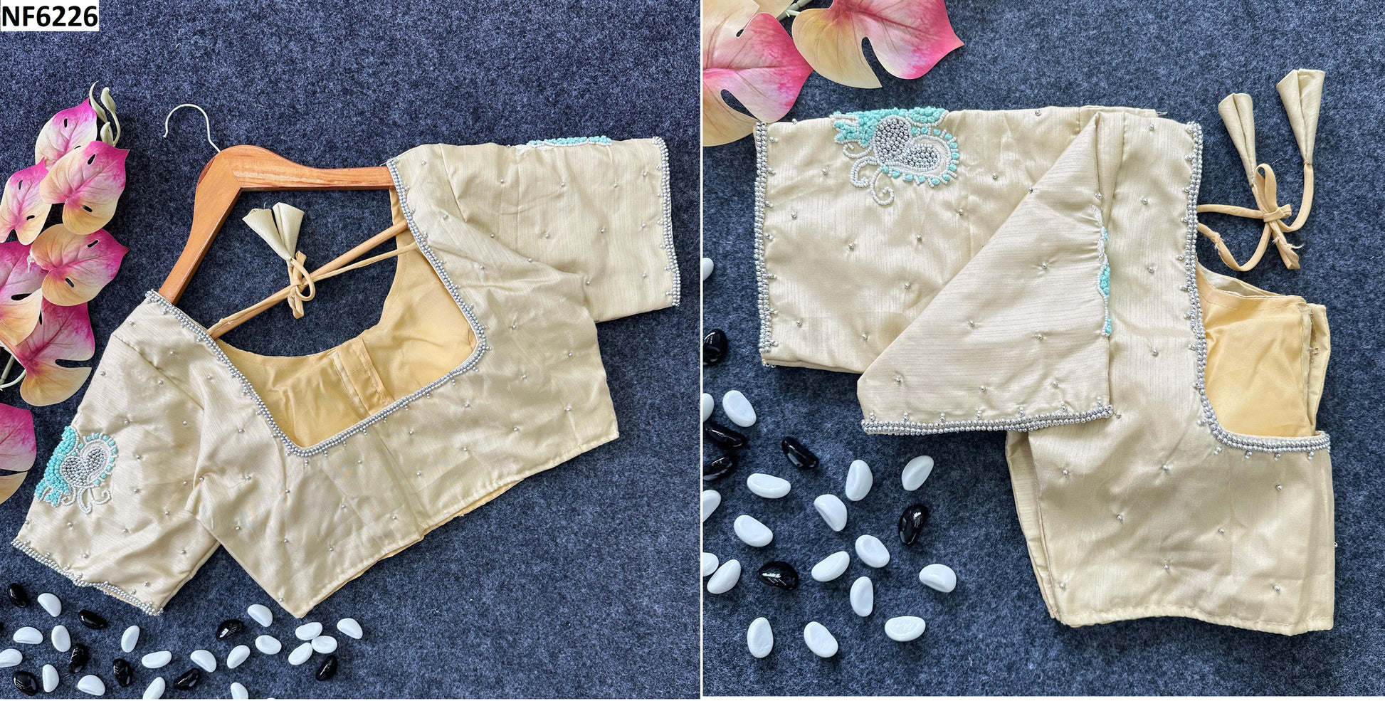 - Fabric Detail: Lemon Silk Beautiful Handwork With Knot Work Attached Pad Fancy Blouse, Length : 15 Apx, Sleeves : 10 Apx, , , Size : 38 Up To 42 Apx