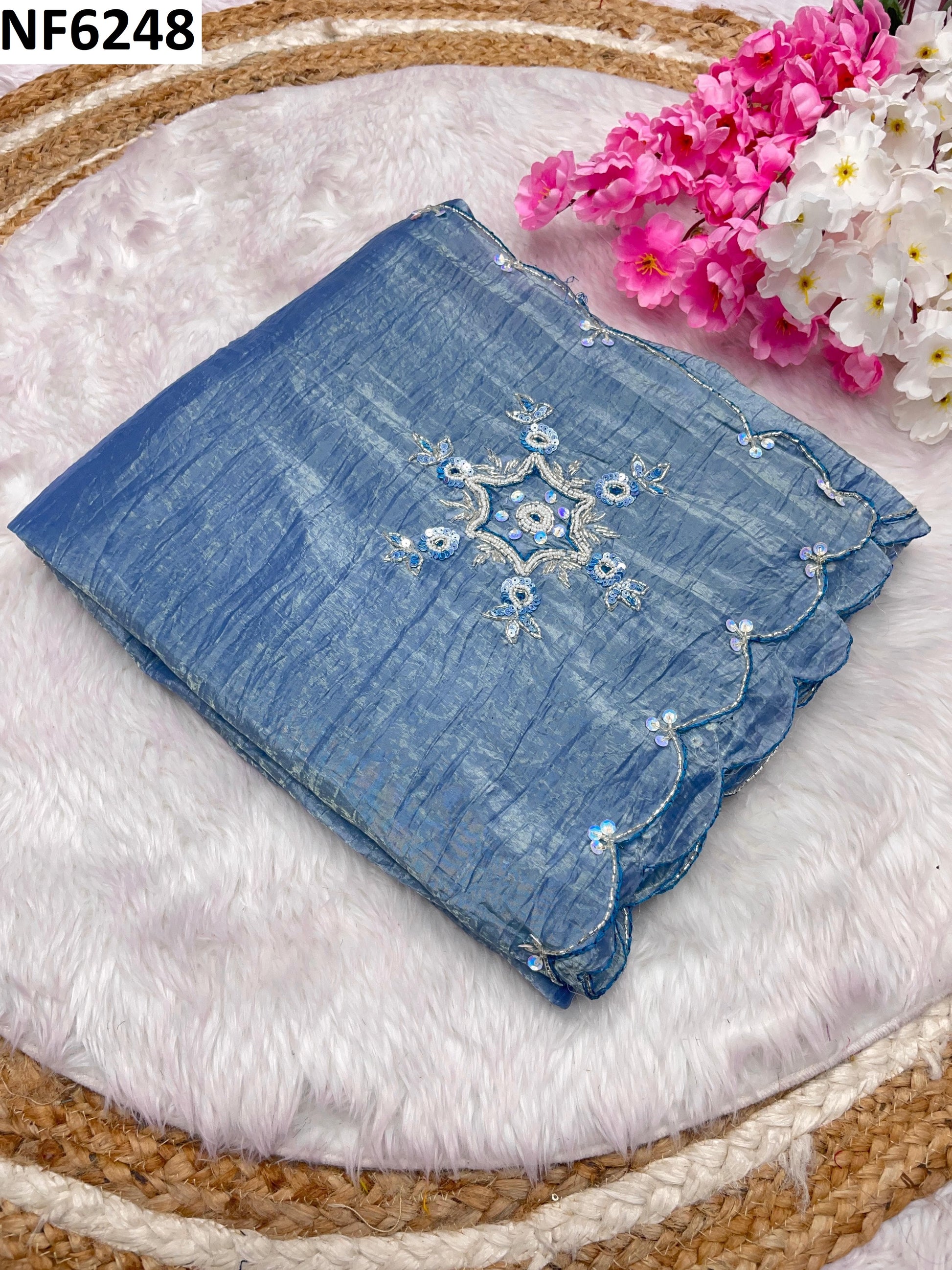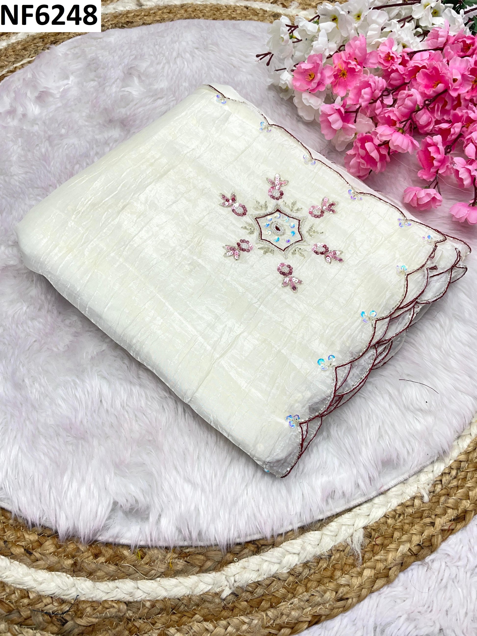 - Fabric Detail: Saree : Gold Crush With Beautiful Khatli Cut Dana Handwork Along Aarco Border, Cut : 5.5 Mtr , Blouse : Jalpari With Heavy Khatli Handwork, Cut : 0.80 Mtr Unstitched , ,