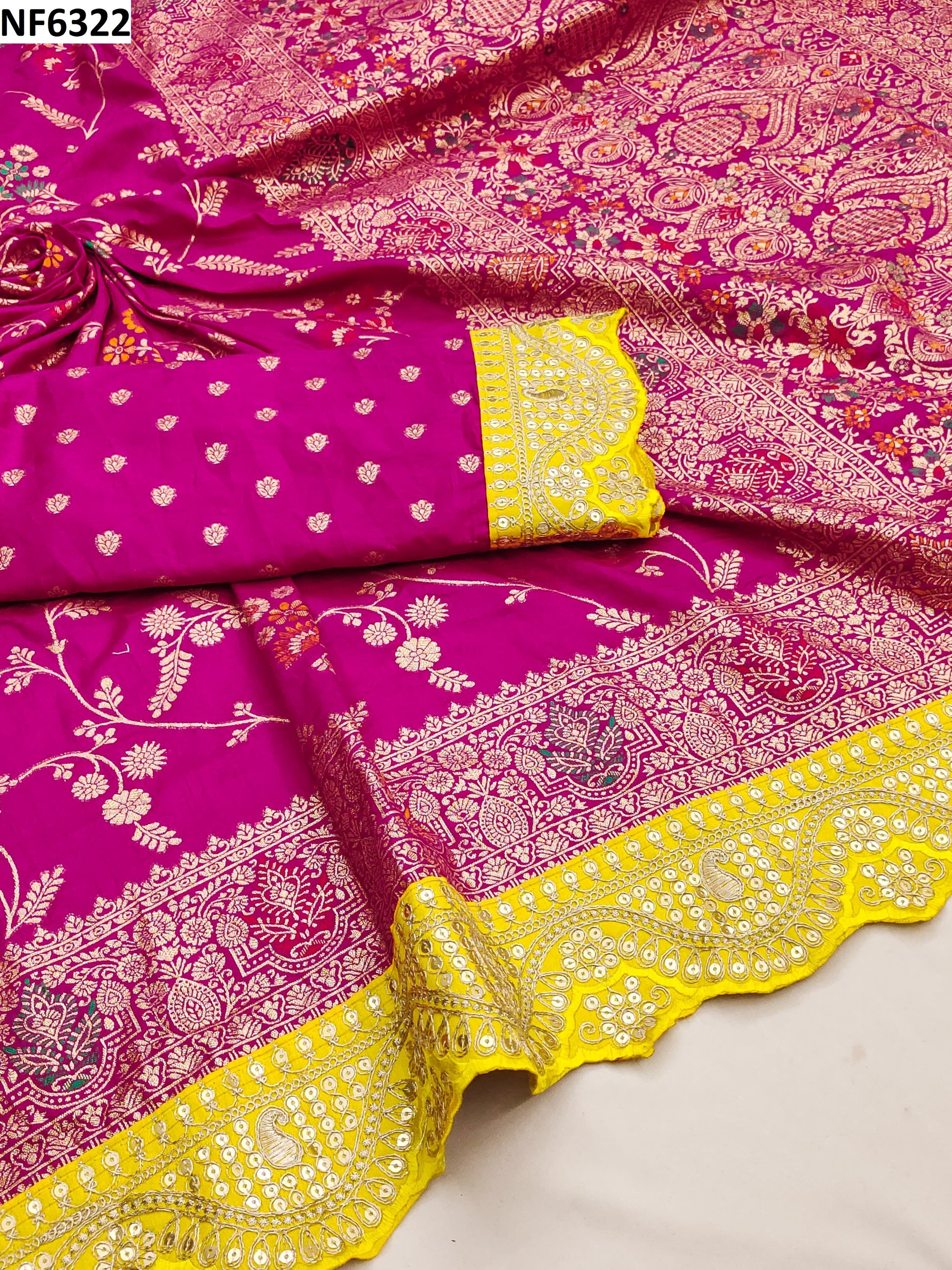 - Fabric Detail: Saree : Pure Soft Dola Silk Heavy Multistiched Work Border Attached, Blouse : Running With Jacquard Border, ,