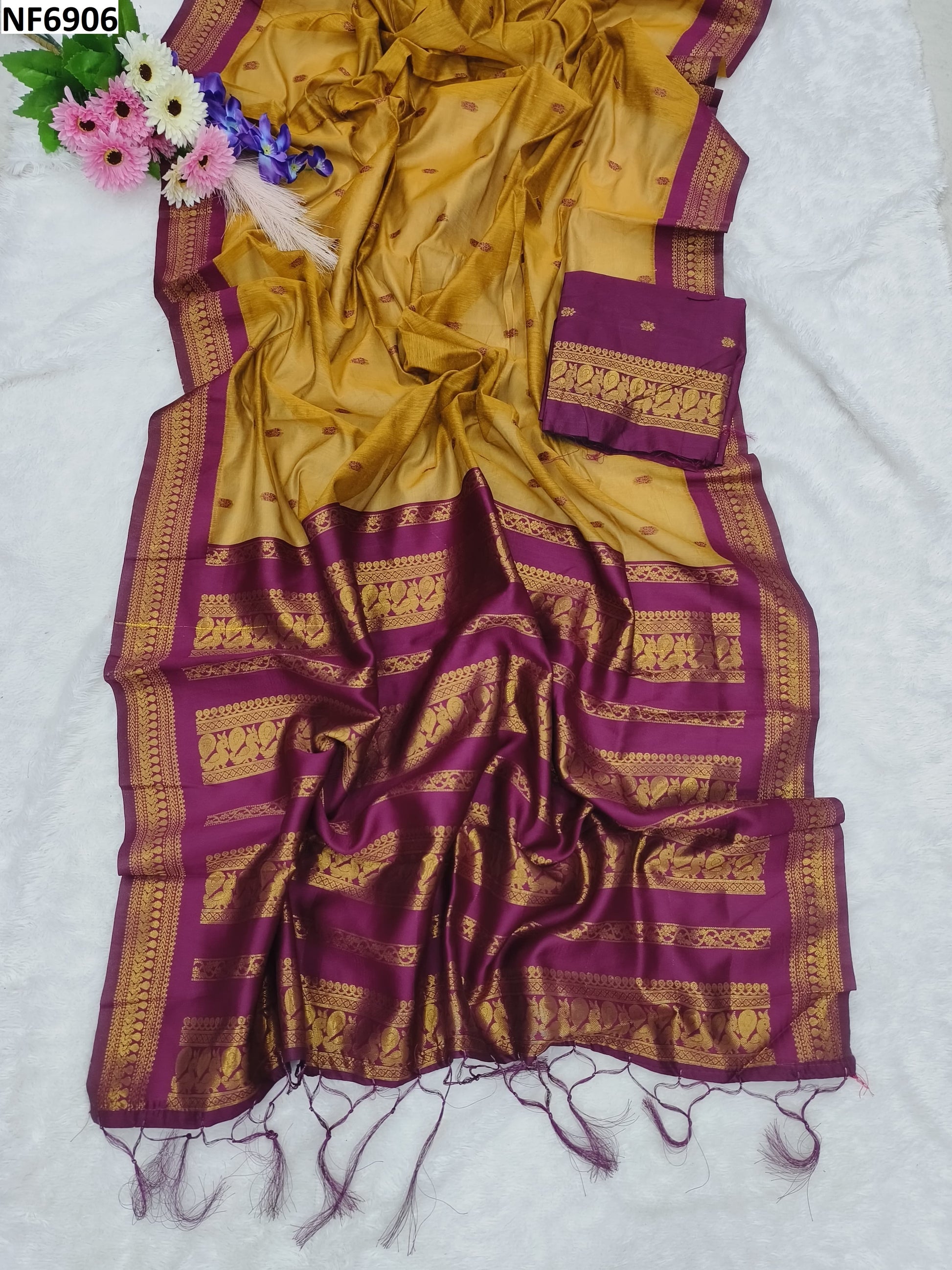 - Fabric Detail: Kalyani Cotton With Gold Zari Silk Saree , , ,