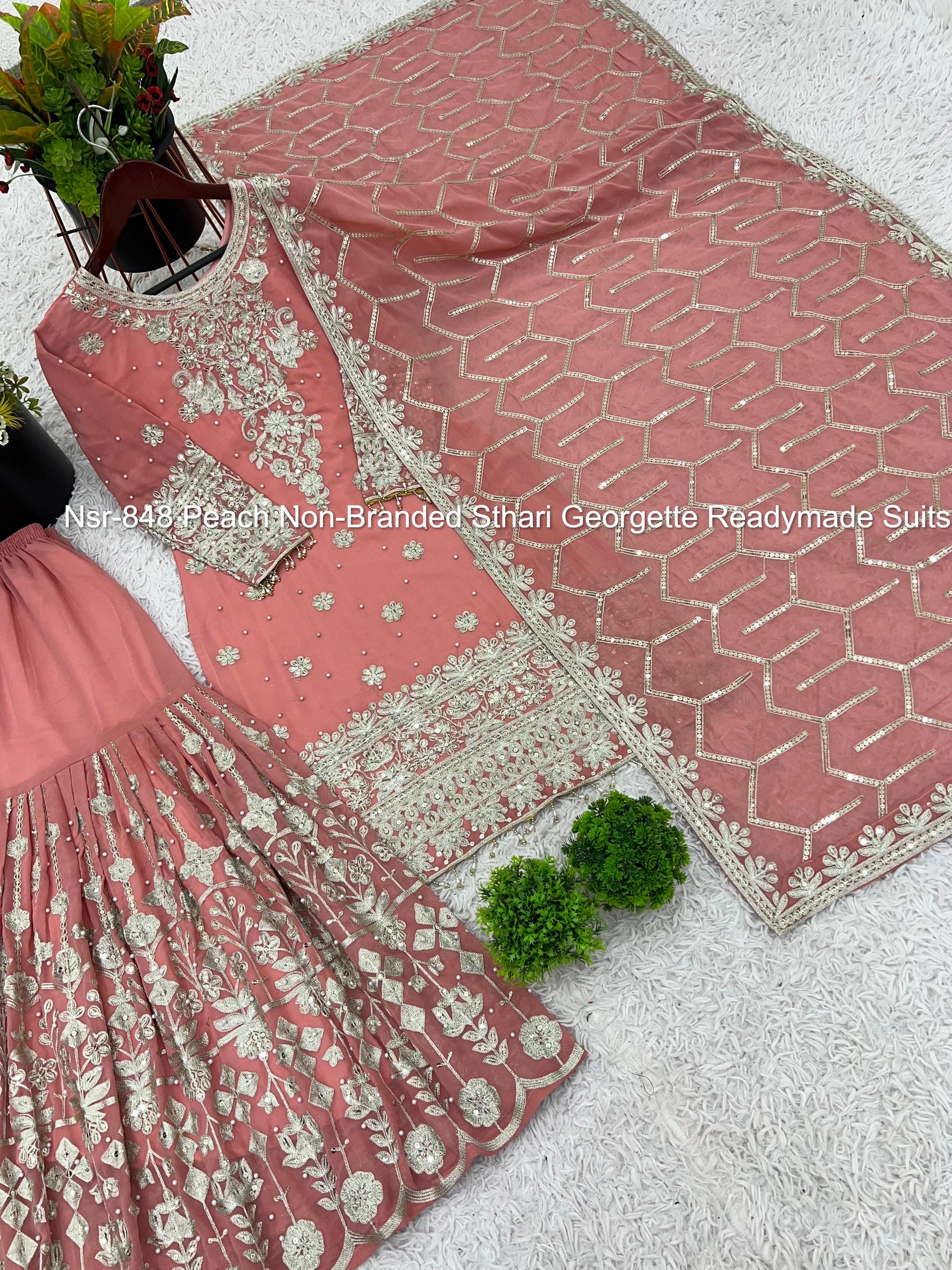 Nsr-848 Peach Non-Branded Sthari Georgette Readymade Suits