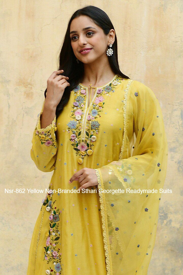 Nsr-862 Yellow Non-Branded Sthari Georgette Readymade Suits