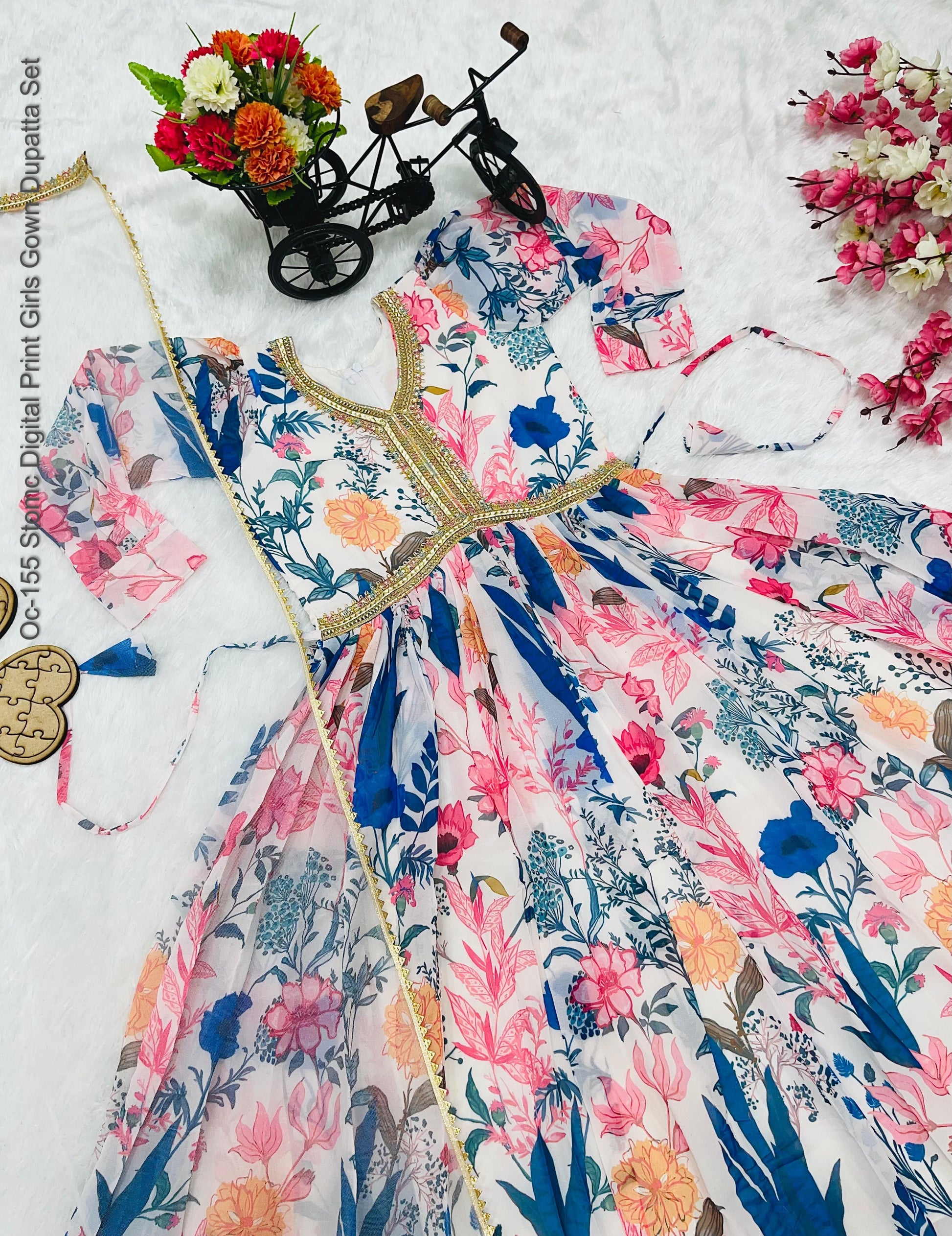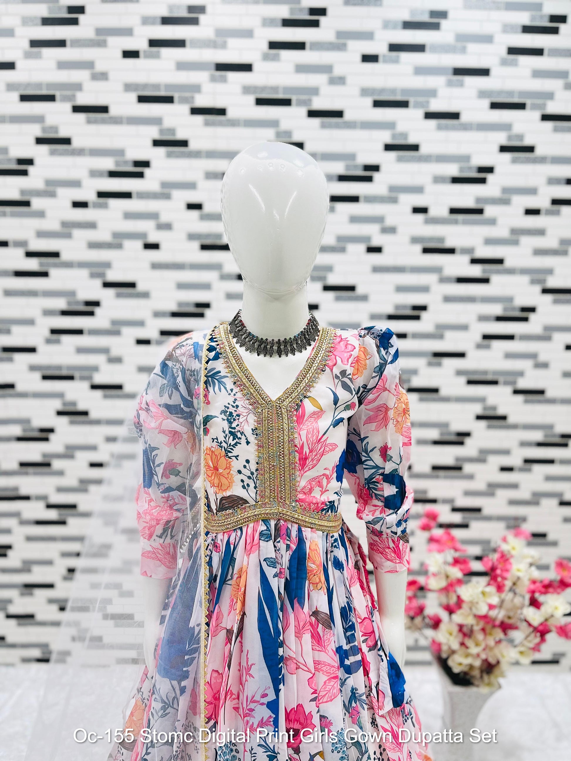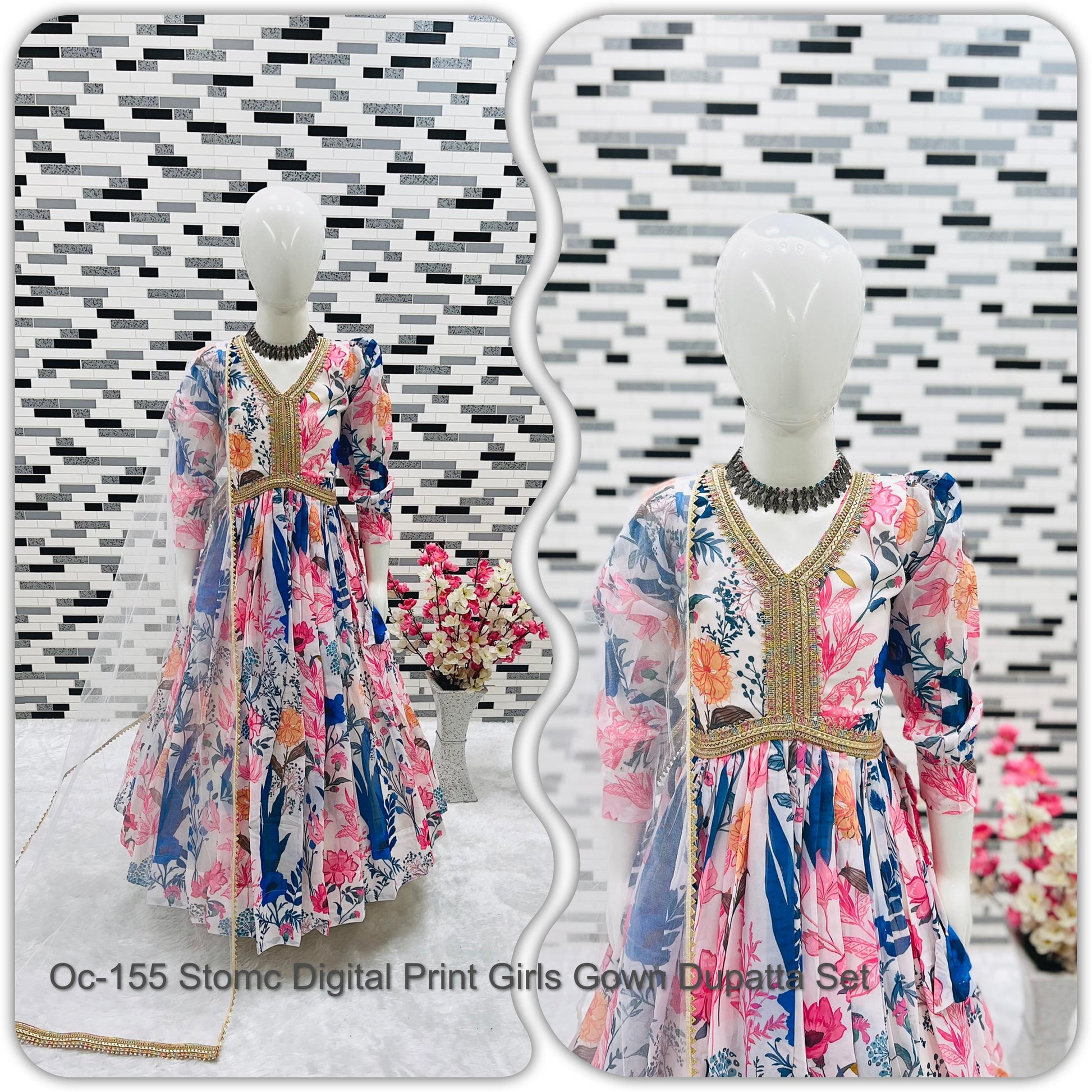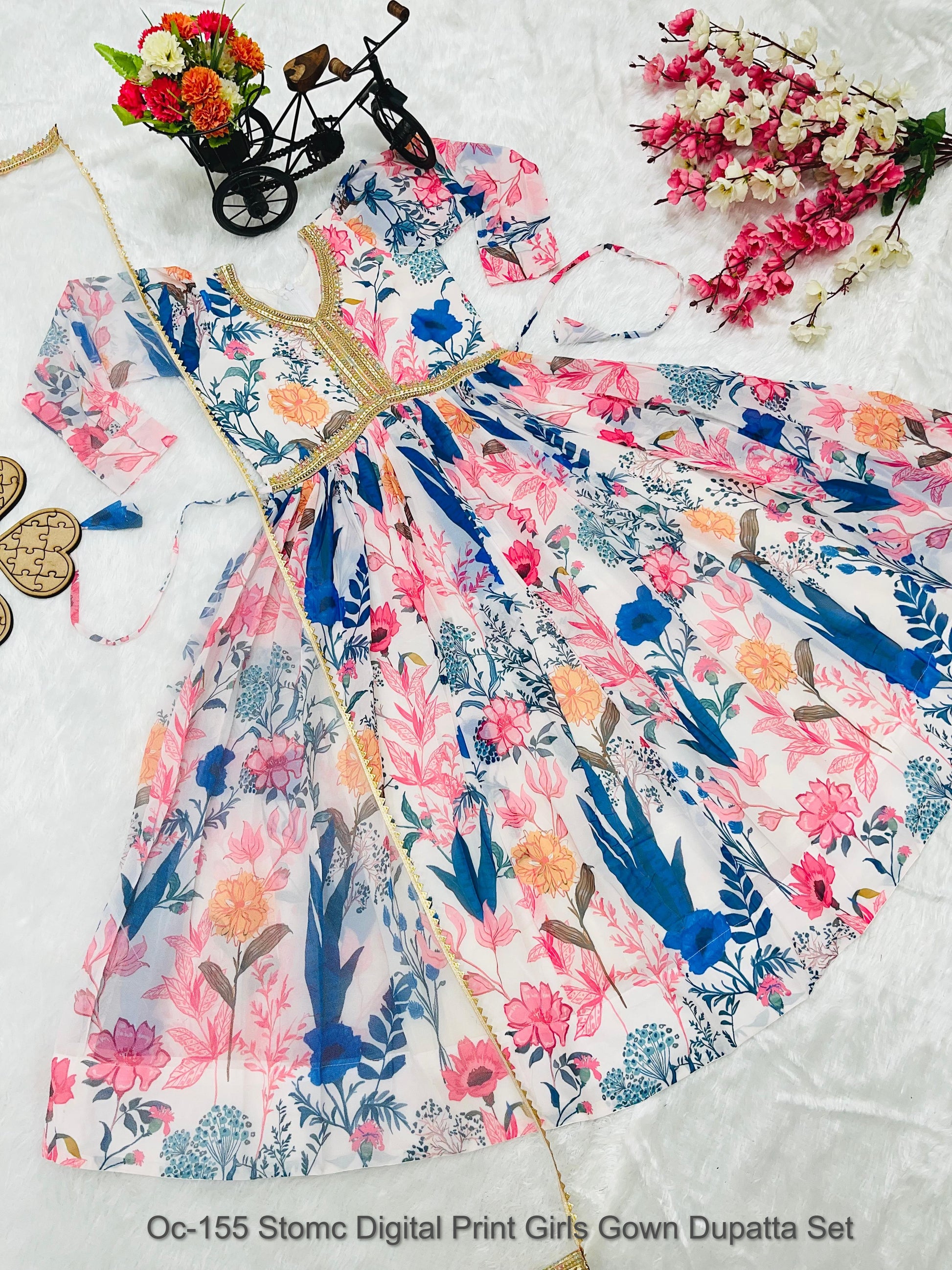 Oc-155 Stomc Digital Print Girls Gown Dupatta Set