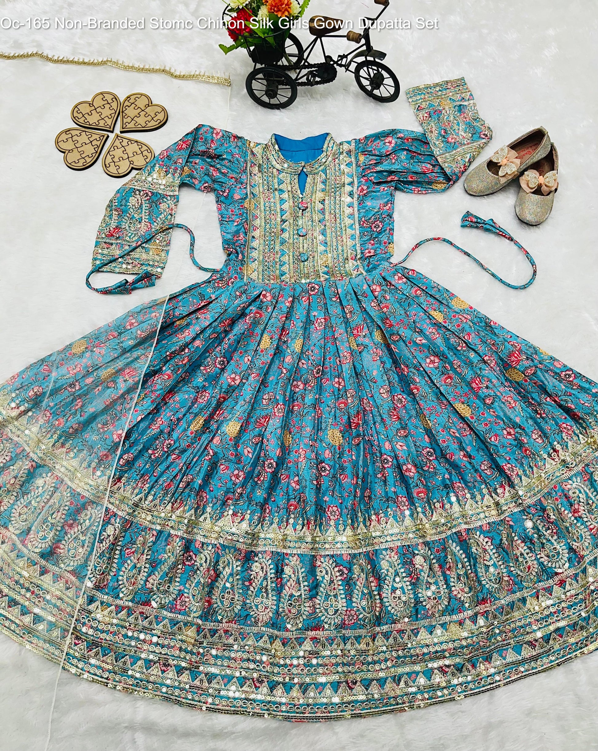 - Oc-165 Non-Branded Stomc Chinon Silk Girls Gown Dupatta Set Dealer Ahmedabad Surat Wholesale Gujarat India Lowest Price Best Quality Buy Purchase Shipping Kurta Salwaar Kameez Also free Cash on delivery