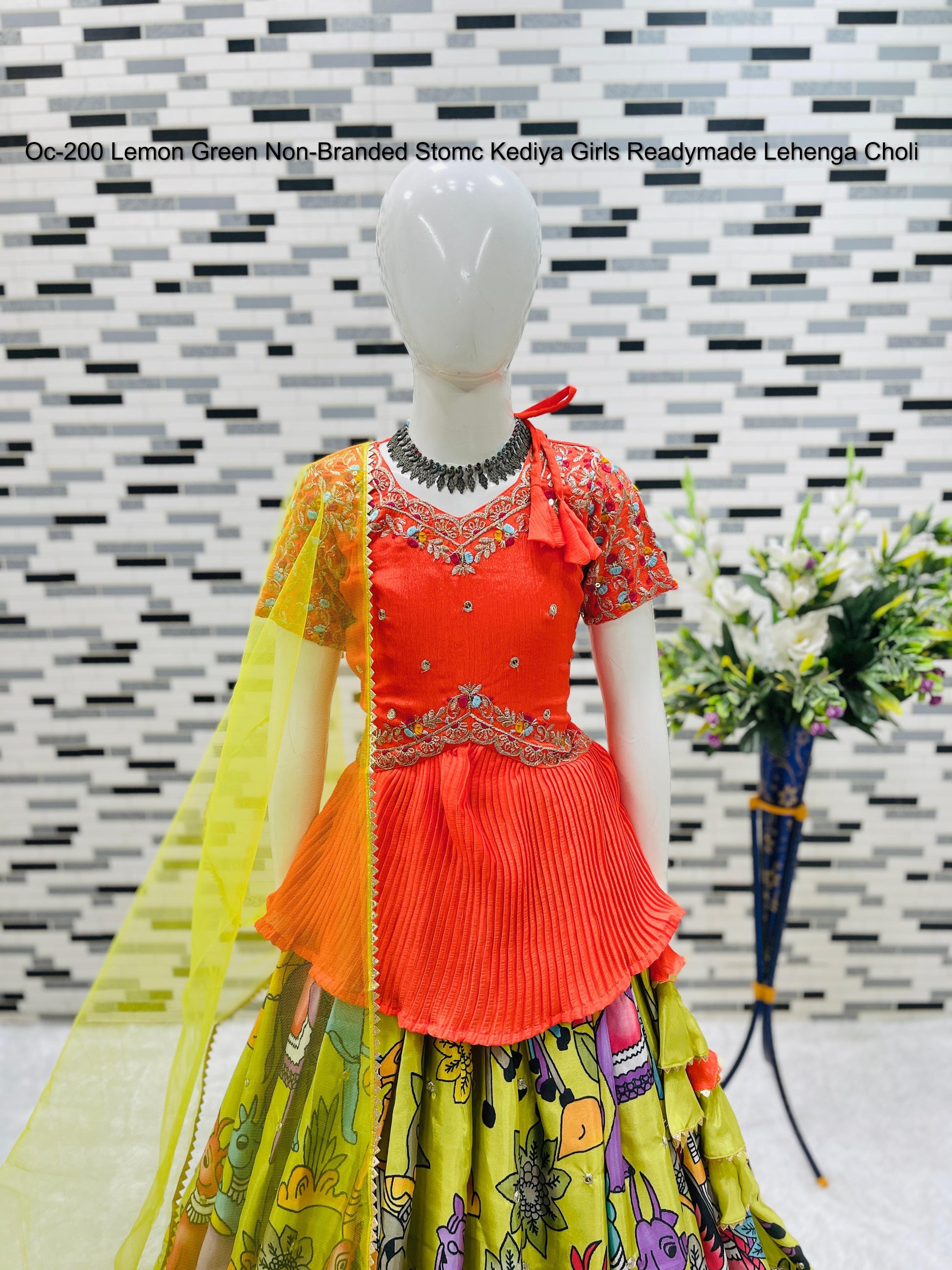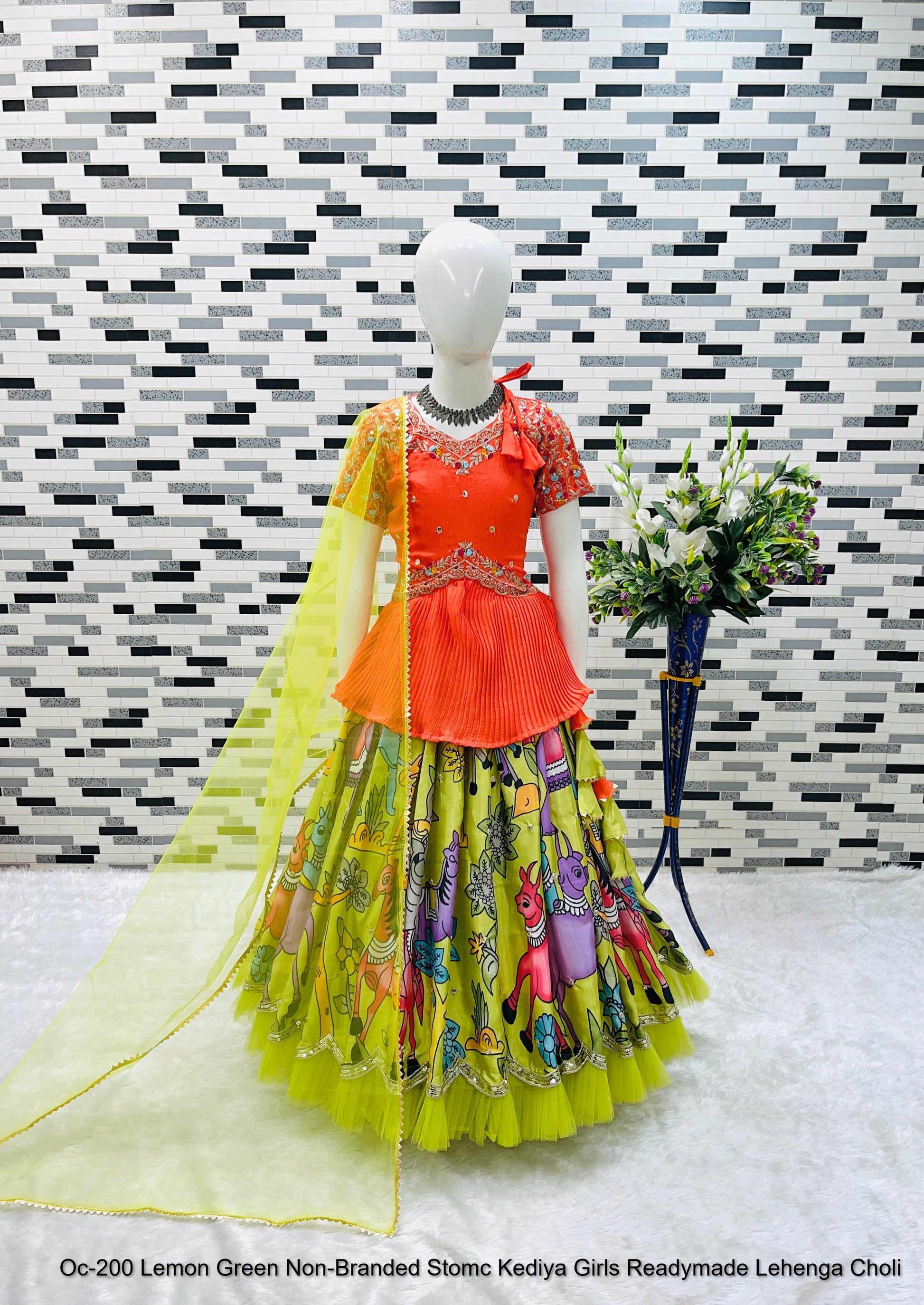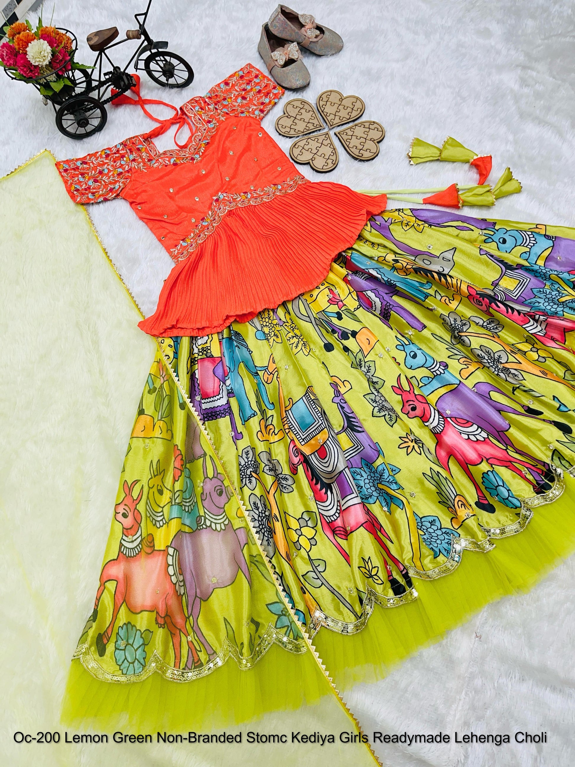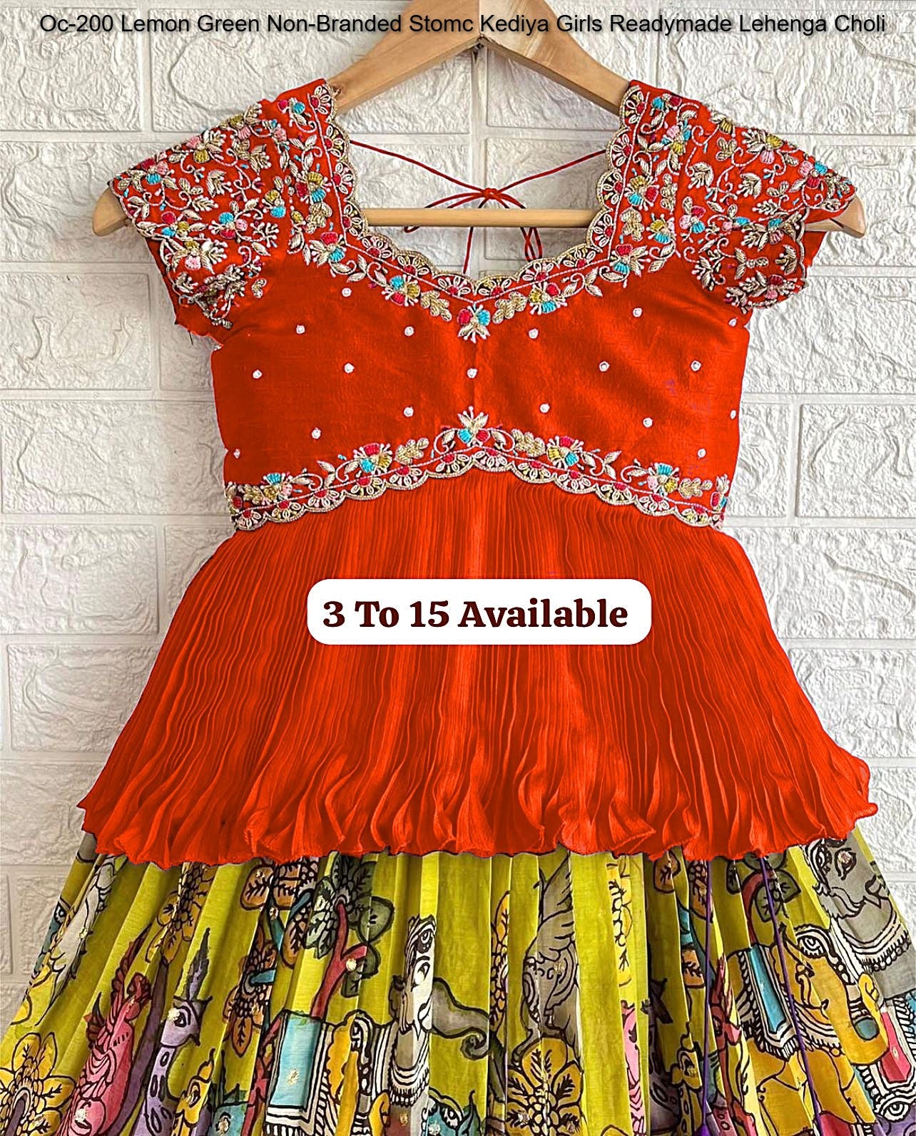 - Oc-200 Lemon Green Non-Branded Stomc Kediya Girls Readymade Lehenga Choli Dealer Ahmedabad Surat Wholesale Gujarat India Lowest Price Best Quality Buy Purchase Shipping Kurta Salwaar Kameez Also free Cash on delivery