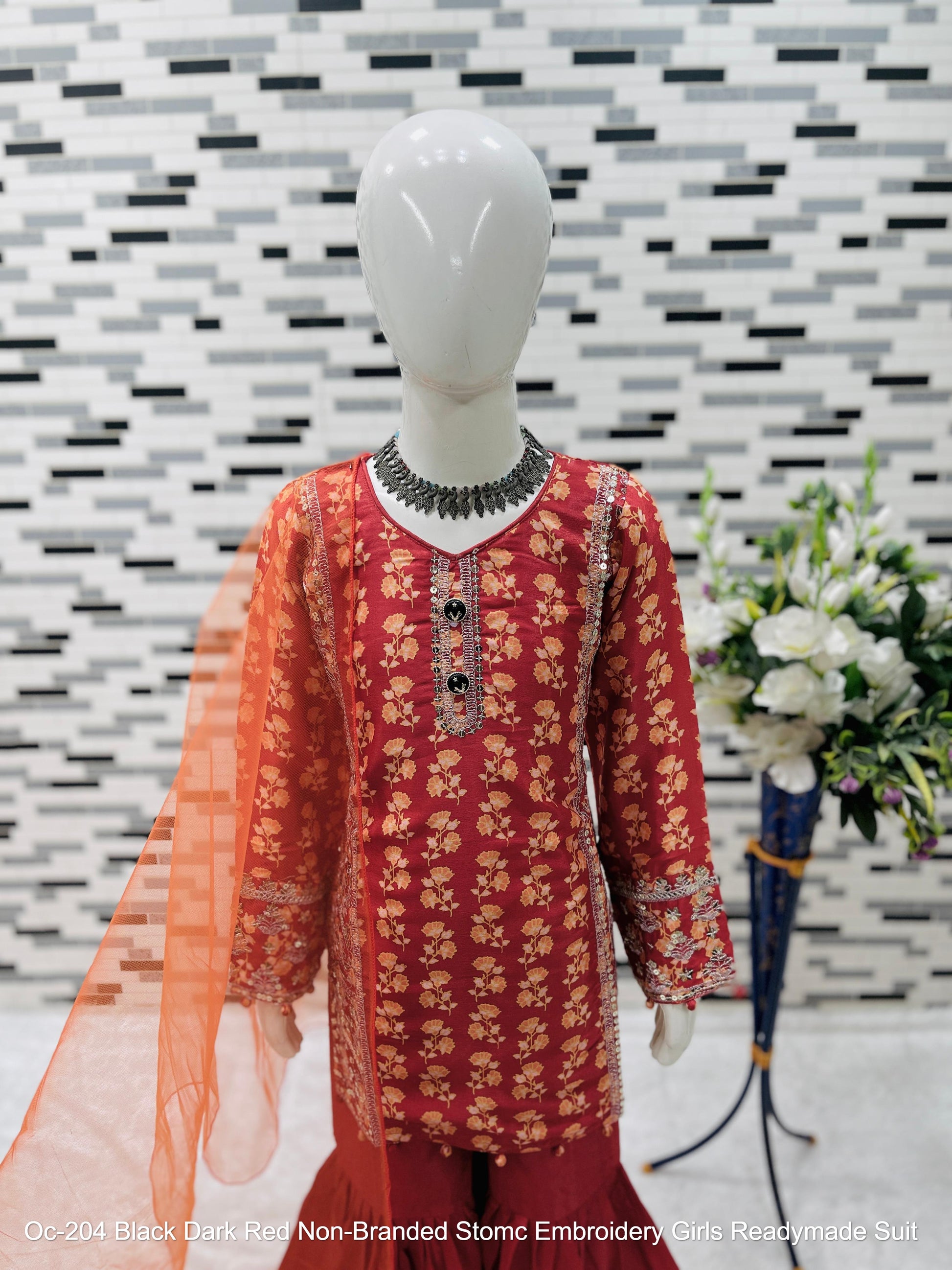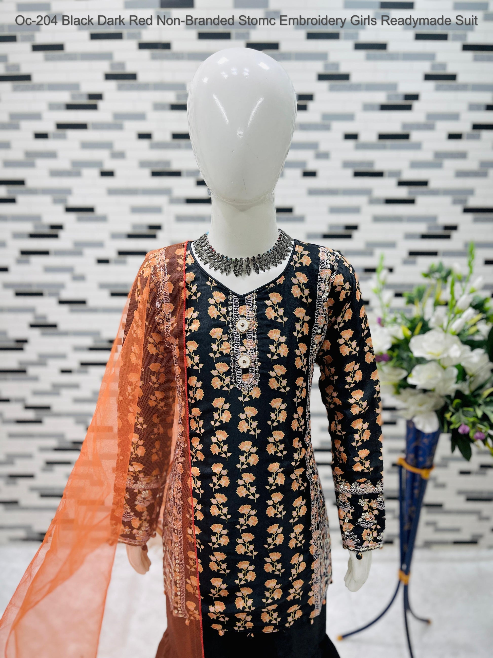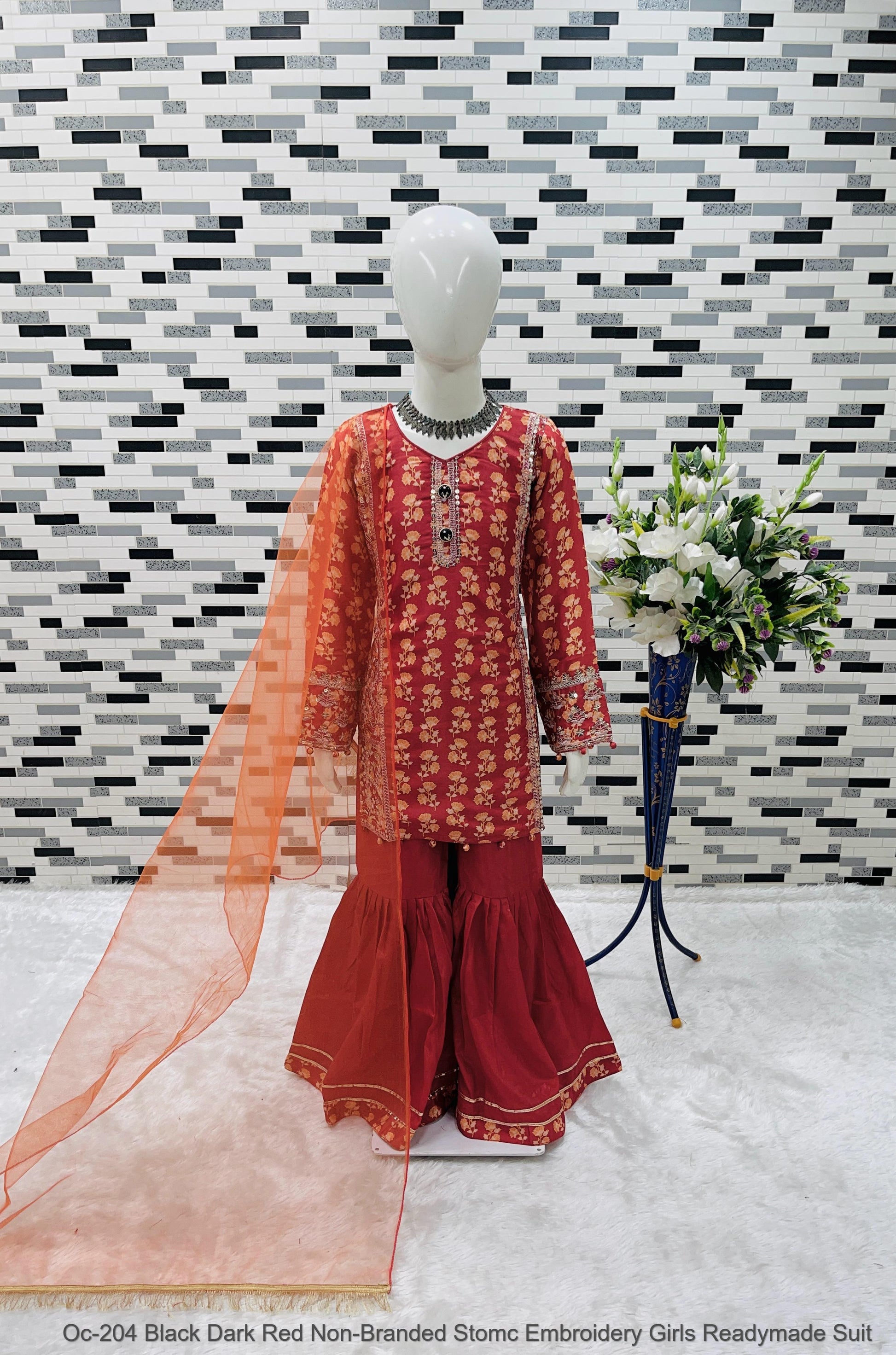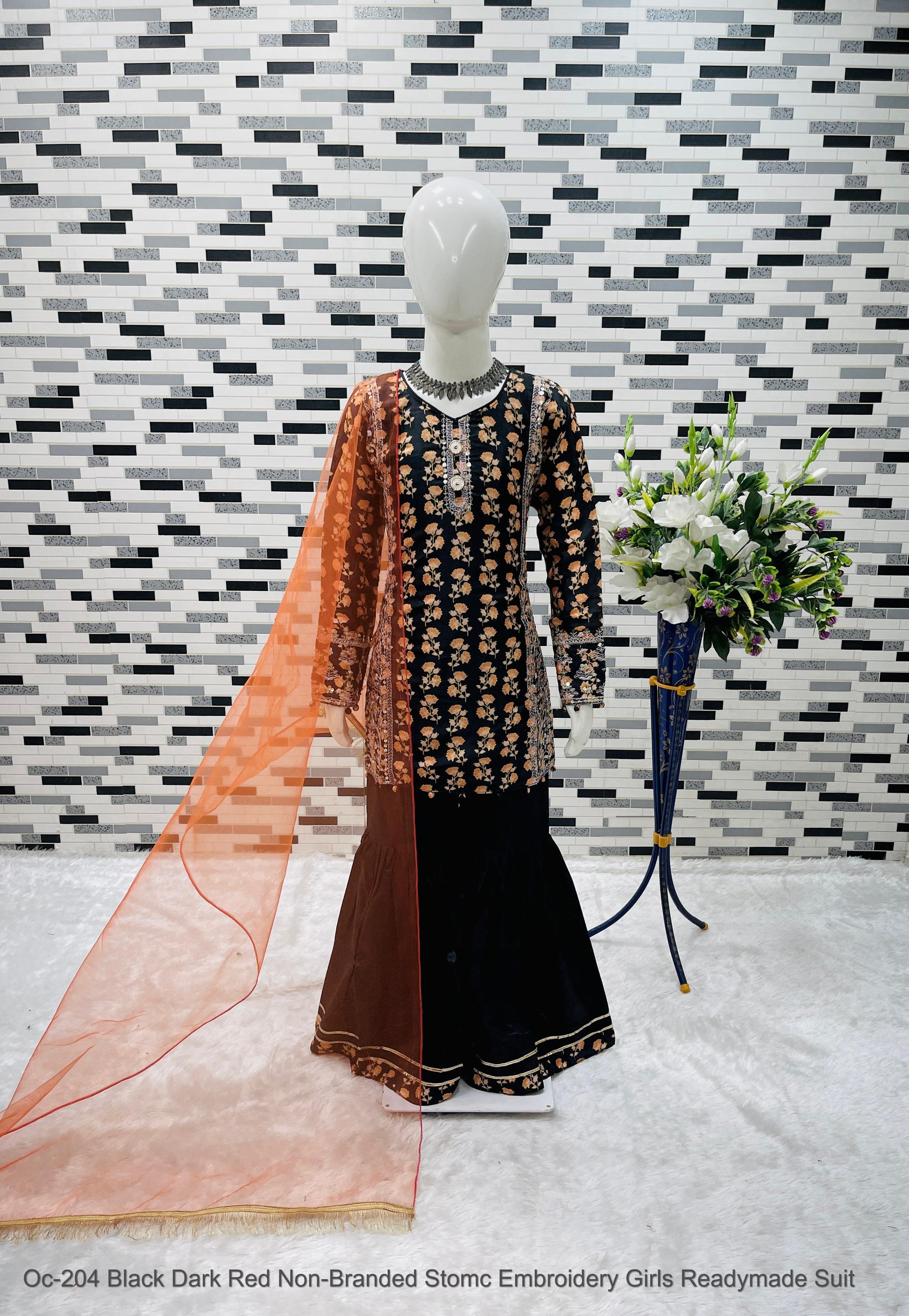 Oc- 204 Black Dark, Red Non-Branded Stomc Embroidery Girls Readymade Suit