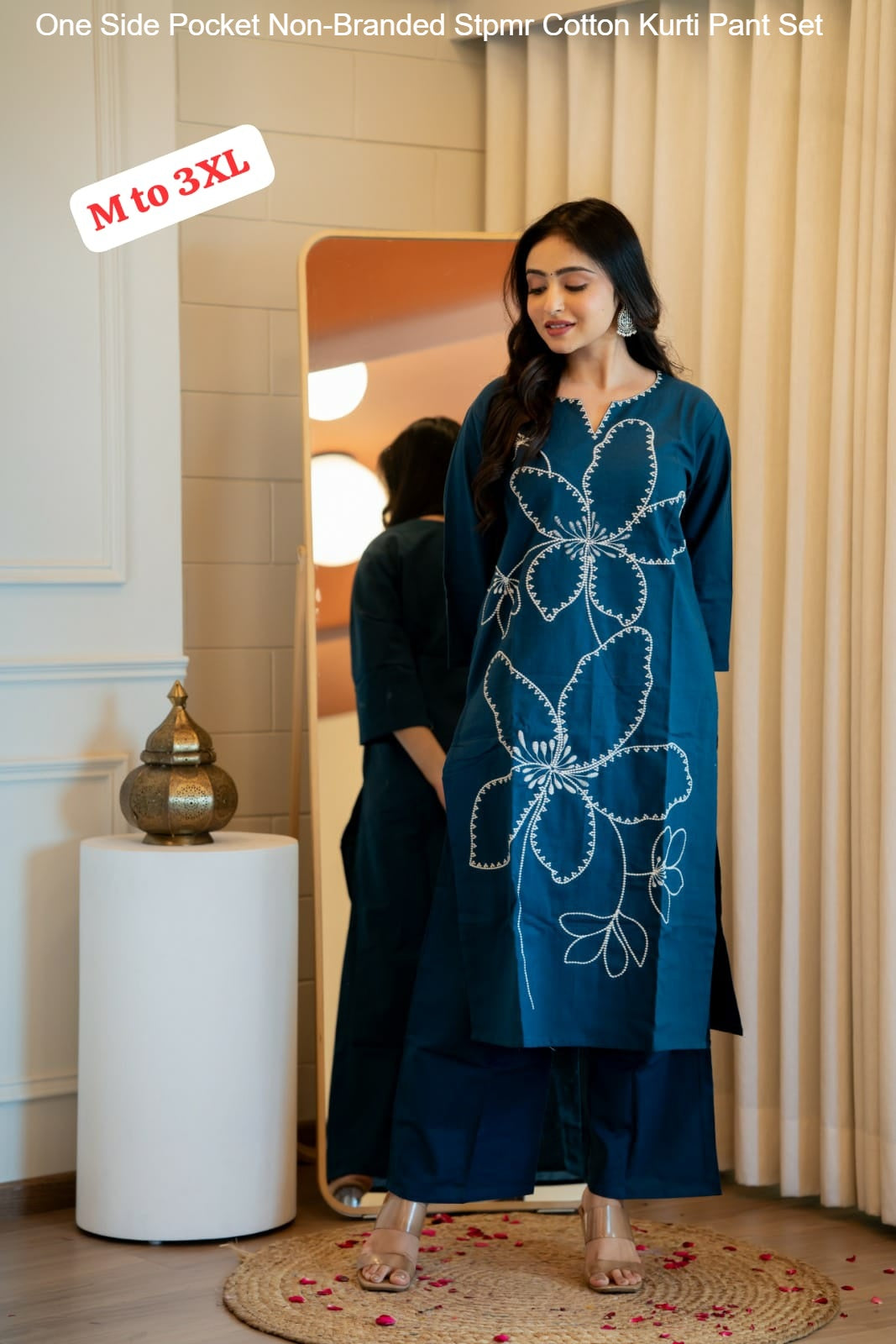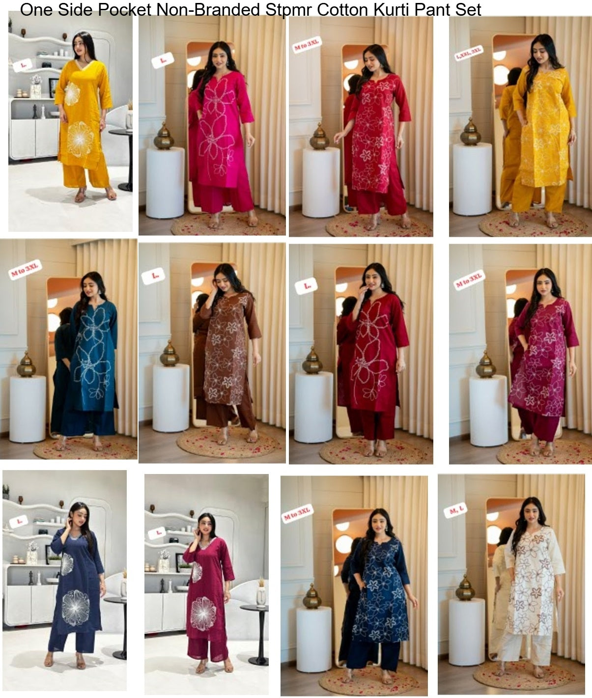- One Side Pocket Non-Branded Stpmr Cotton Kurti Pant Set Dealer Ahmedabad Surat Wholesale Gujarat India Lowest Price Best Quality Buy Purchase Shipping Kurta Salwaar Kameez Also free Cash on delivery