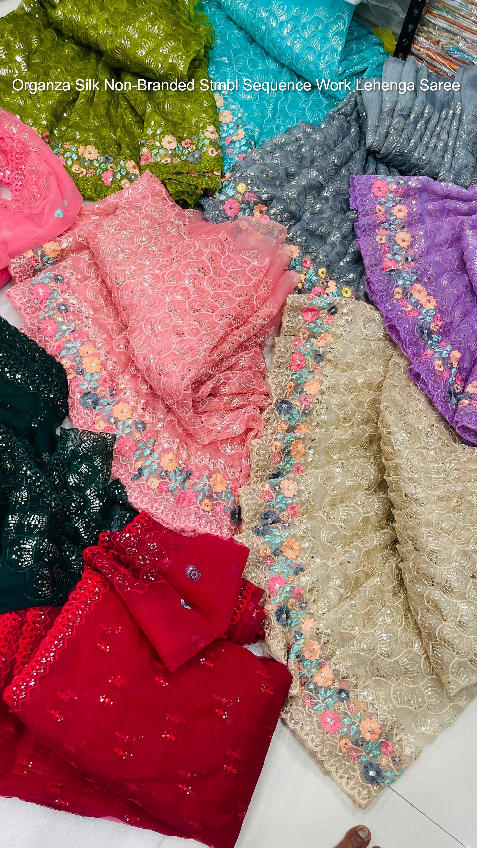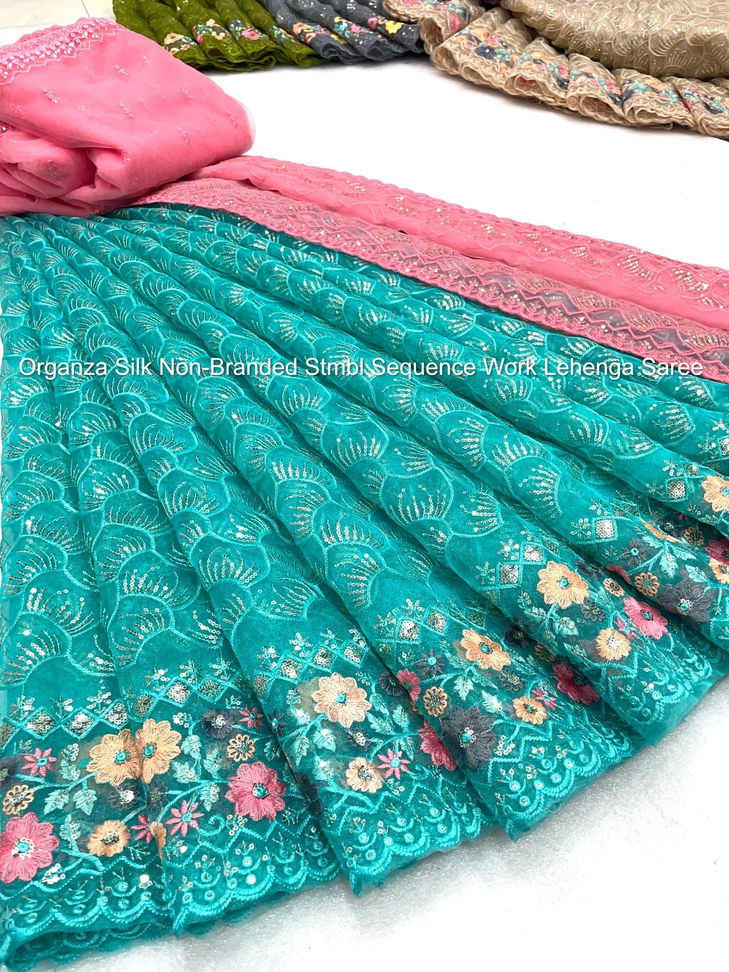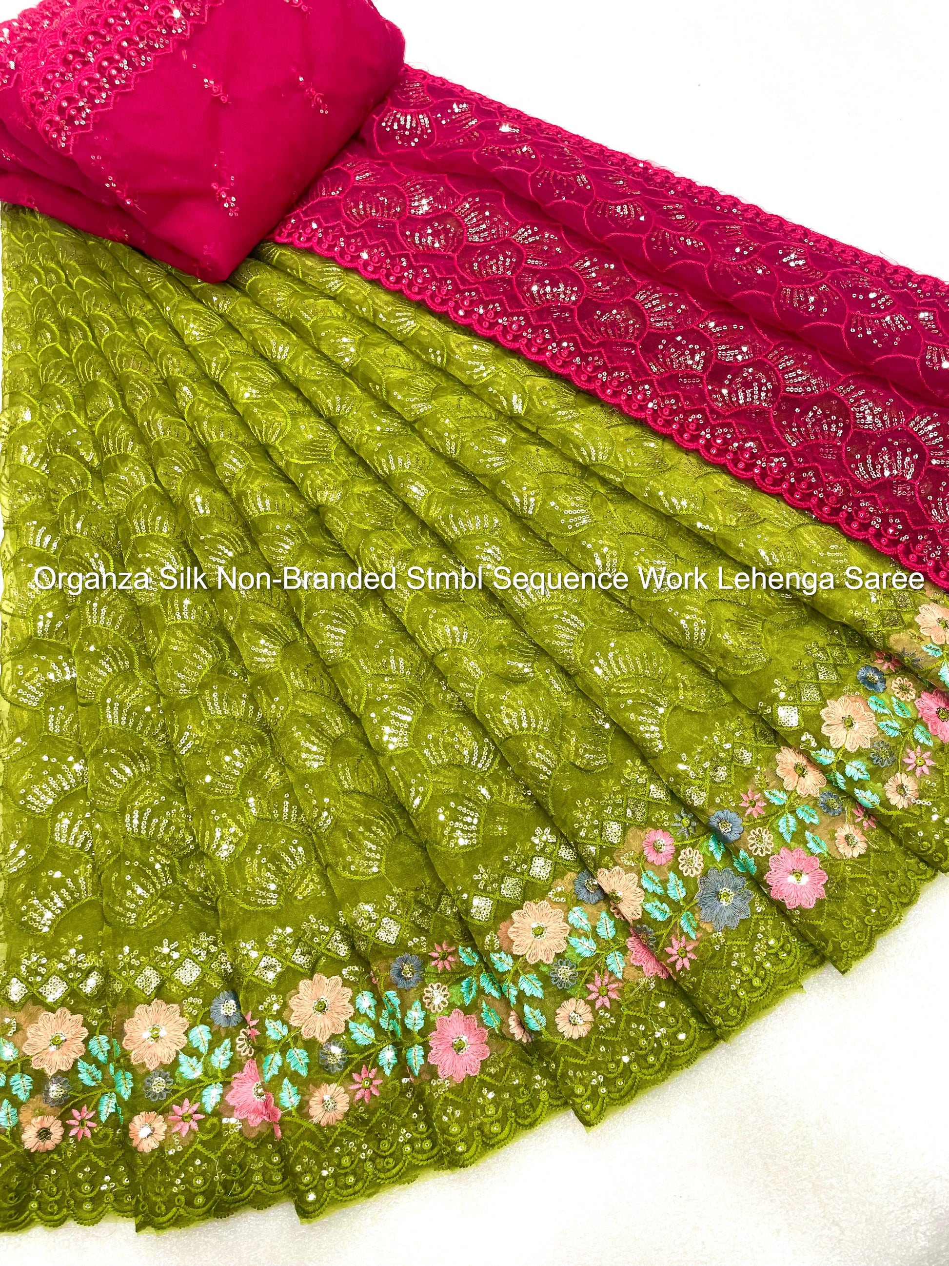 Organza Silk Non-Branded Stmbl Sequence Work Lehenga Saree