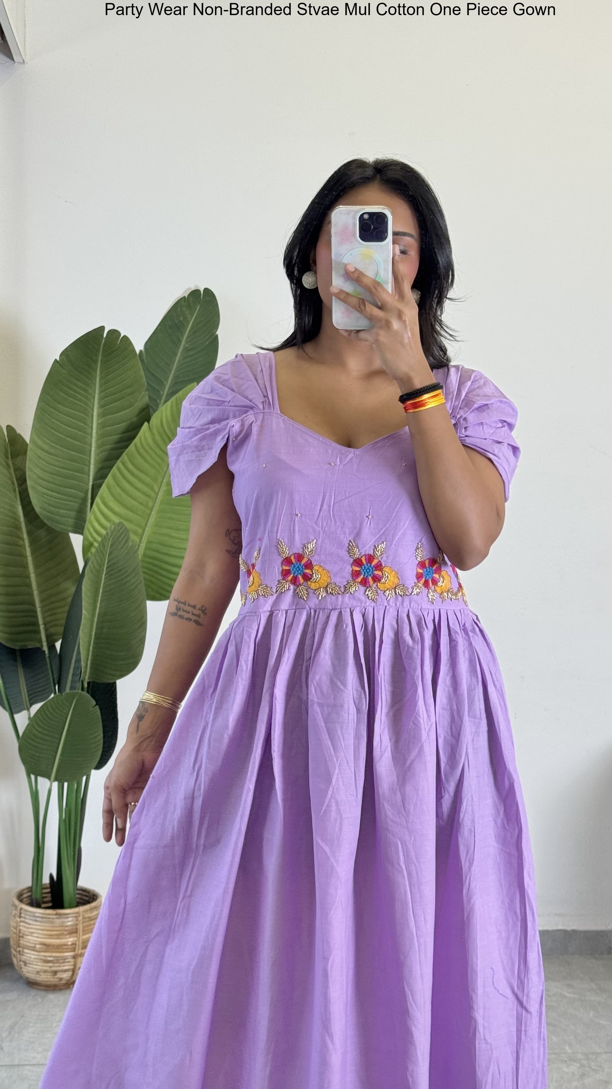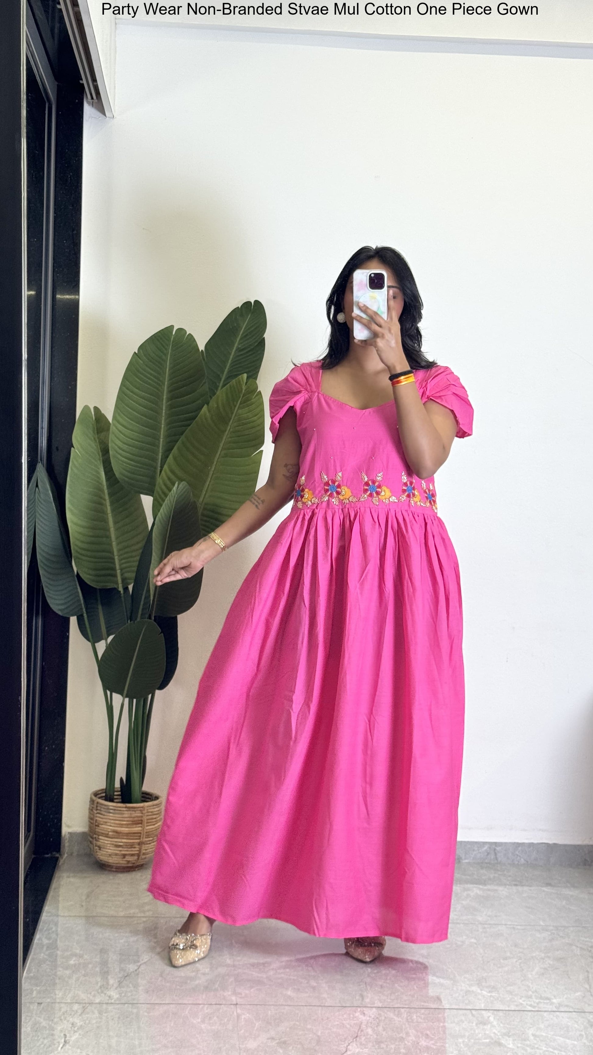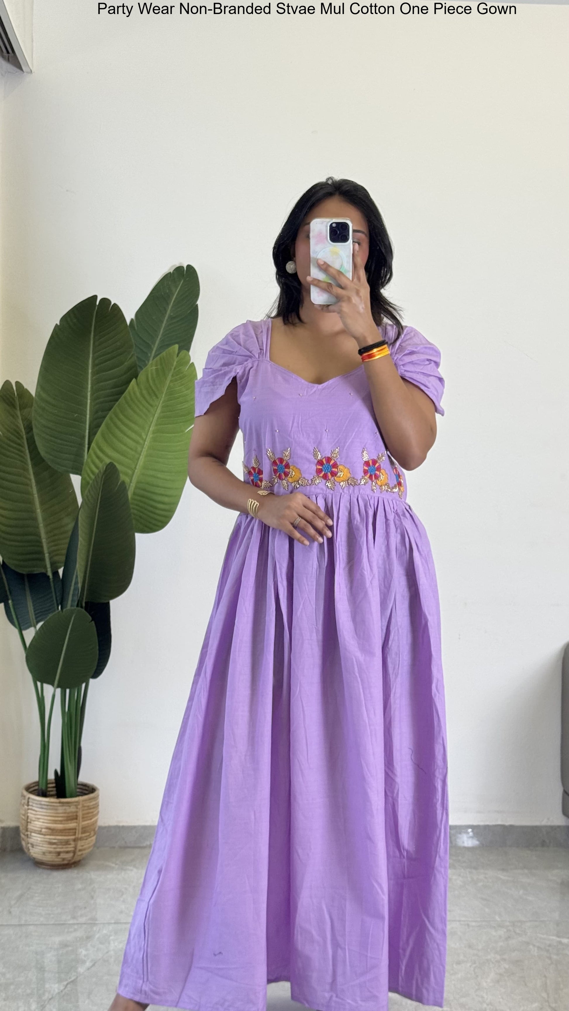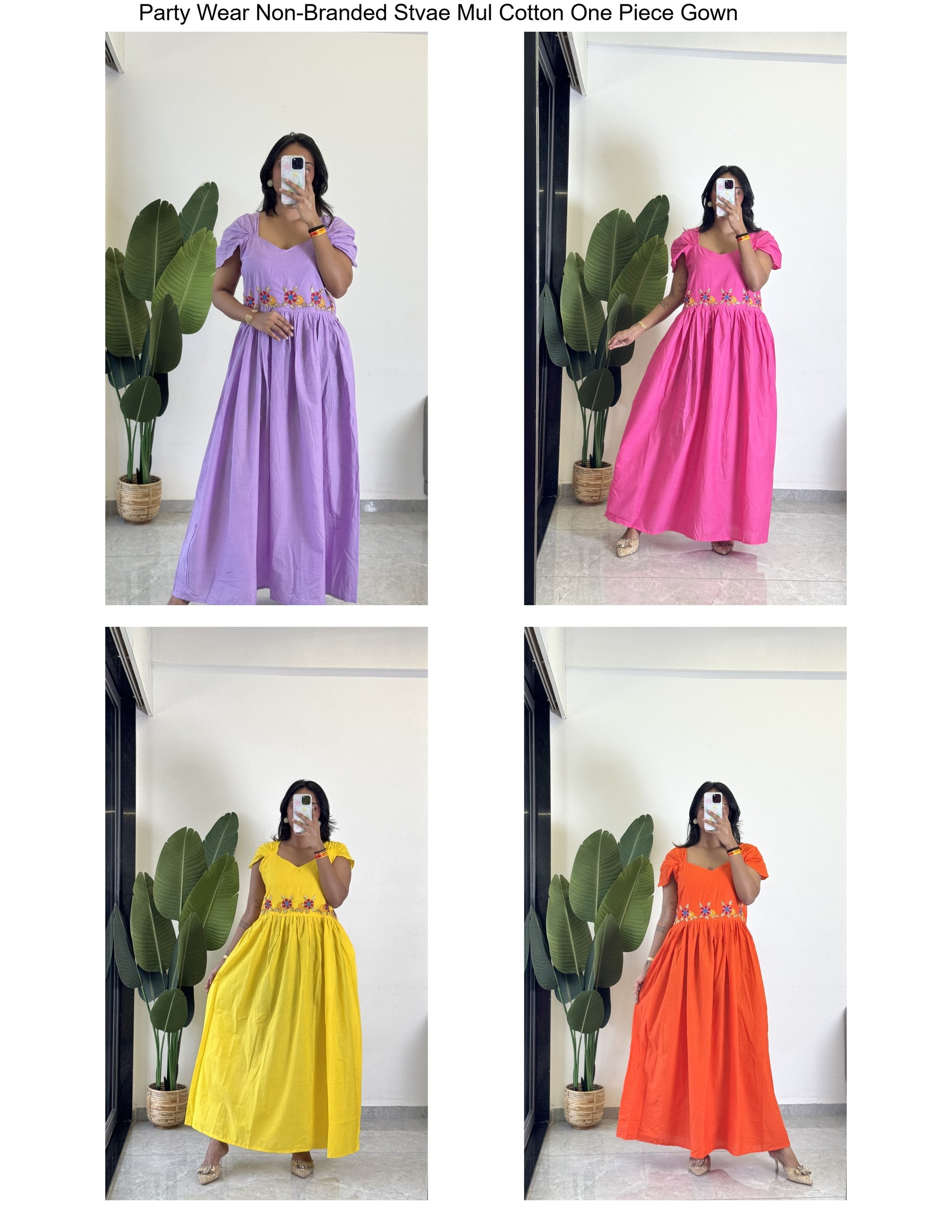 Party Wear Non-Branded Stvae Mul Cotton One Piece Gown