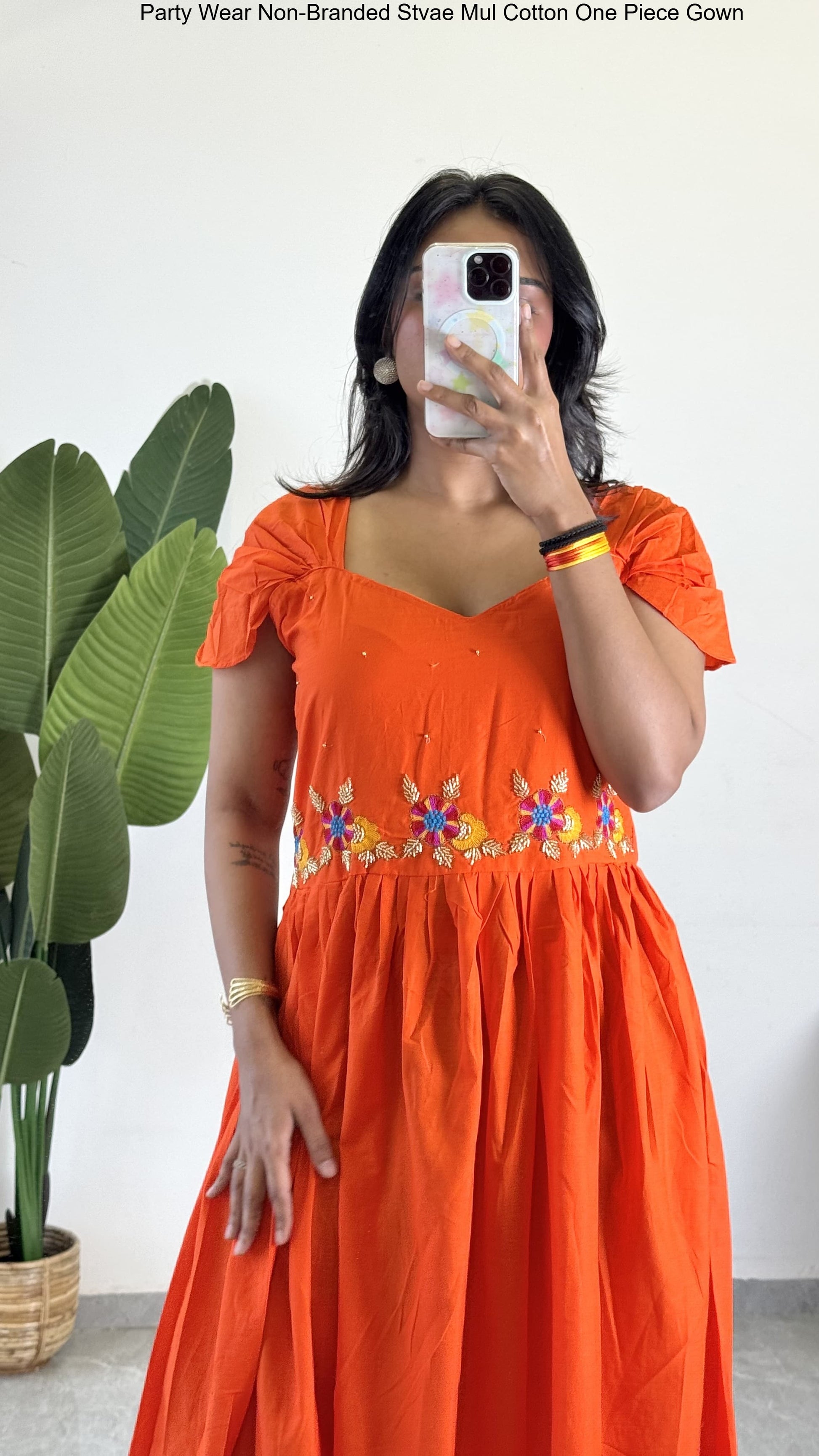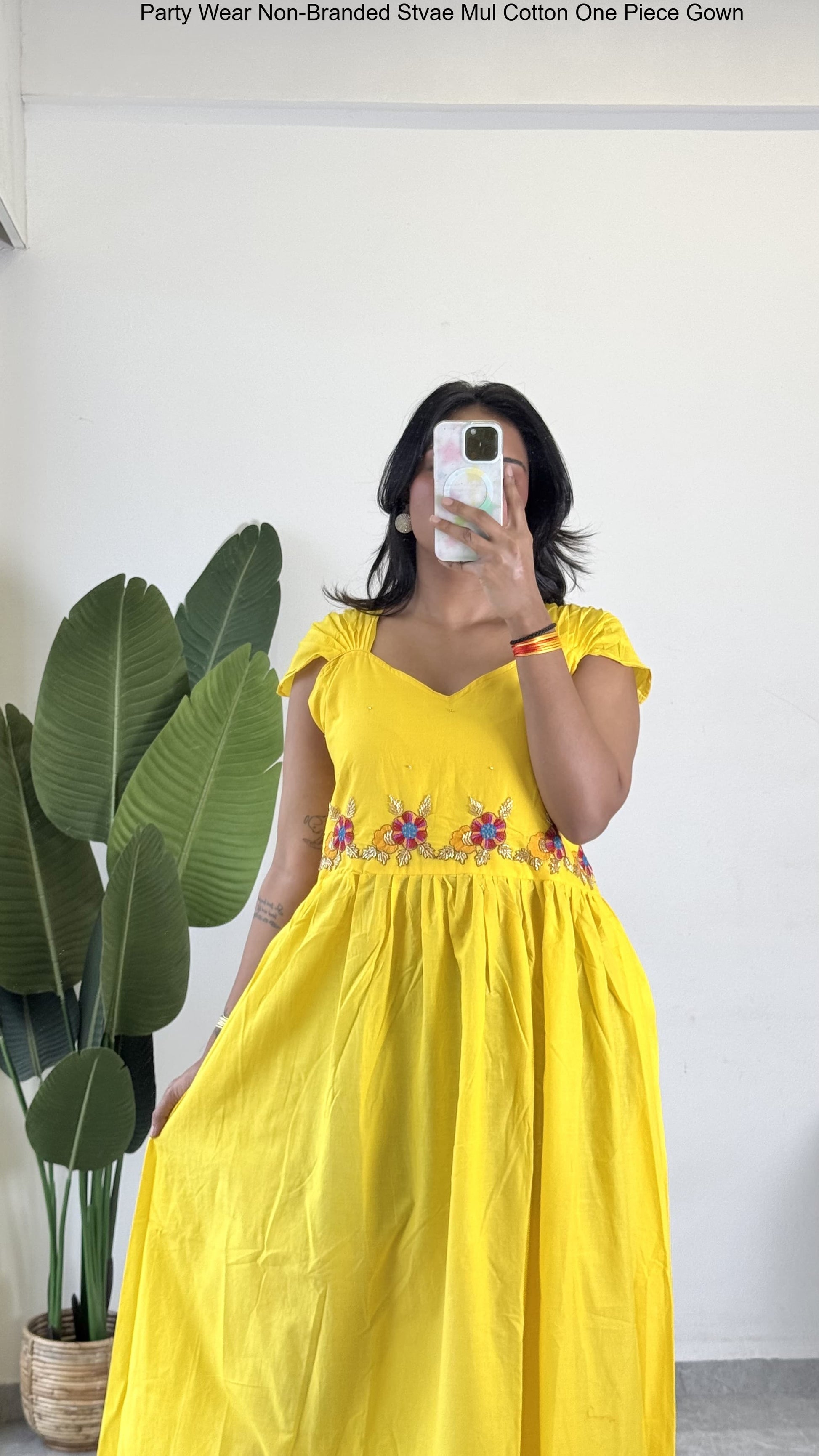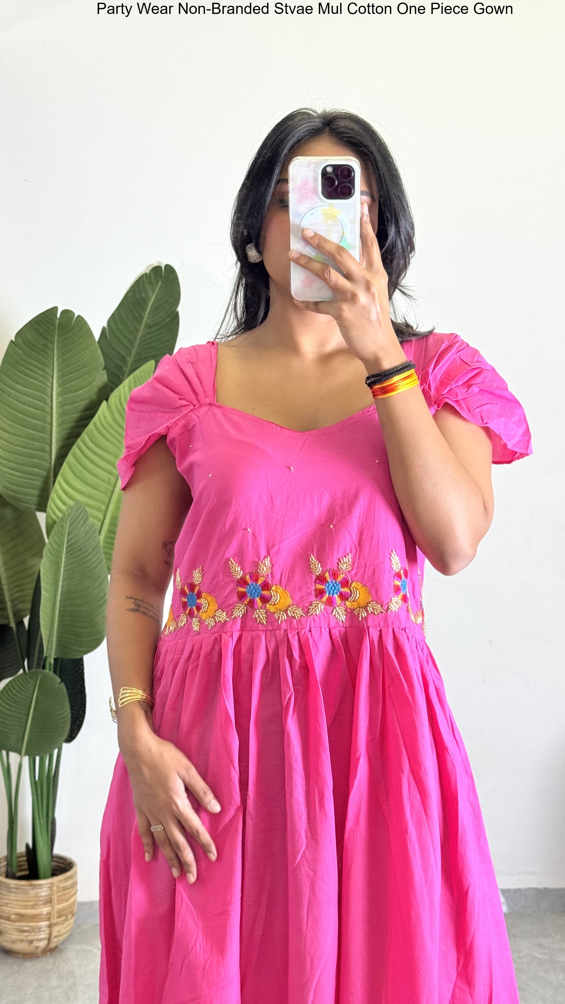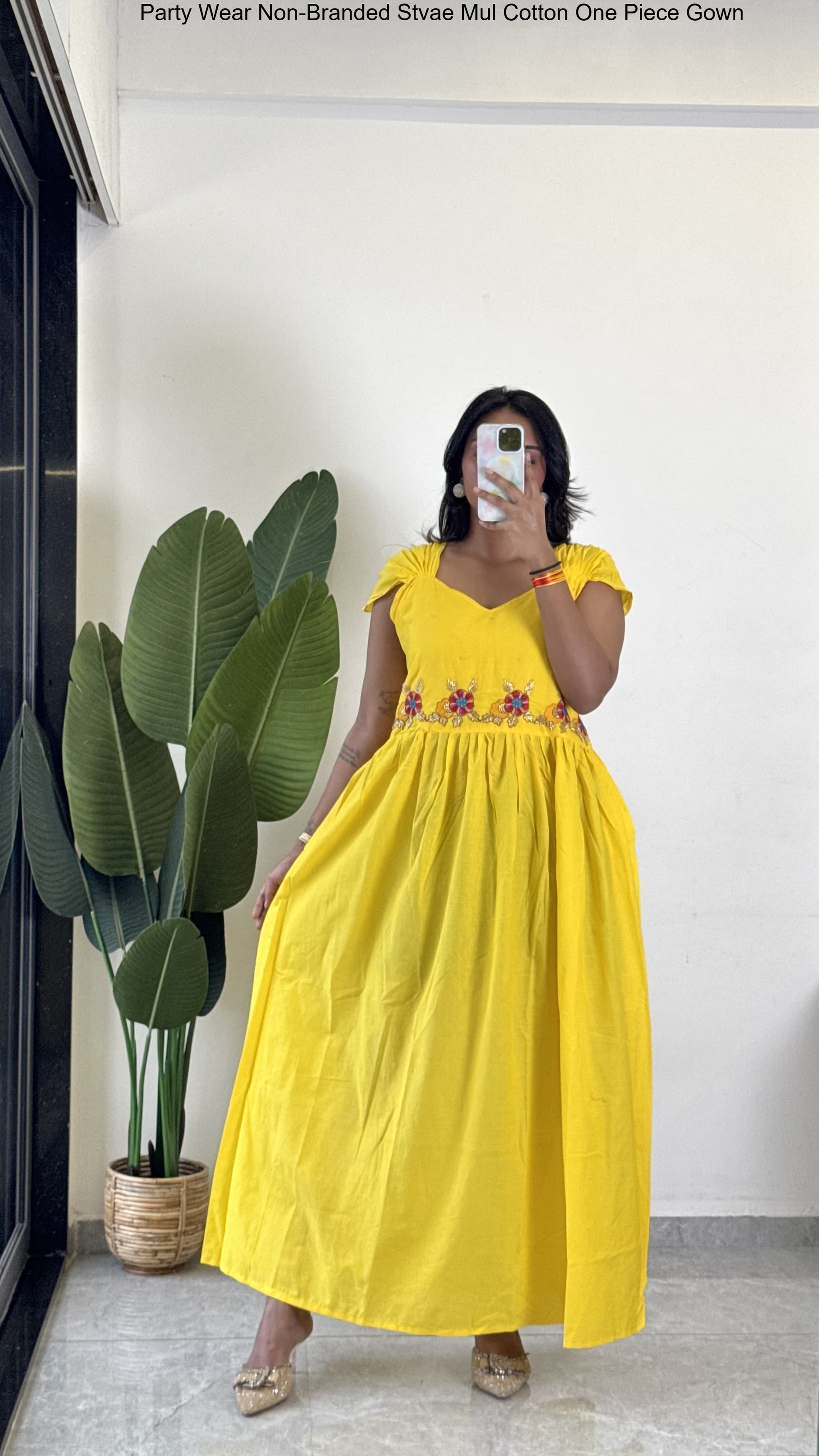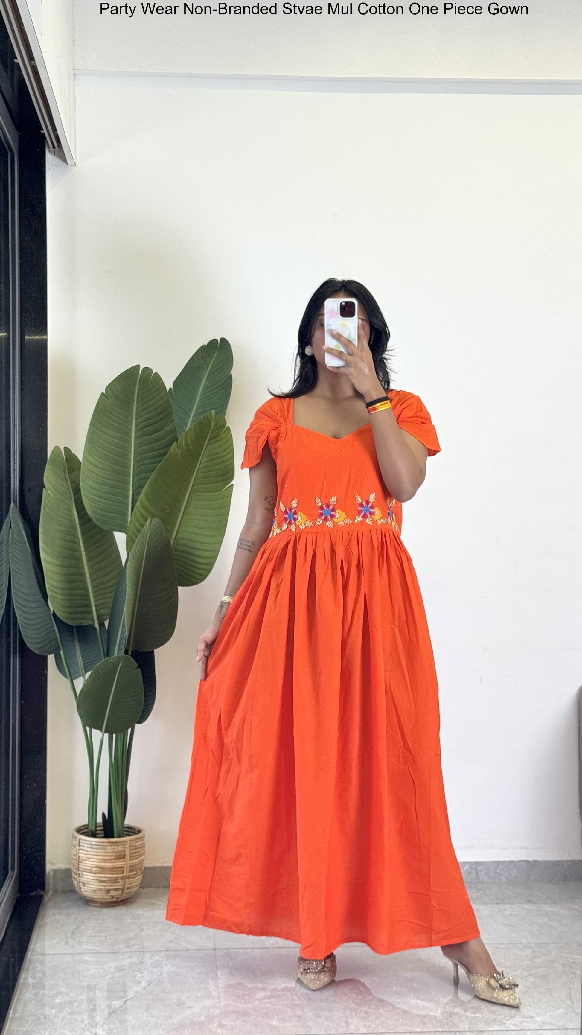 Party Wear Non-Branded Stvae Mul Cotton One Piece Gown