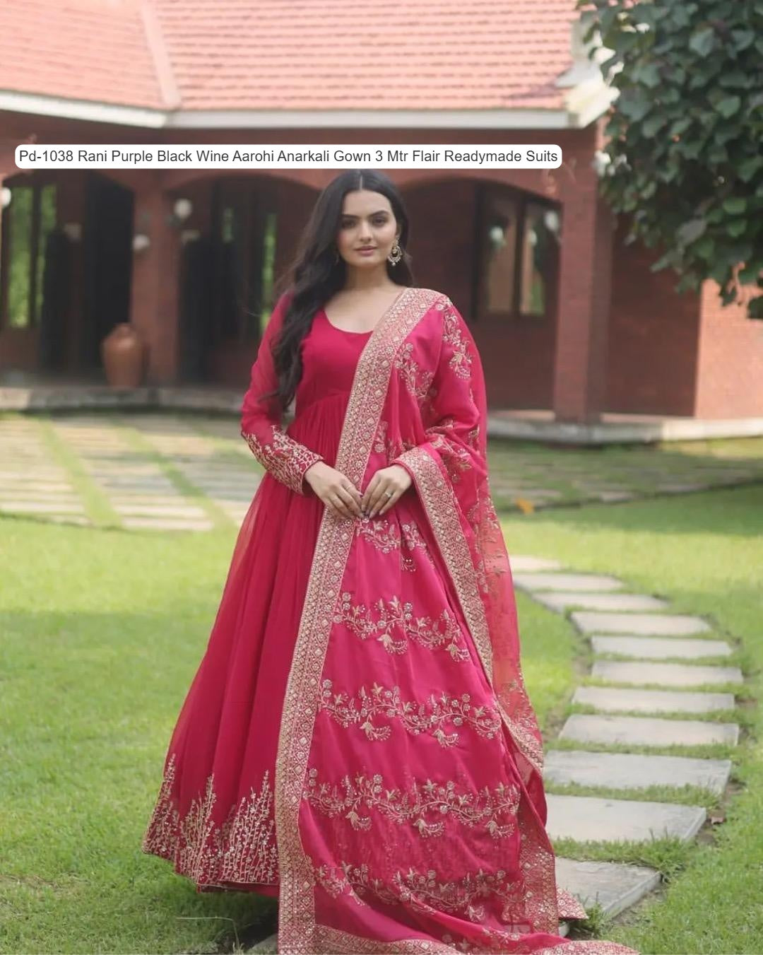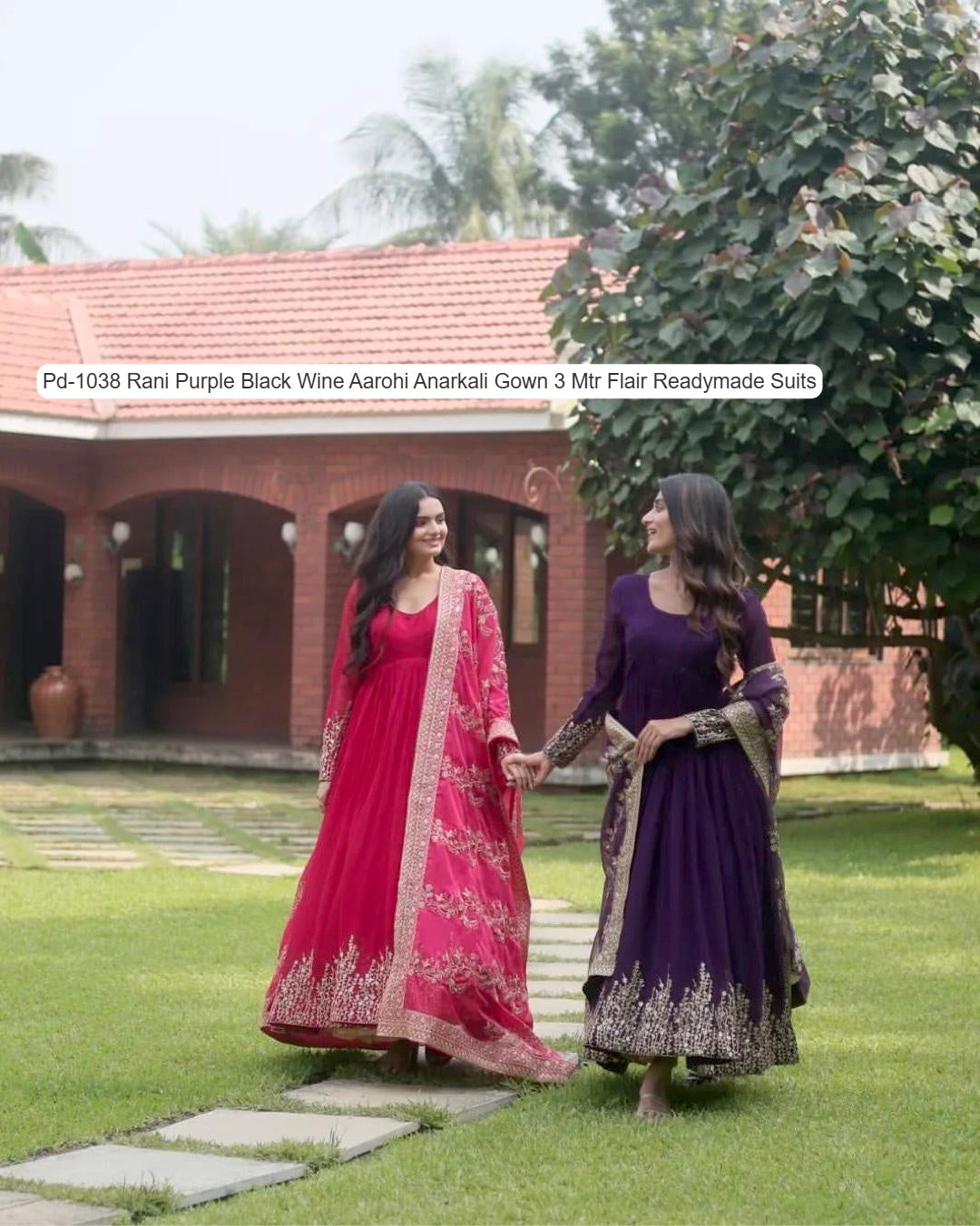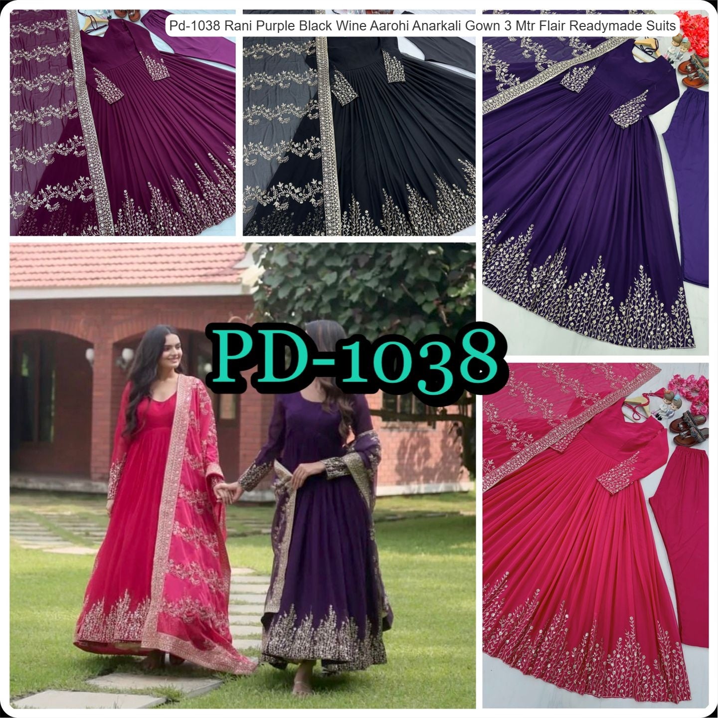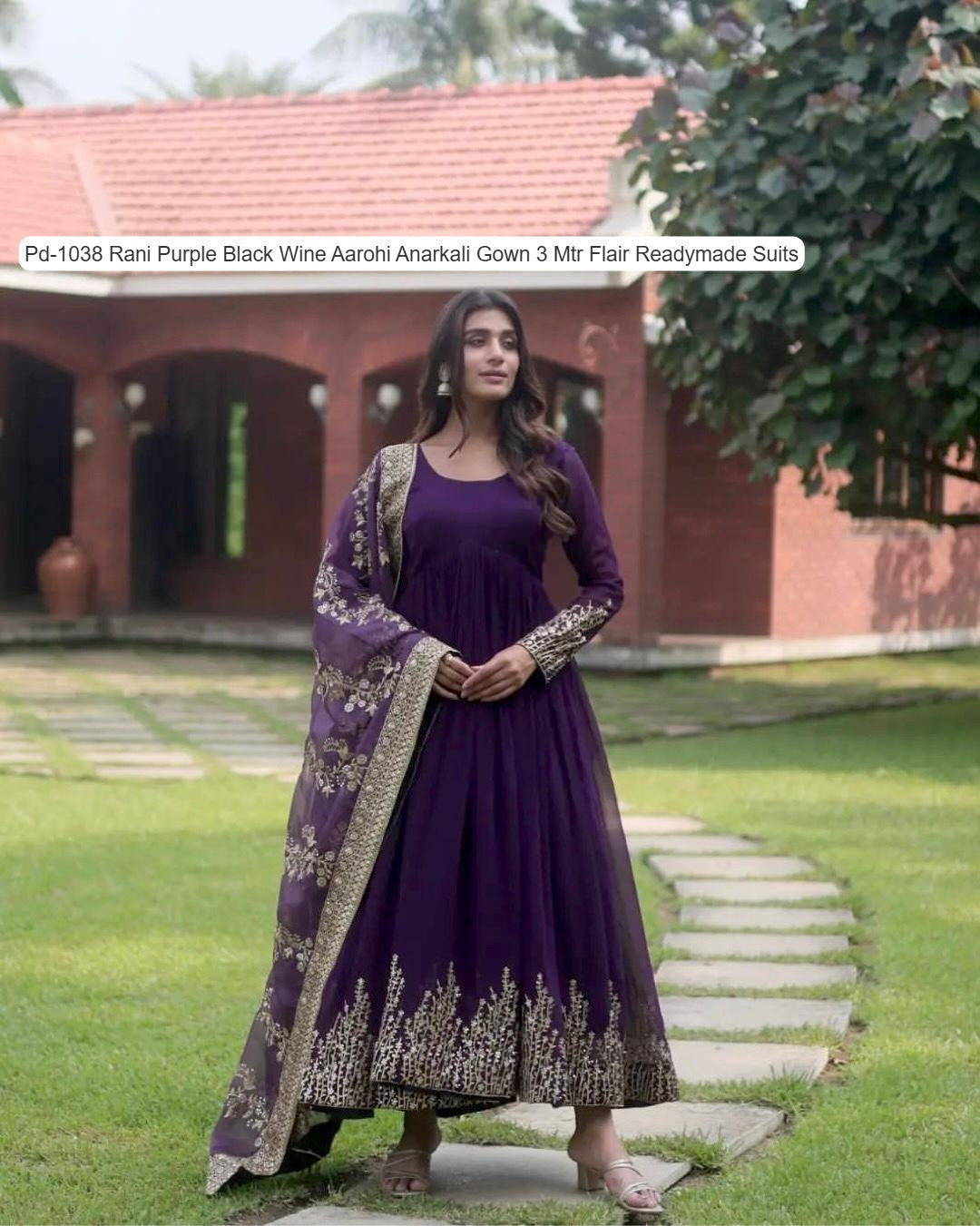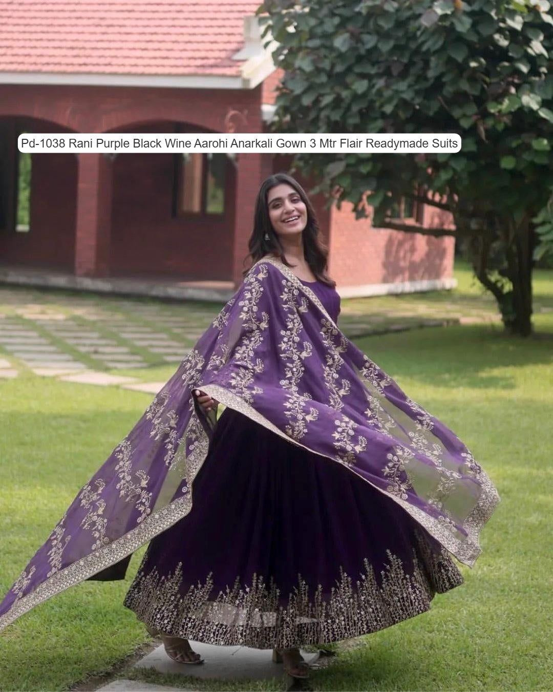 - Pd-1038 Rani Purple Black Wine Aarohi Anarkali Gown 3 Mtr Flair Readymade Suits Dealer Ahmedabad Surat Wholesale Gujarat India Lowest Price Best Quality Buy Purchase Shipping Kurta Salwaar Kameez Also free Cash on delivery