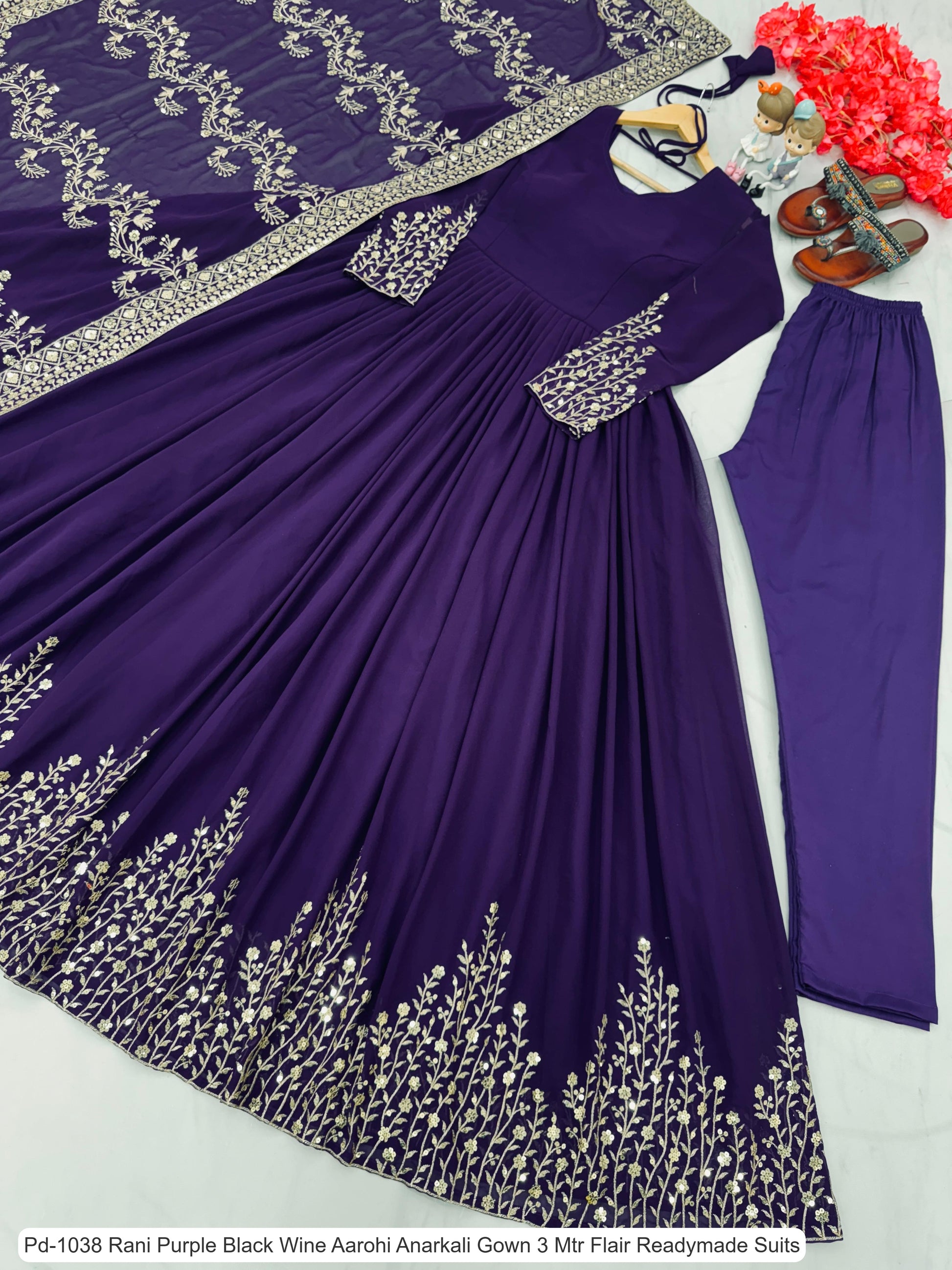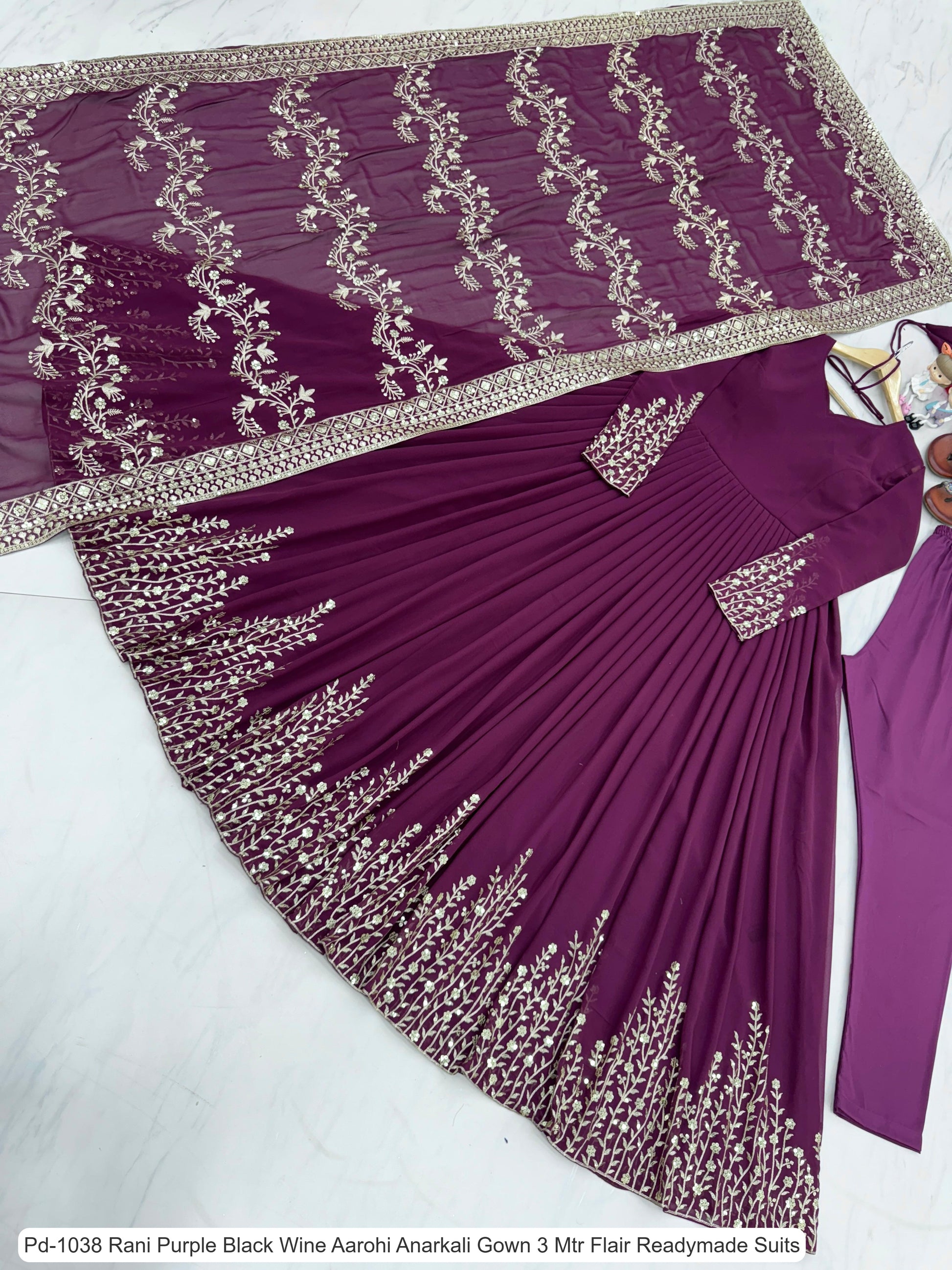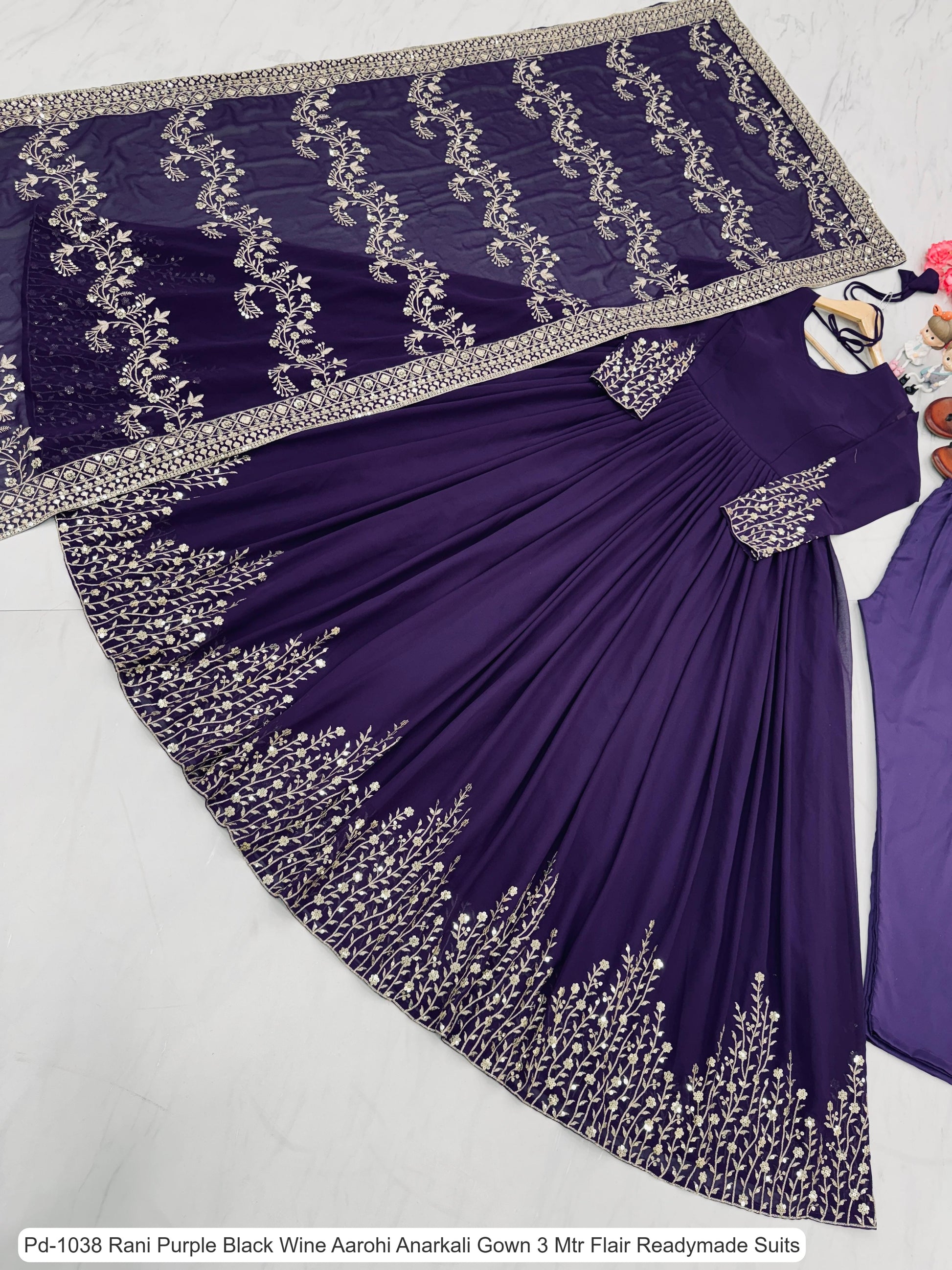 Pd-1038 Rani Purple Black Wine Aarohi Anarkali Gown 3 Mtr Flair Readymade Suits