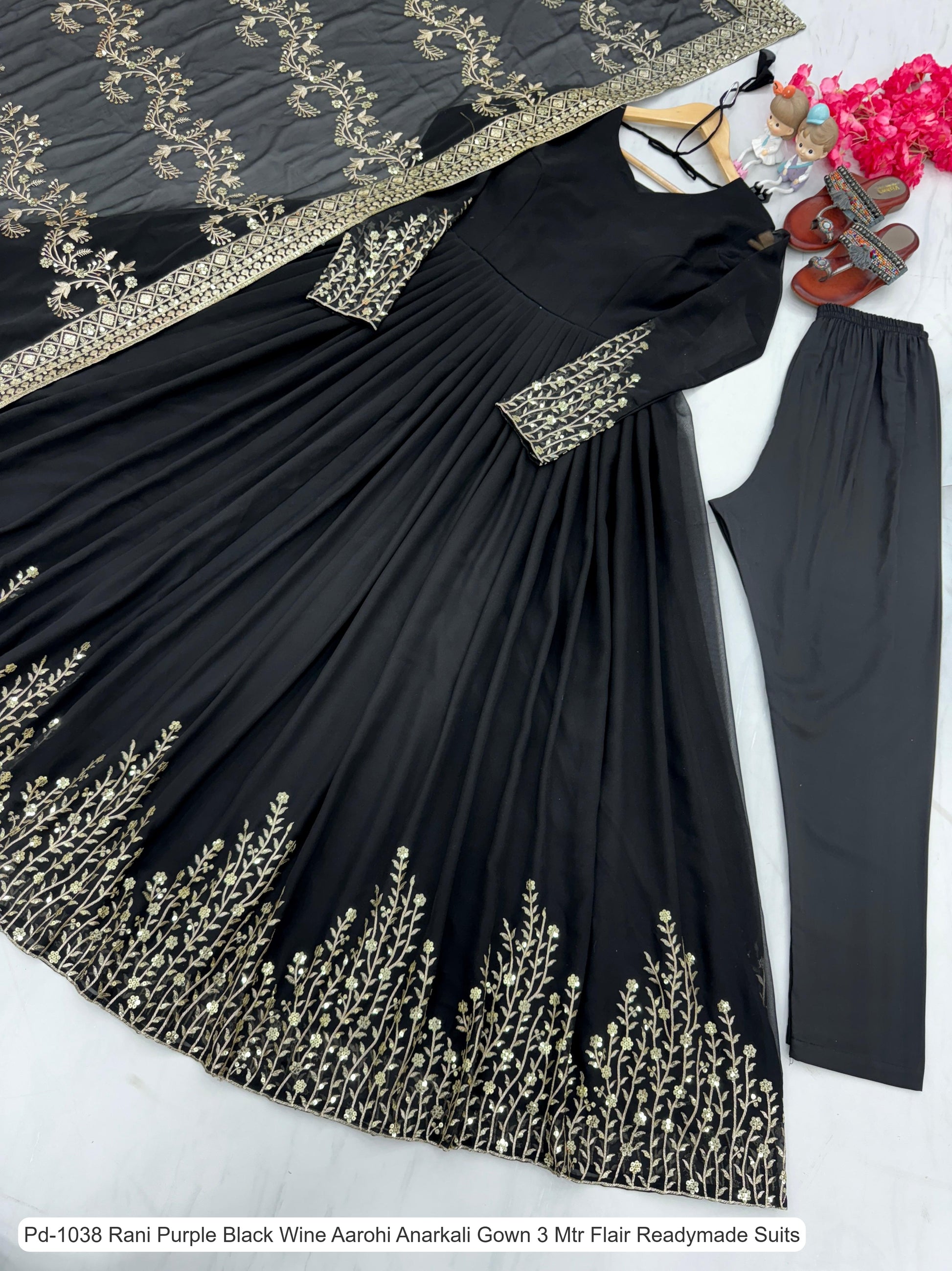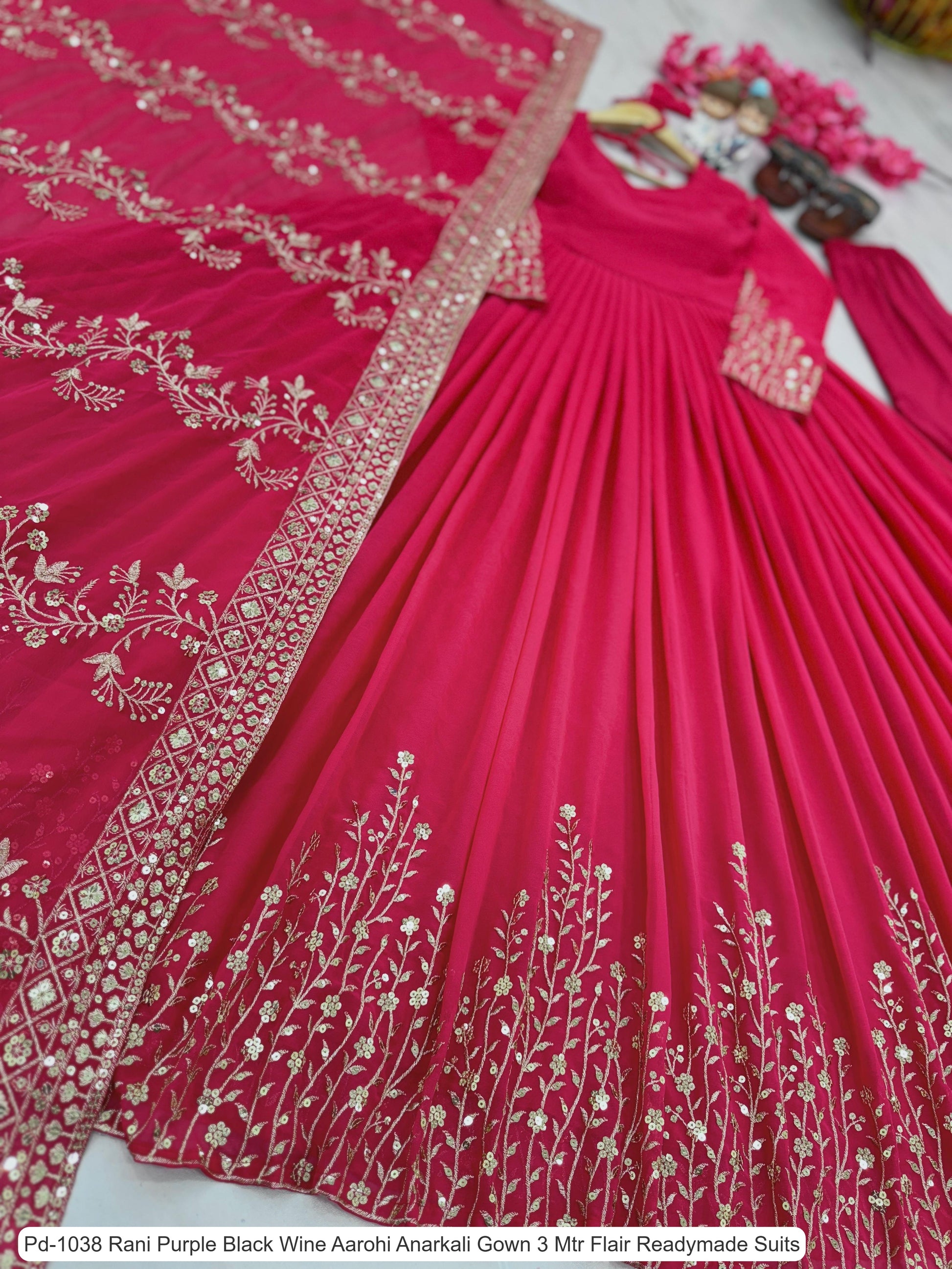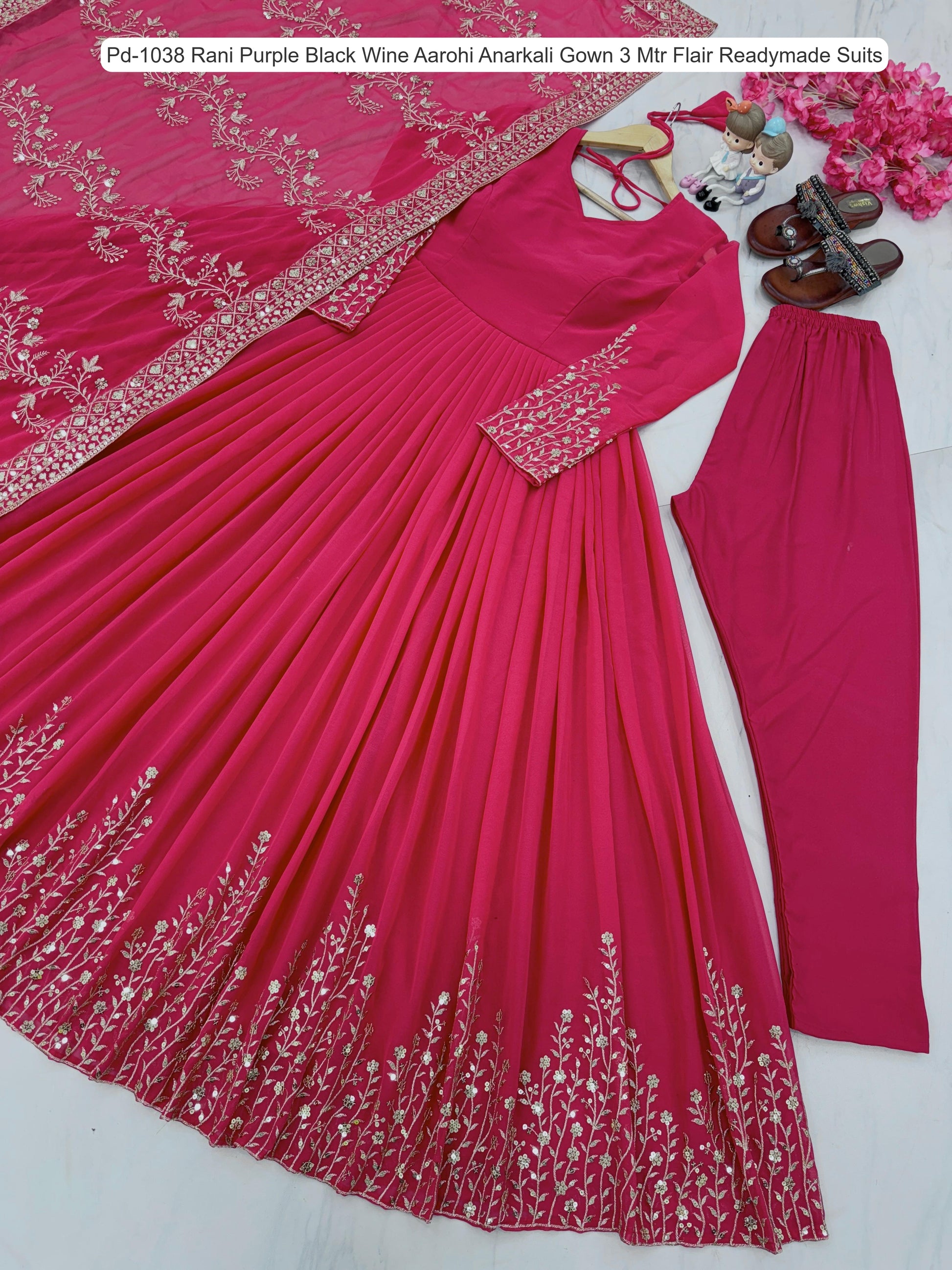 Pd-1038 Rani Purple Black Wine Aarohi Anarkali Gown 3 Mtr Flair Readymade Suits