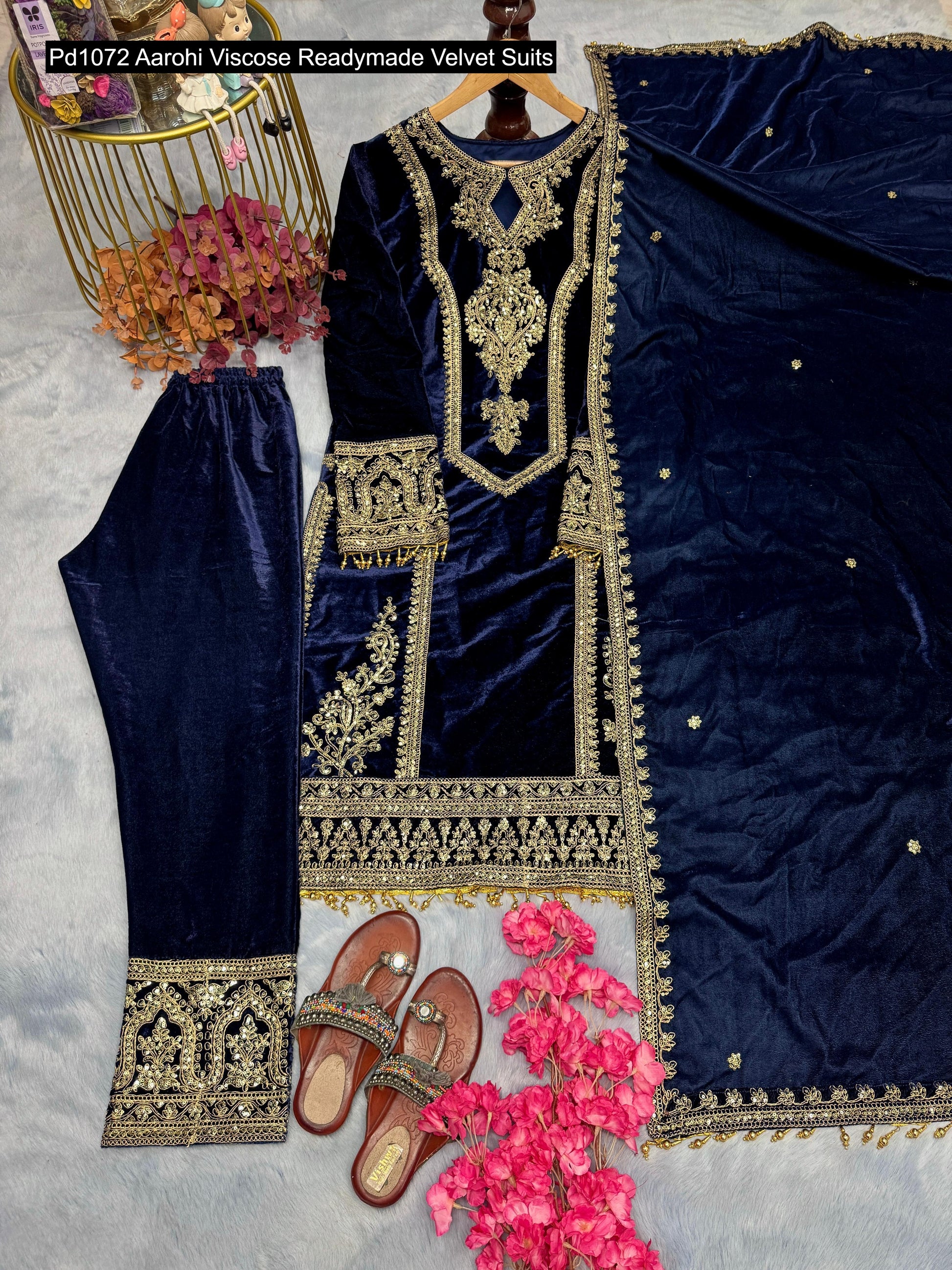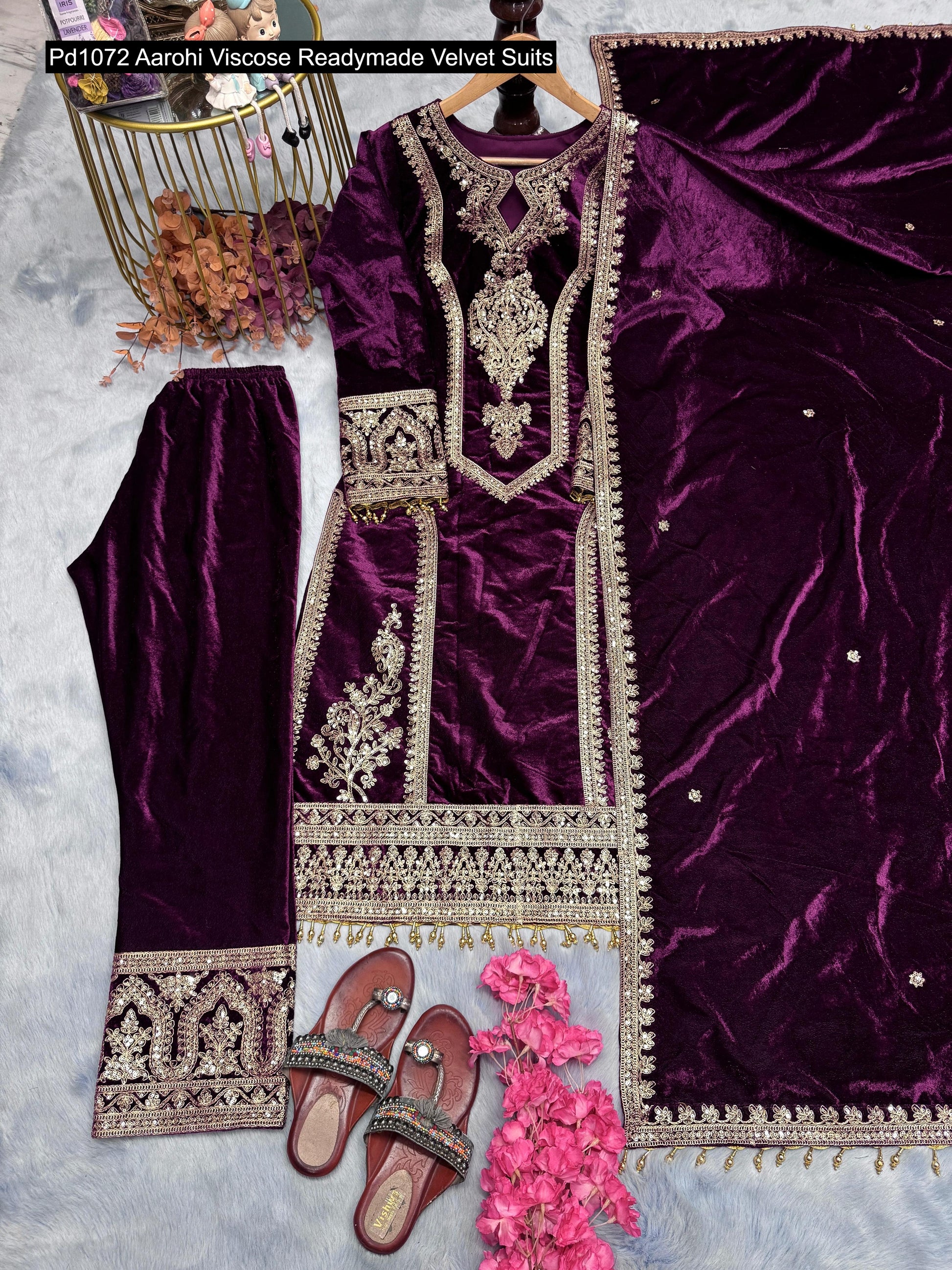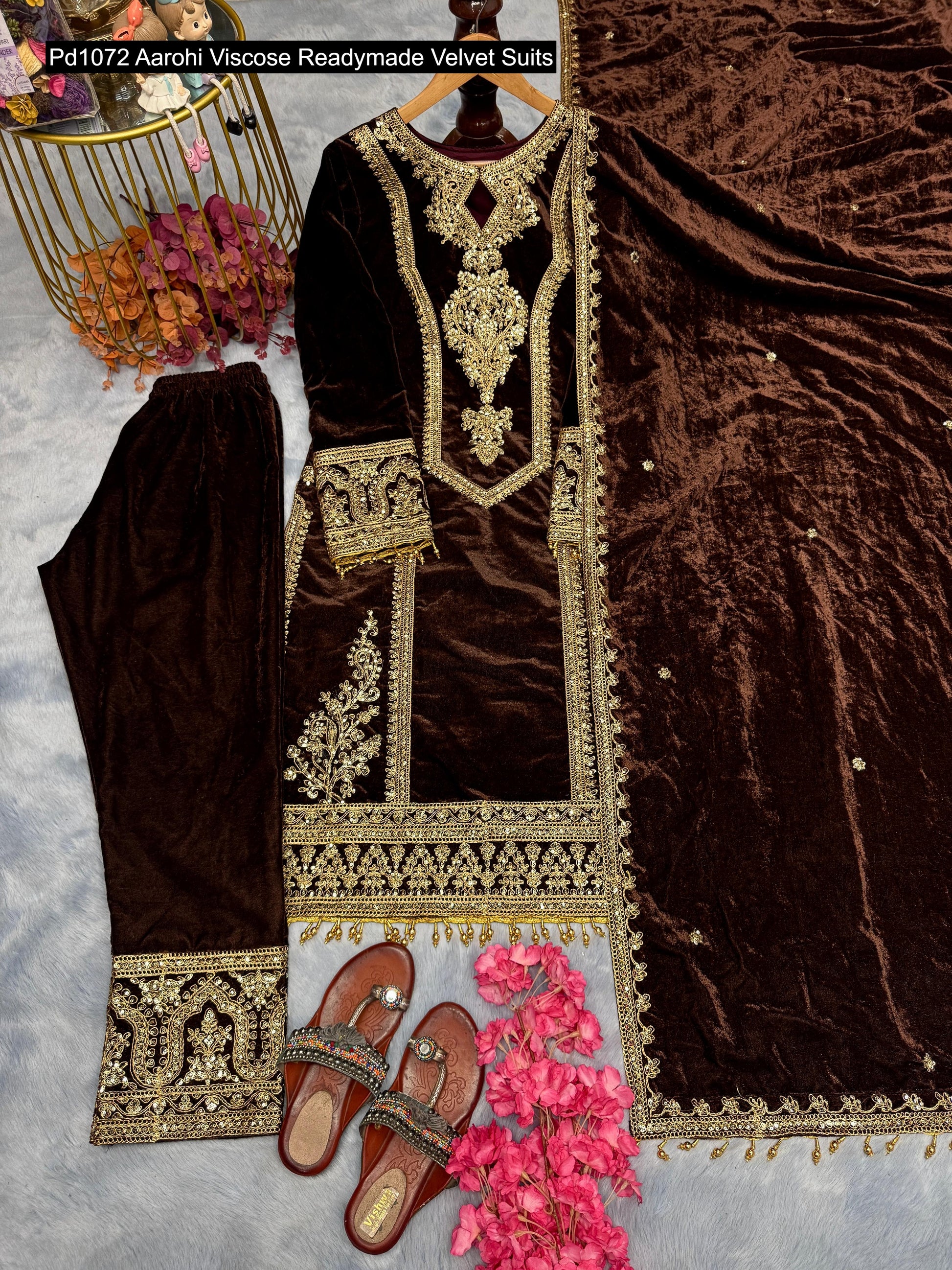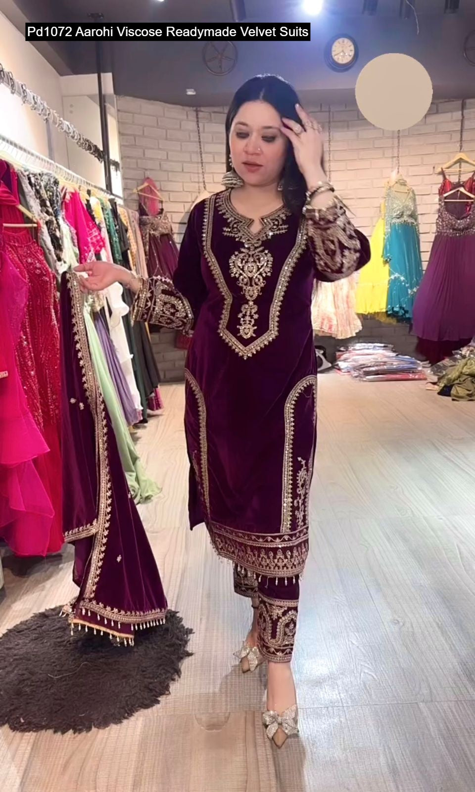 Pd1072 Aarohi Viscose Readymade Velvet Suits