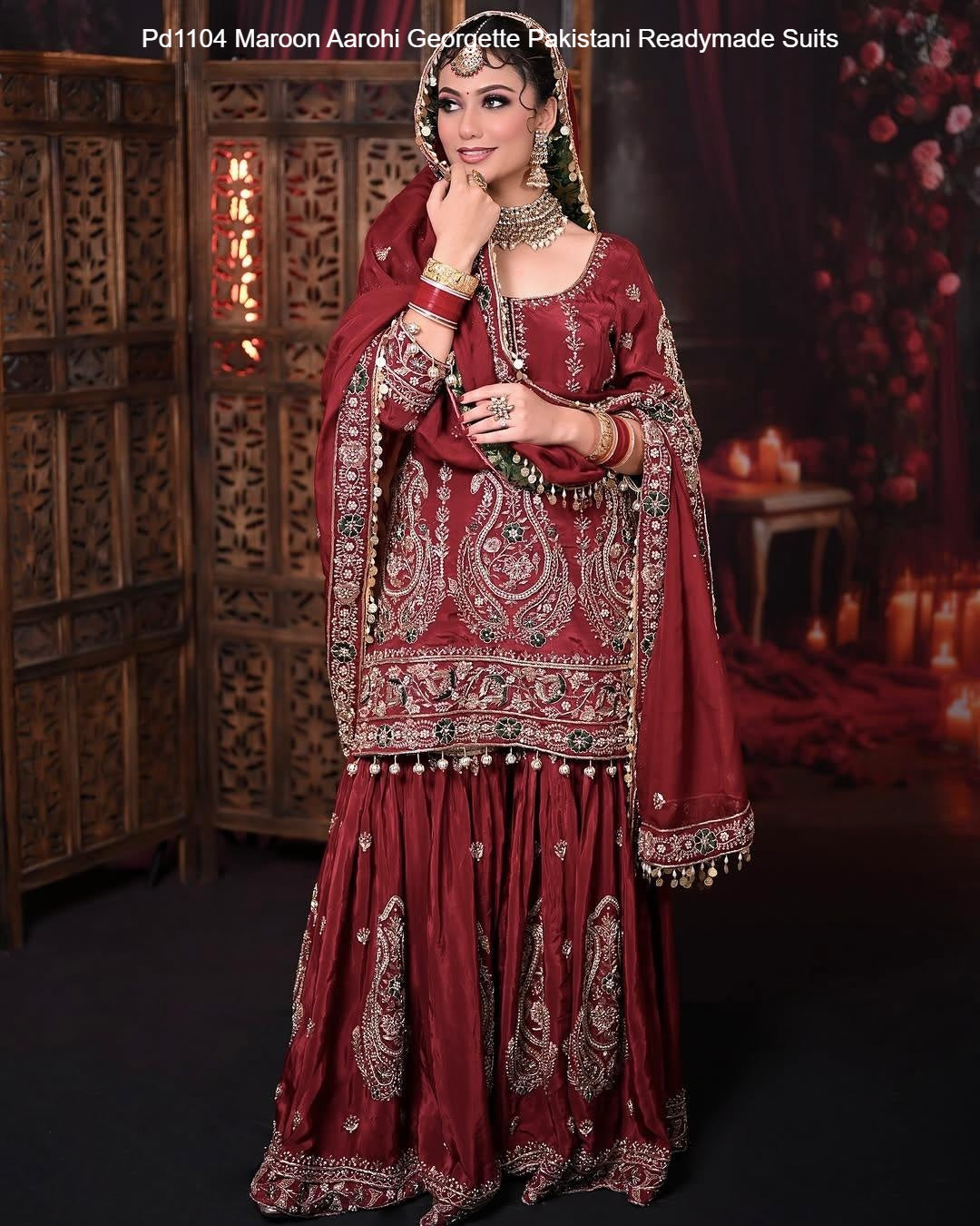 Pd1104 Maroon Aarohi Georgette Pakistani Readymade Suits