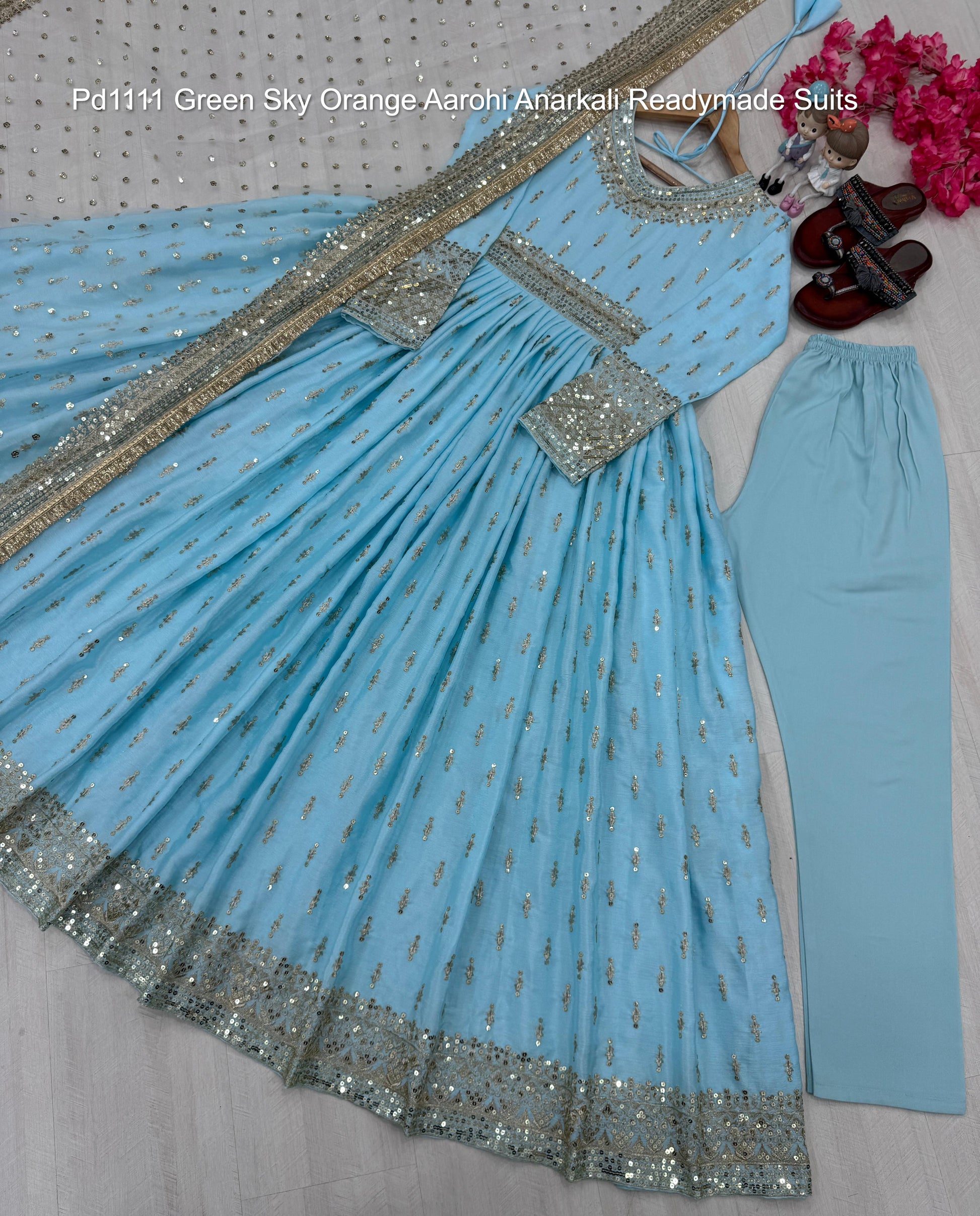 - Pd1111 Green Sky Orange Aarohi Anarkali Readymade Suits Dealer Ahmedabad Surat Wholesale Gujarat India Lowest Price Best Quality Buy Purchase Shipping Kurta Salwaar Kameez Also free Cash on delivery