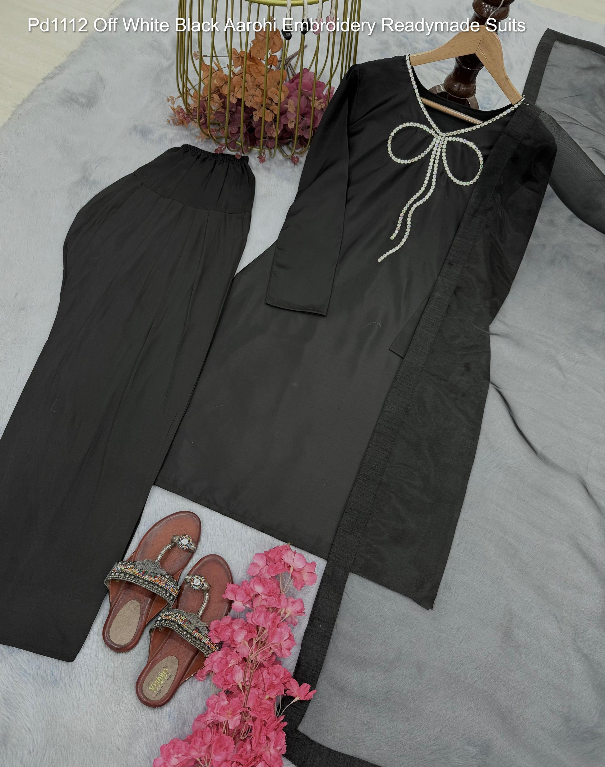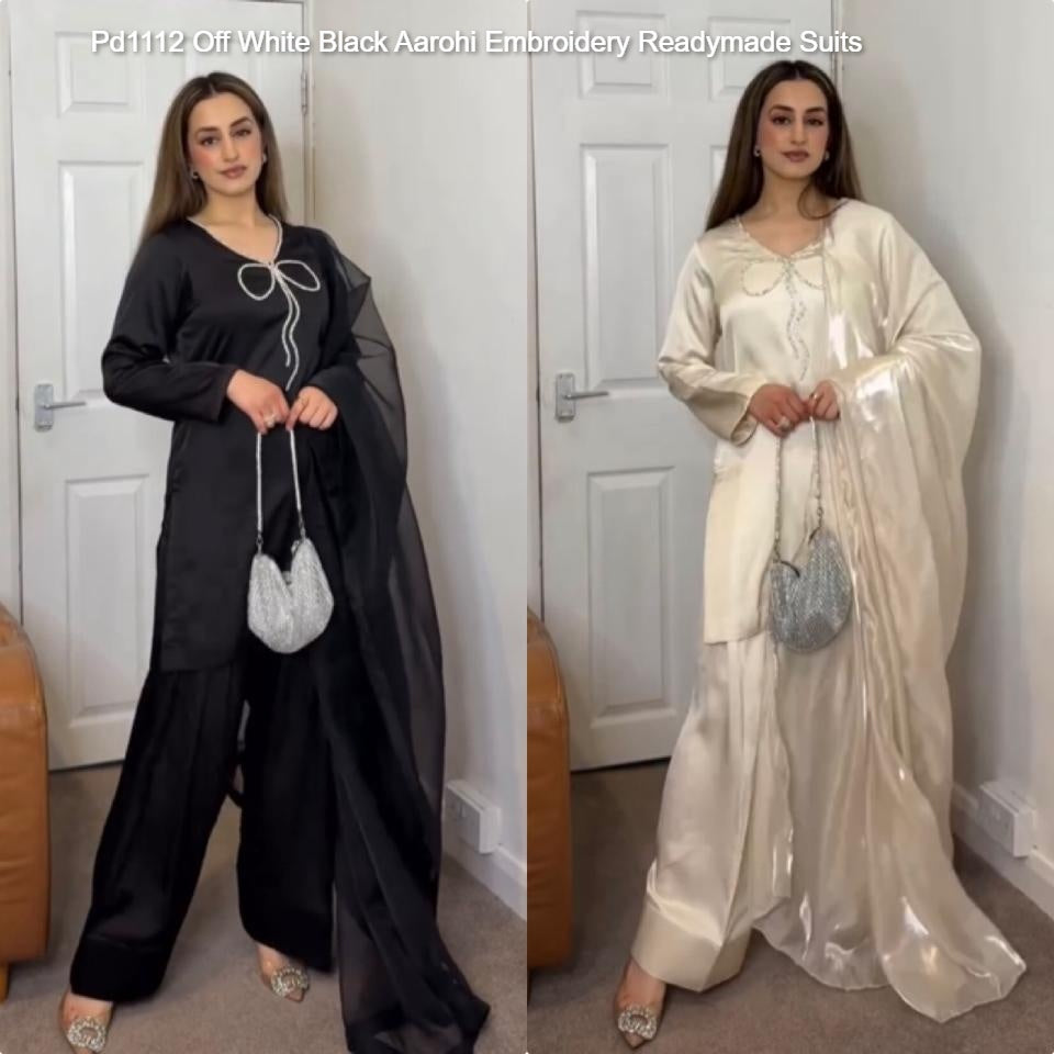 Pd1112 Off White Black Aarohi Embroidery Readymade Suits