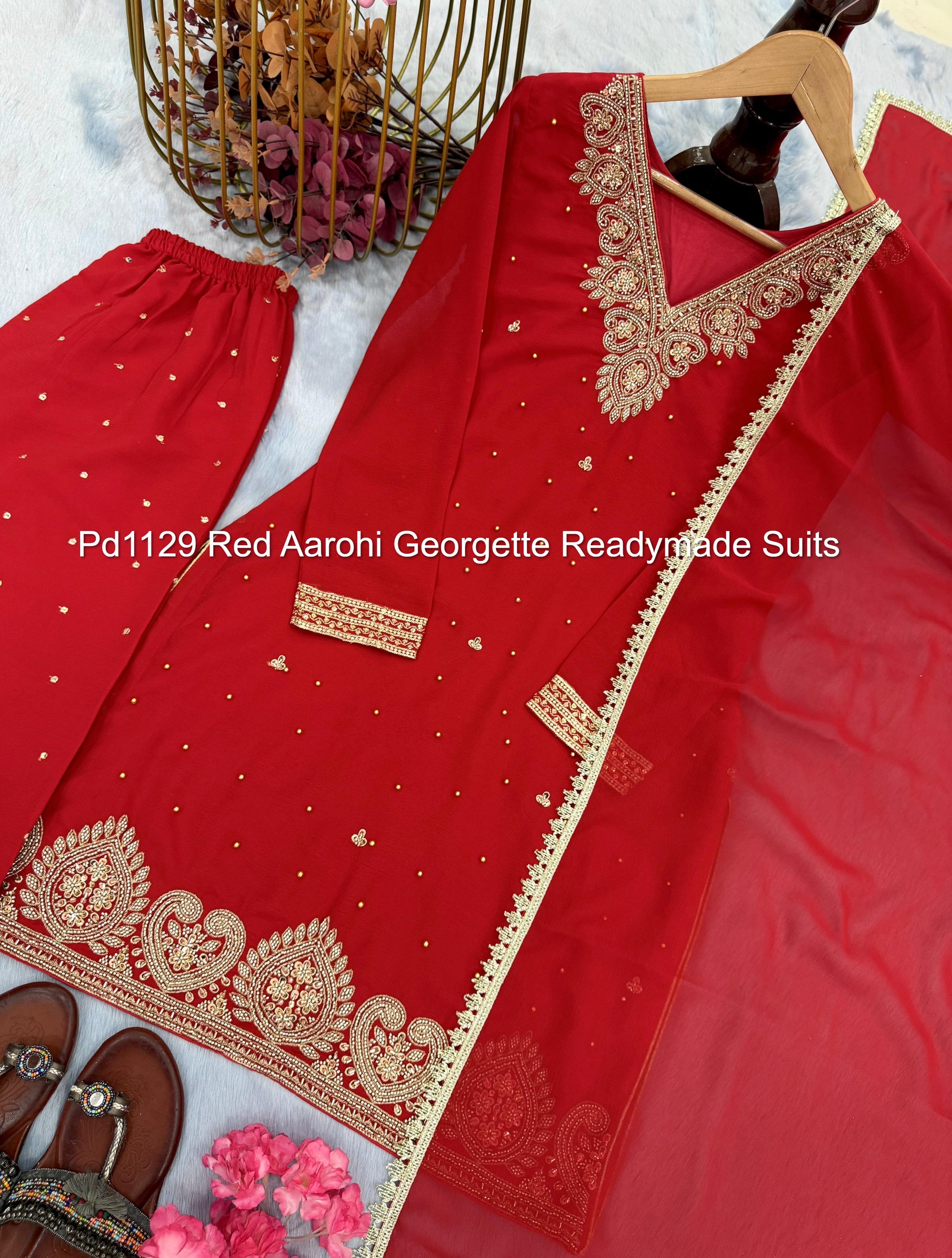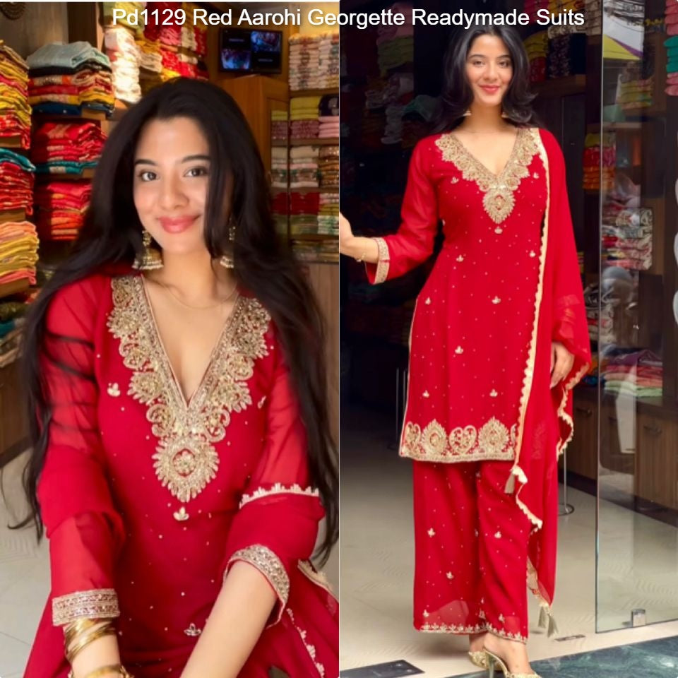 Pd1129 Red Aarohi Georgette Readymade Suits