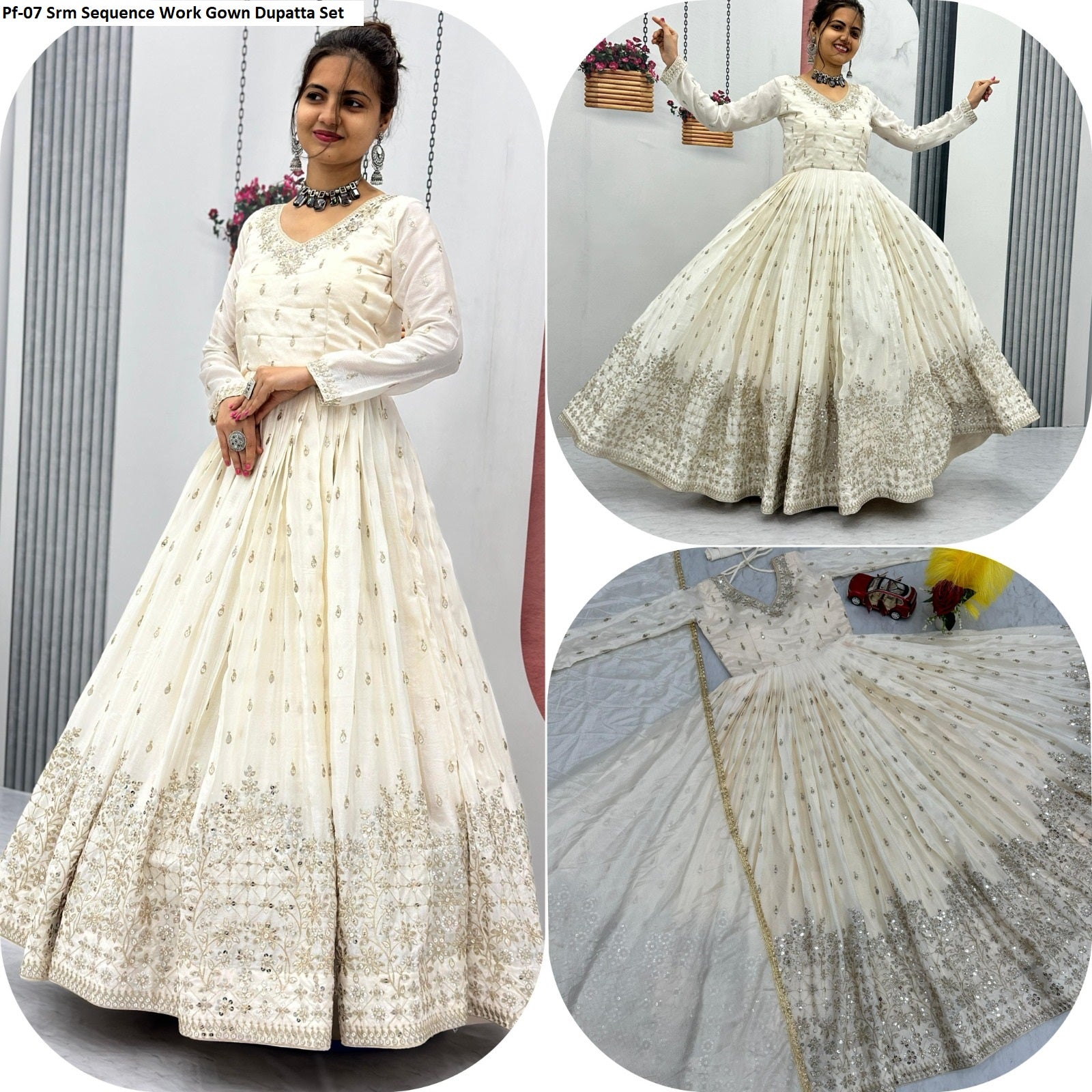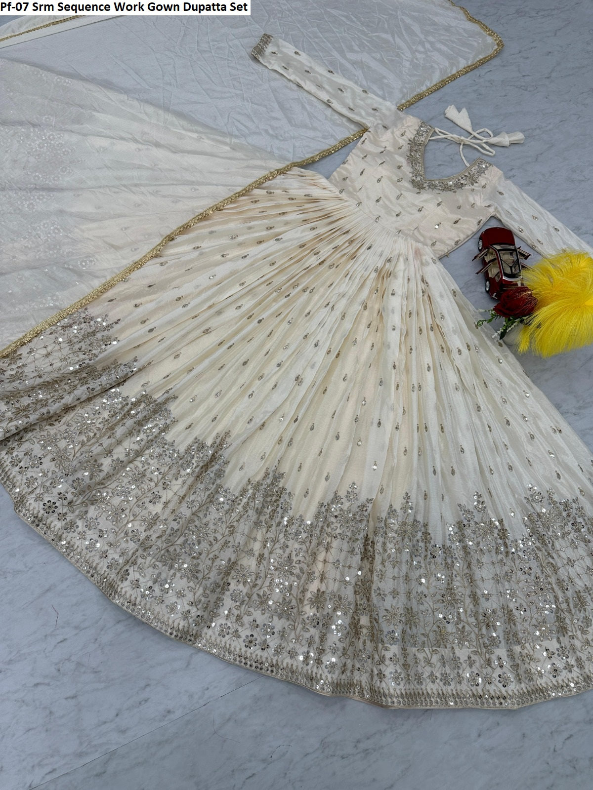 Pf-07 Srm Sequence Work Gown Dupatta Set