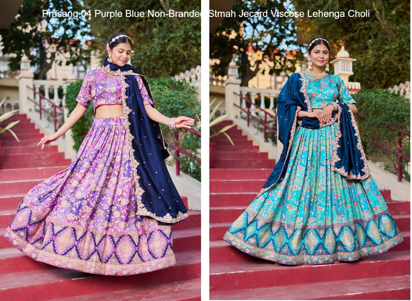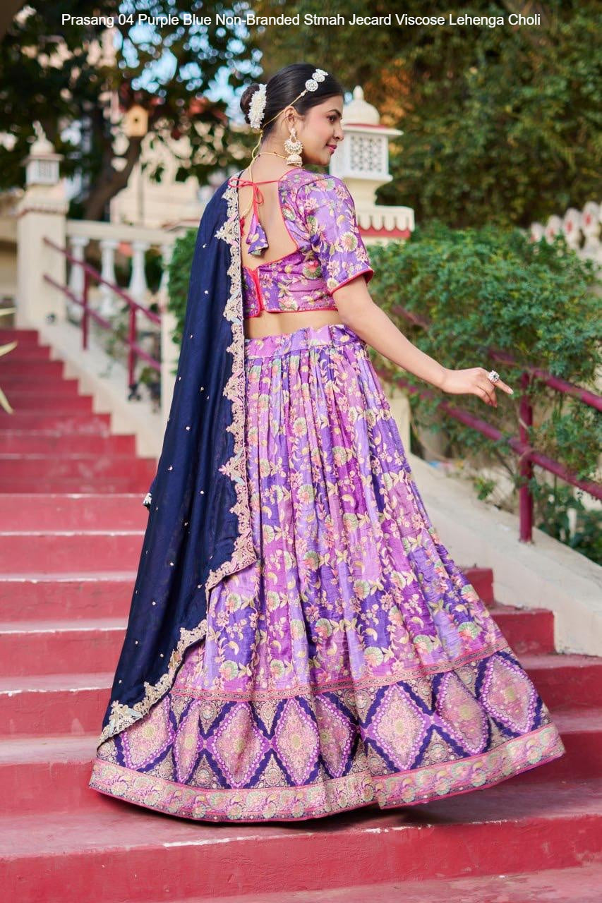 - Prasang 04 Purple Blue Non-Branded Stmah Jecard Viscose Lehenga Choli Dealer Ahmedabad Surat Wholesale Gujarat India Lowest Price Best Quality Buy Purchase Shipping Kurta Salwaar Kameez Also free Cash on delivery