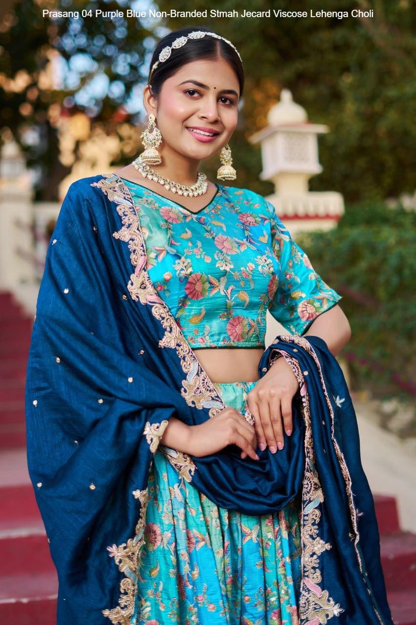 Prasang 04 Purple Blue Non-Branded Stmah Jecard Viscose Lehenga Choli