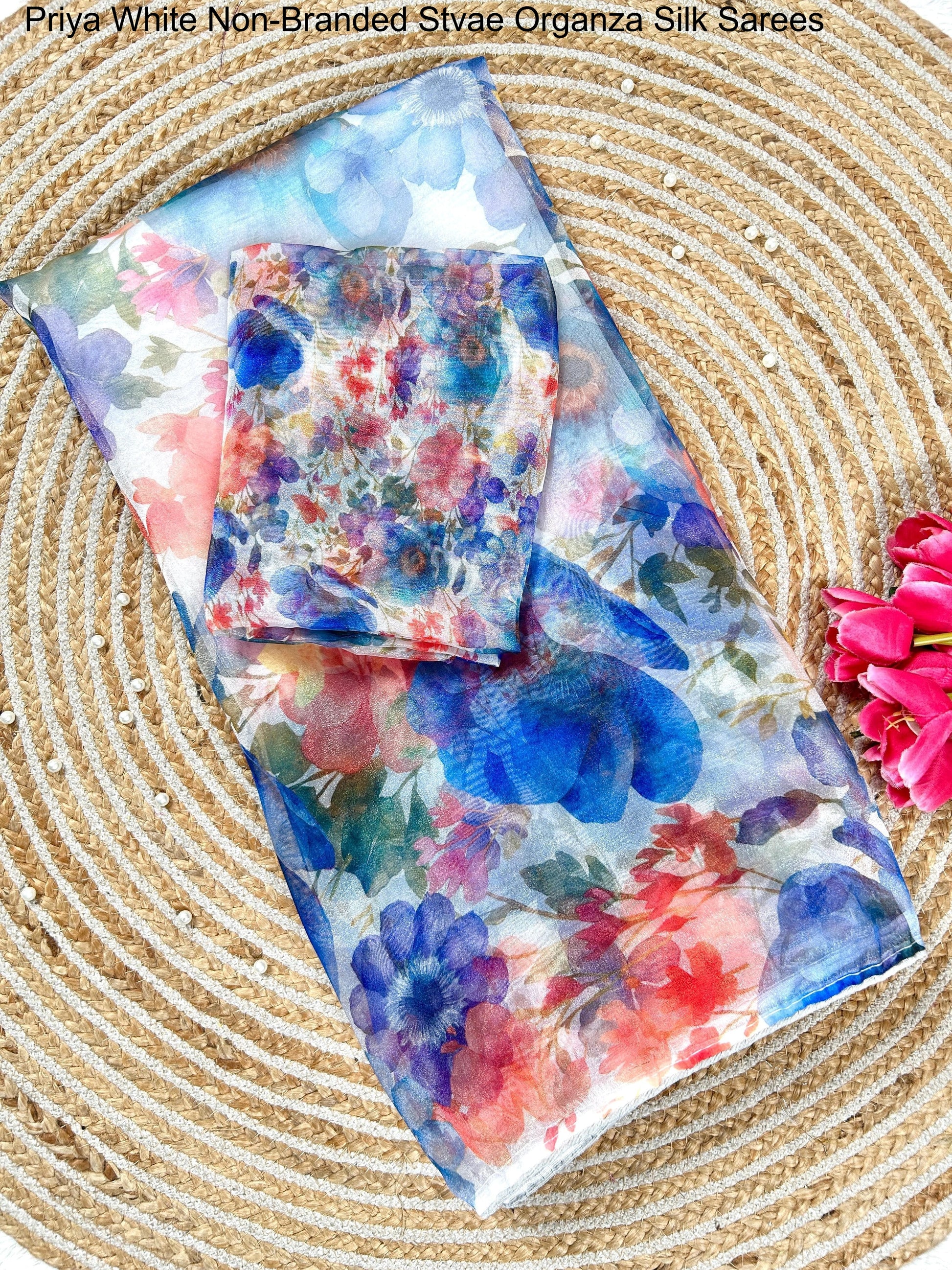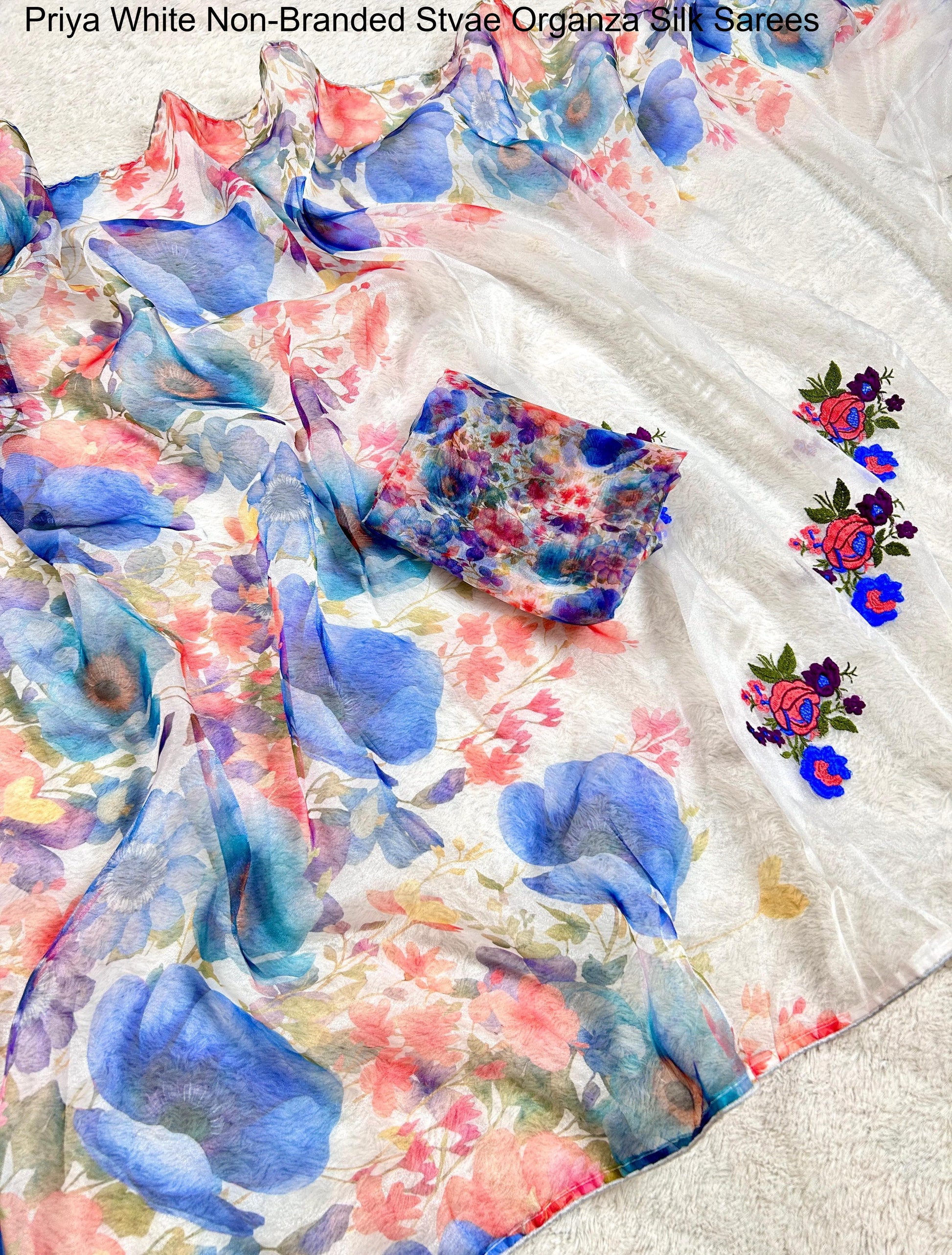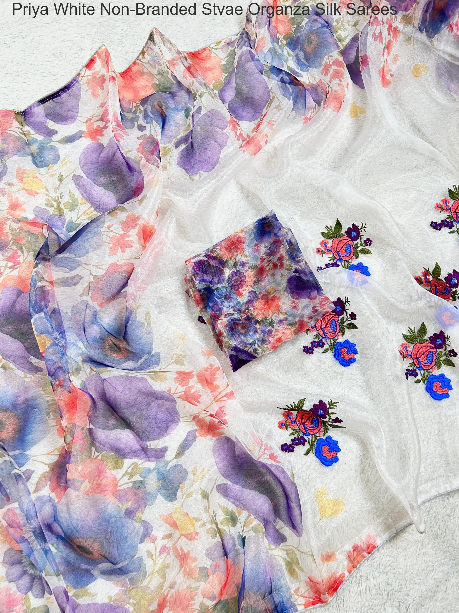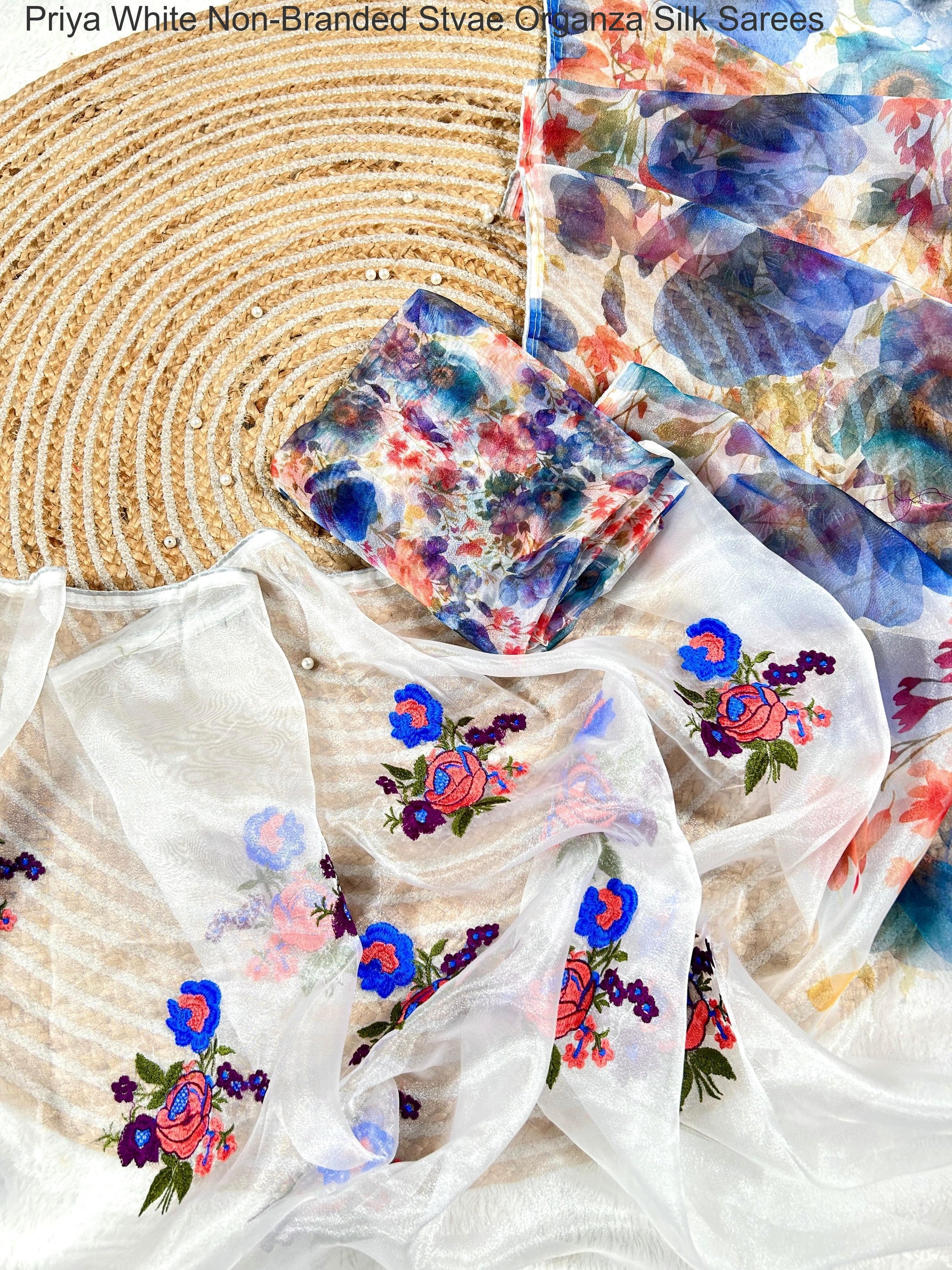 - Priya White Non-Branded Stvae Organza Silk Sarees Dealer Ahmedabad Surat Wholesale Gujarat India Lowest Price Best Quality Buy Purchase Shipping Kurta Salwaar Kameez Also free Cash on delivery