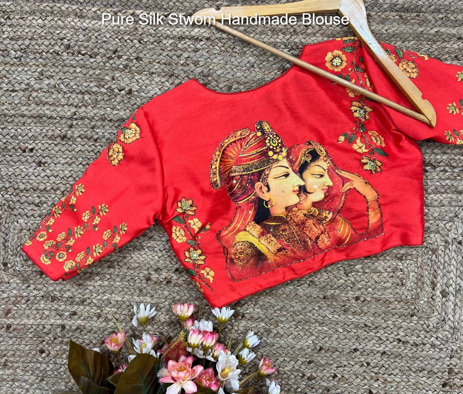 - Fabric Detail: Pure Silk With Hand Work Handmade Work Boutique Style Blouse , , , Size : 38 (Up To 42 Margin )