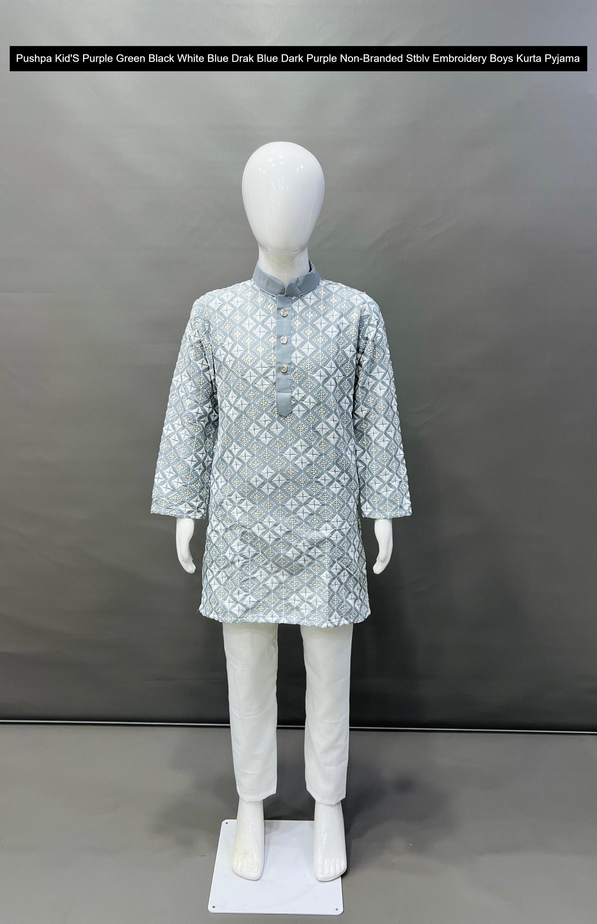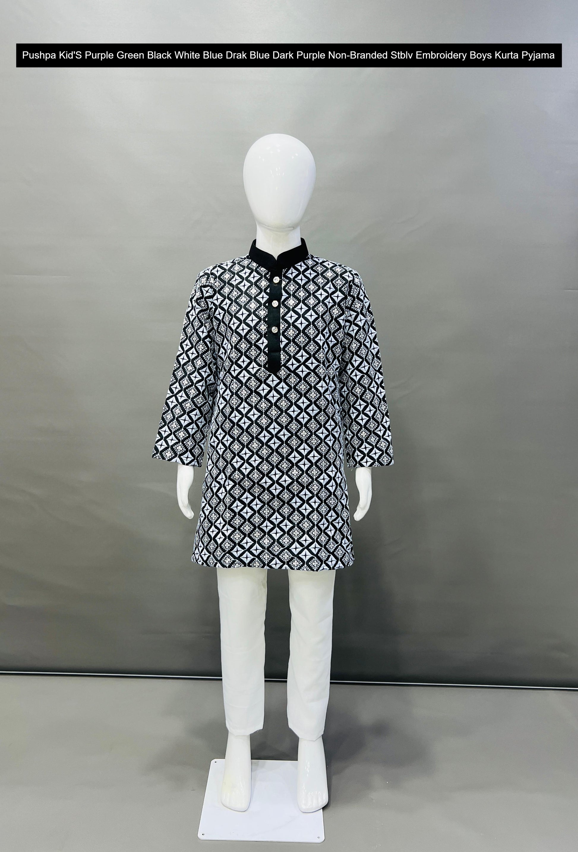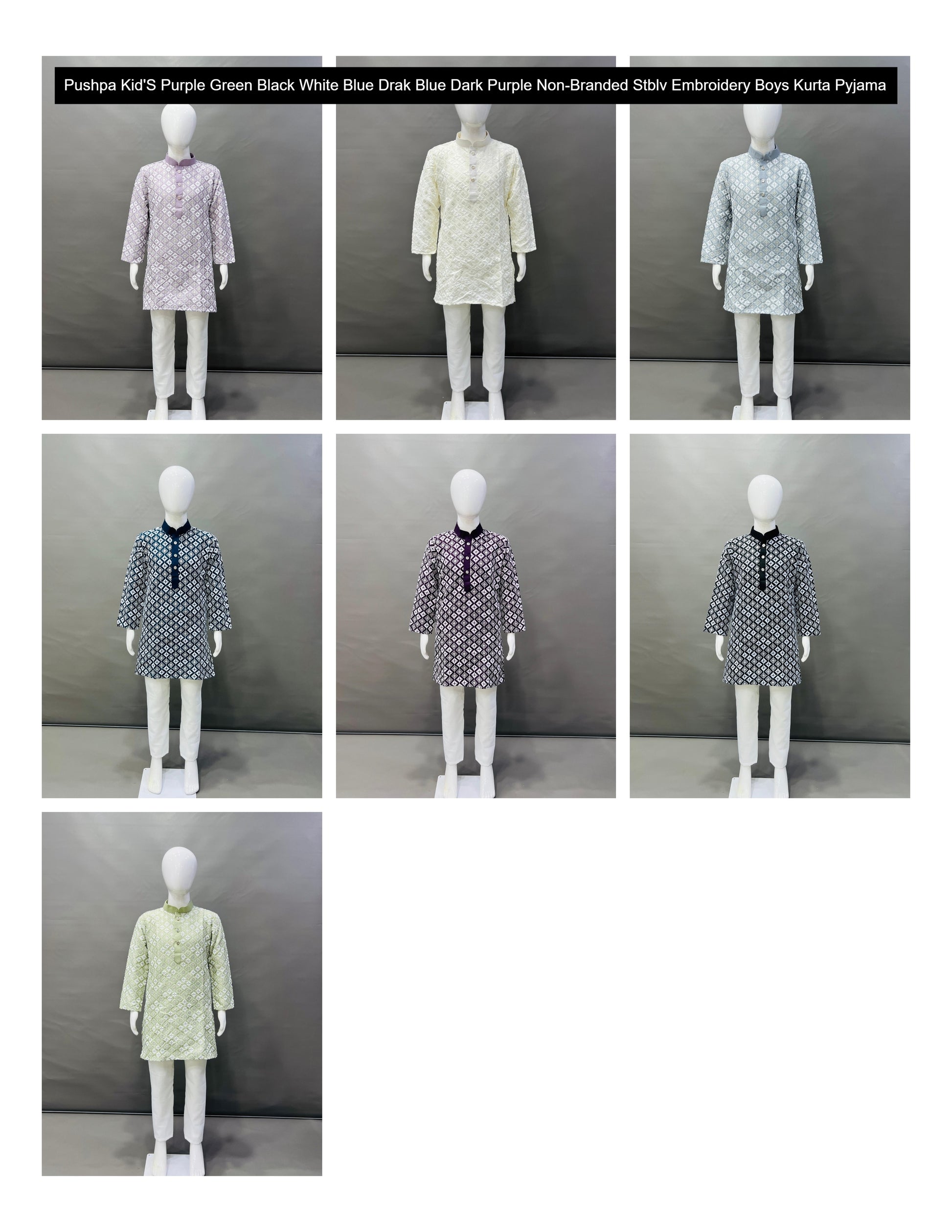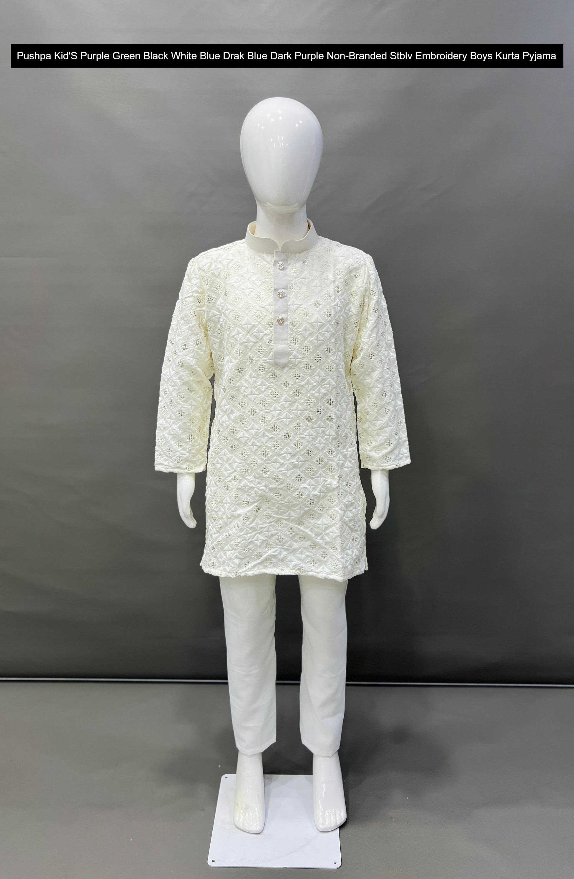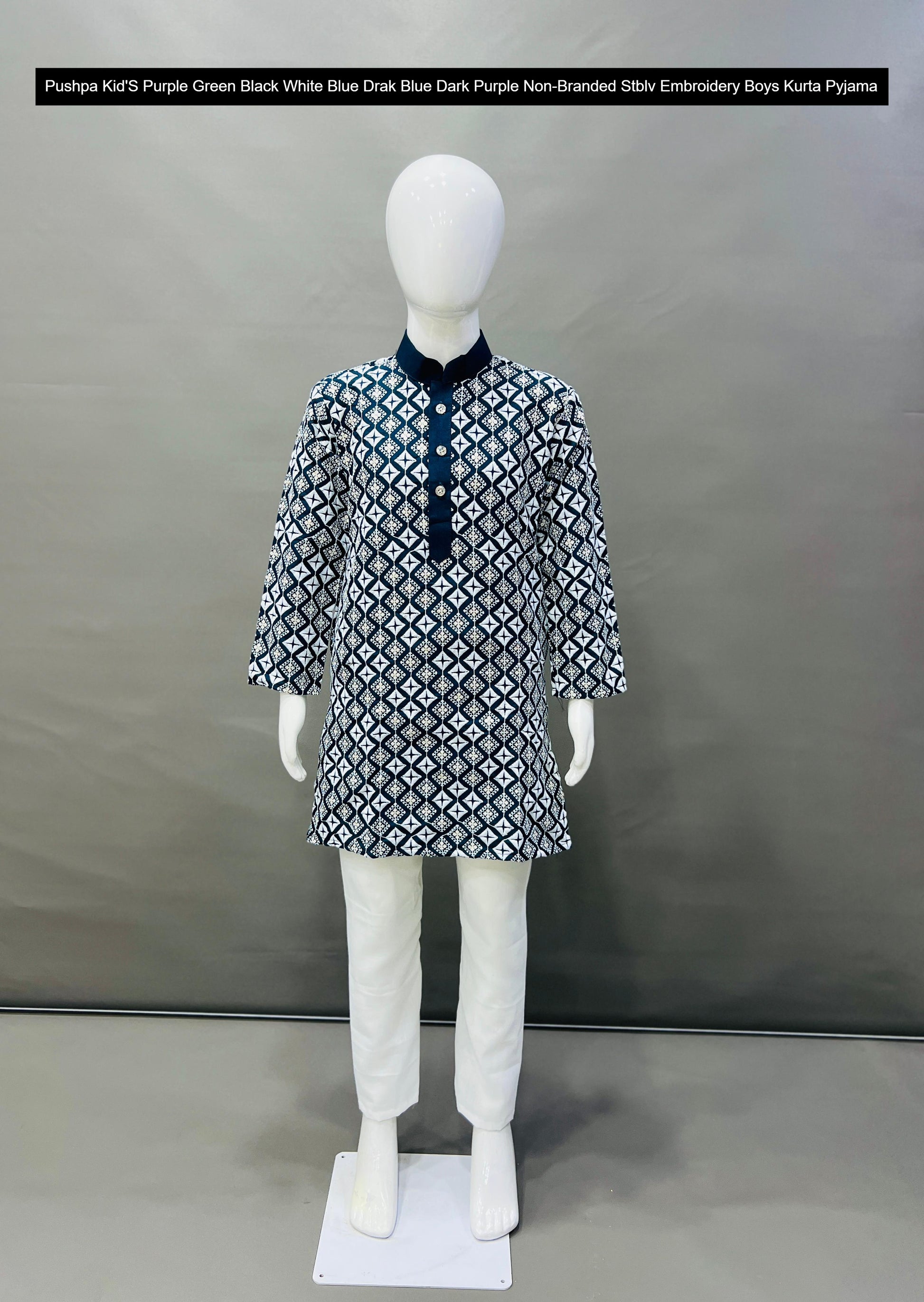 Pushpa Kid'S Purple Green Black White Blue Drak Blue Dark Purple Non-Branded Stblv Embroidery Boys Kurta Pyjama