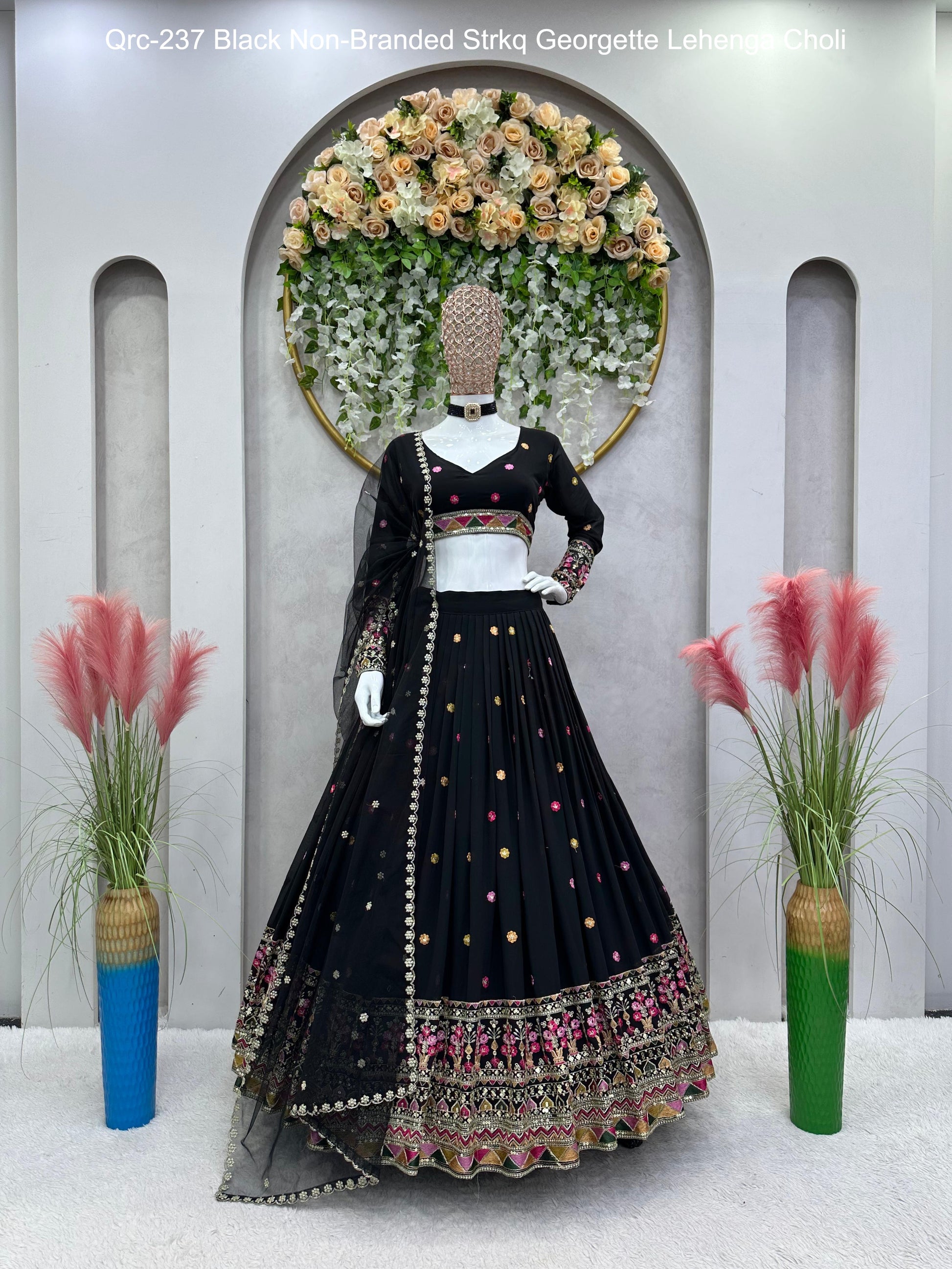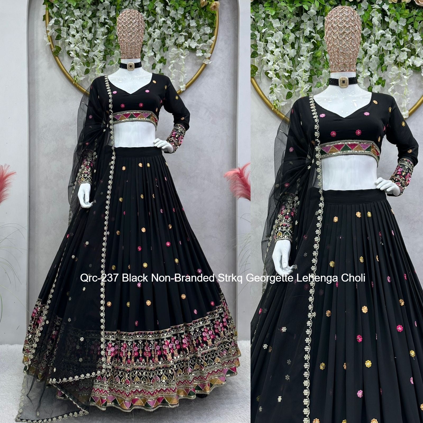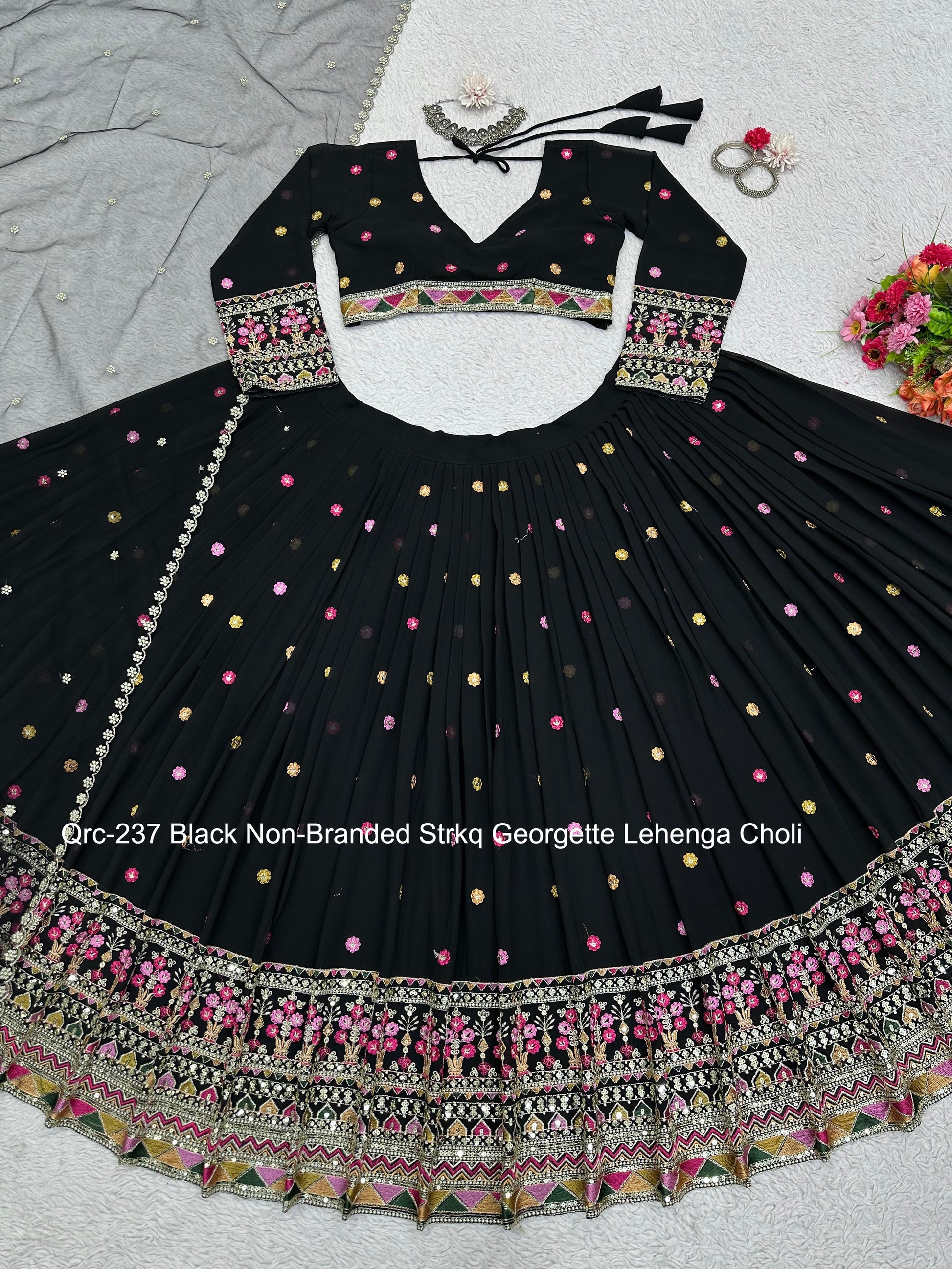- Qrc-237 Black Non-Branded Strkq Georgette Lehenga Choli Dealer Ahmedabad Surat Wholesale Gujarat India Lowest Price Best Quality Buy Purchase Shipping Kurta Salwaar Kameez Also free Cash on delivery