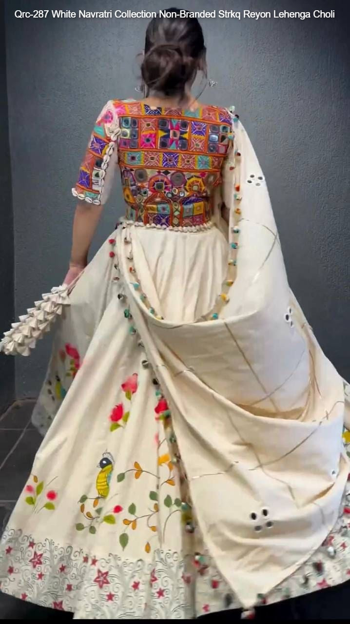 Qrc-287 White Navratri Collection Non-Branded Strkq Reyon Lehenga Choli
