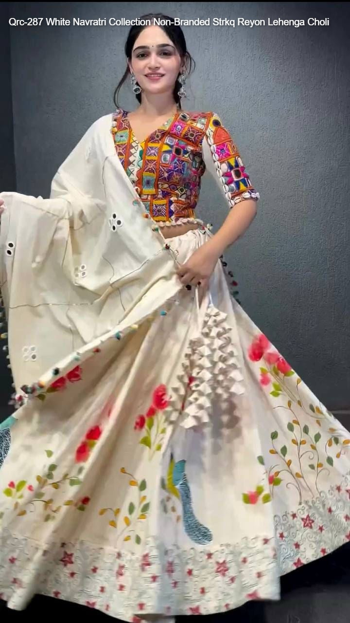 - Qrc-287 White Navratri Collection Non-Branded Strkq Reyon Lehenga Choli Dealer Ahmedabad Surat Wholesale Gujarat India Lowest Price Best Quality Buy Purchase Shipping Kurta Salwaar Kameez Also free Cash on delivery