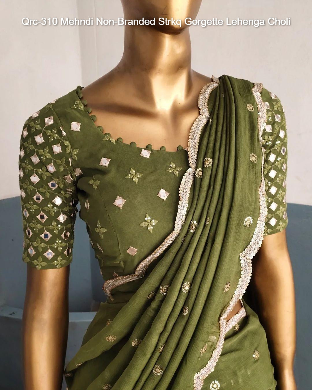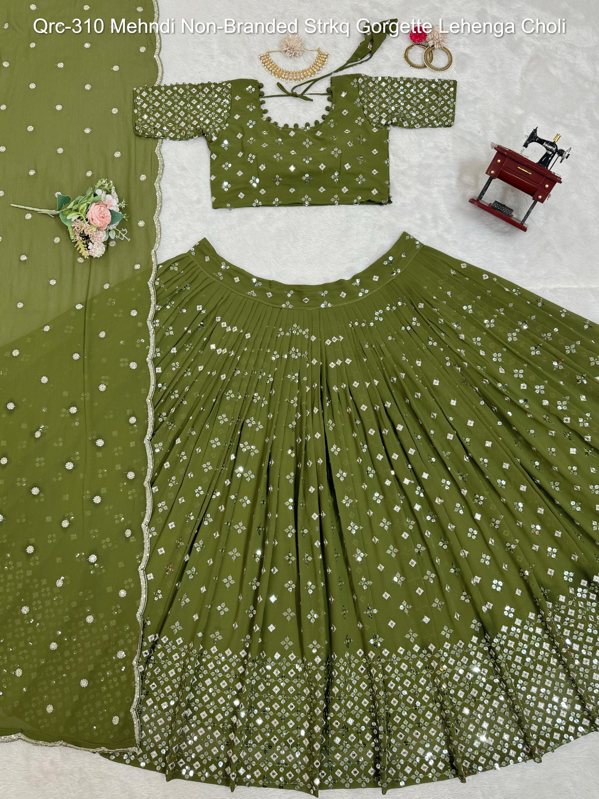 Qrc-310 Mehndi Non-Branded Strkq Gorgette Lehenga Choli