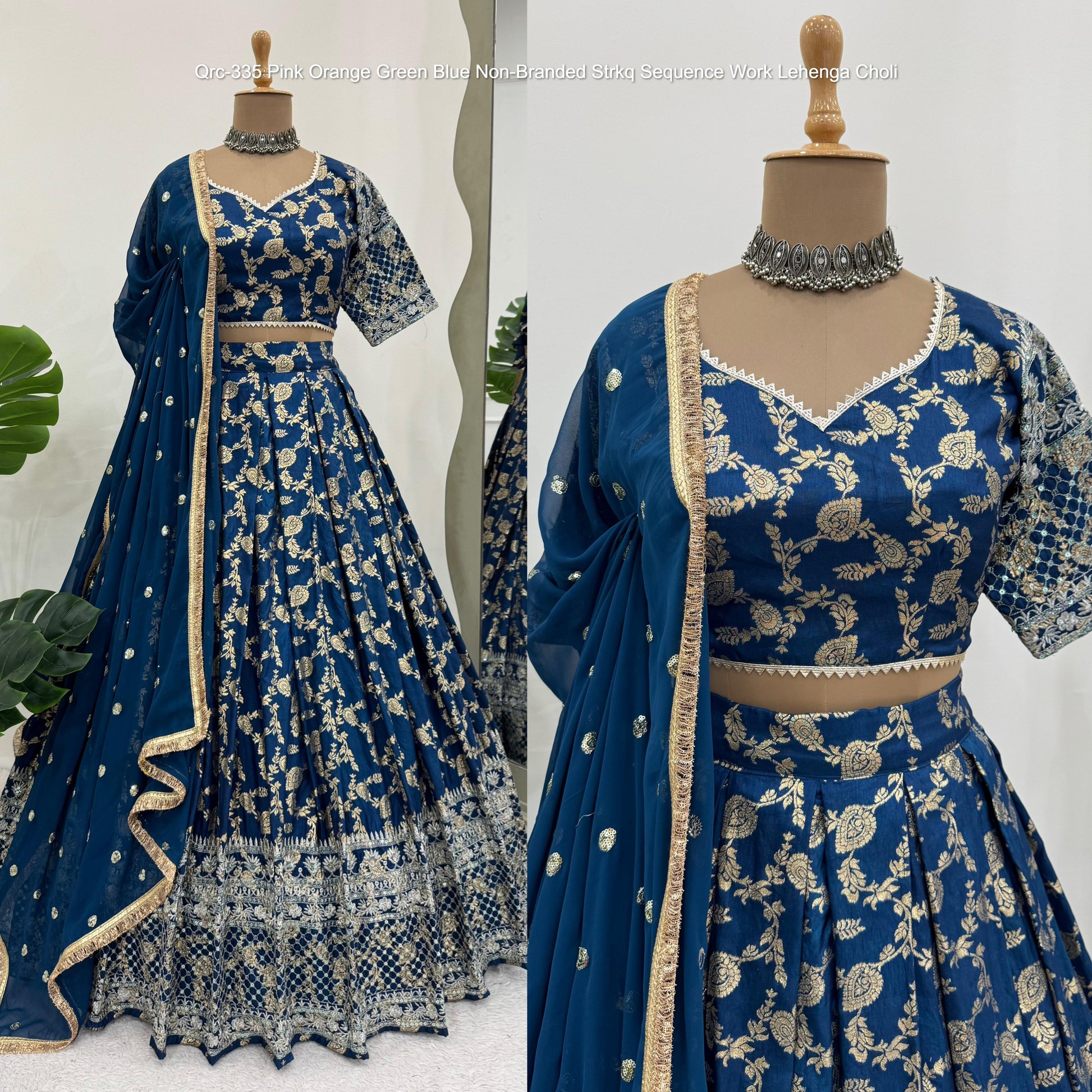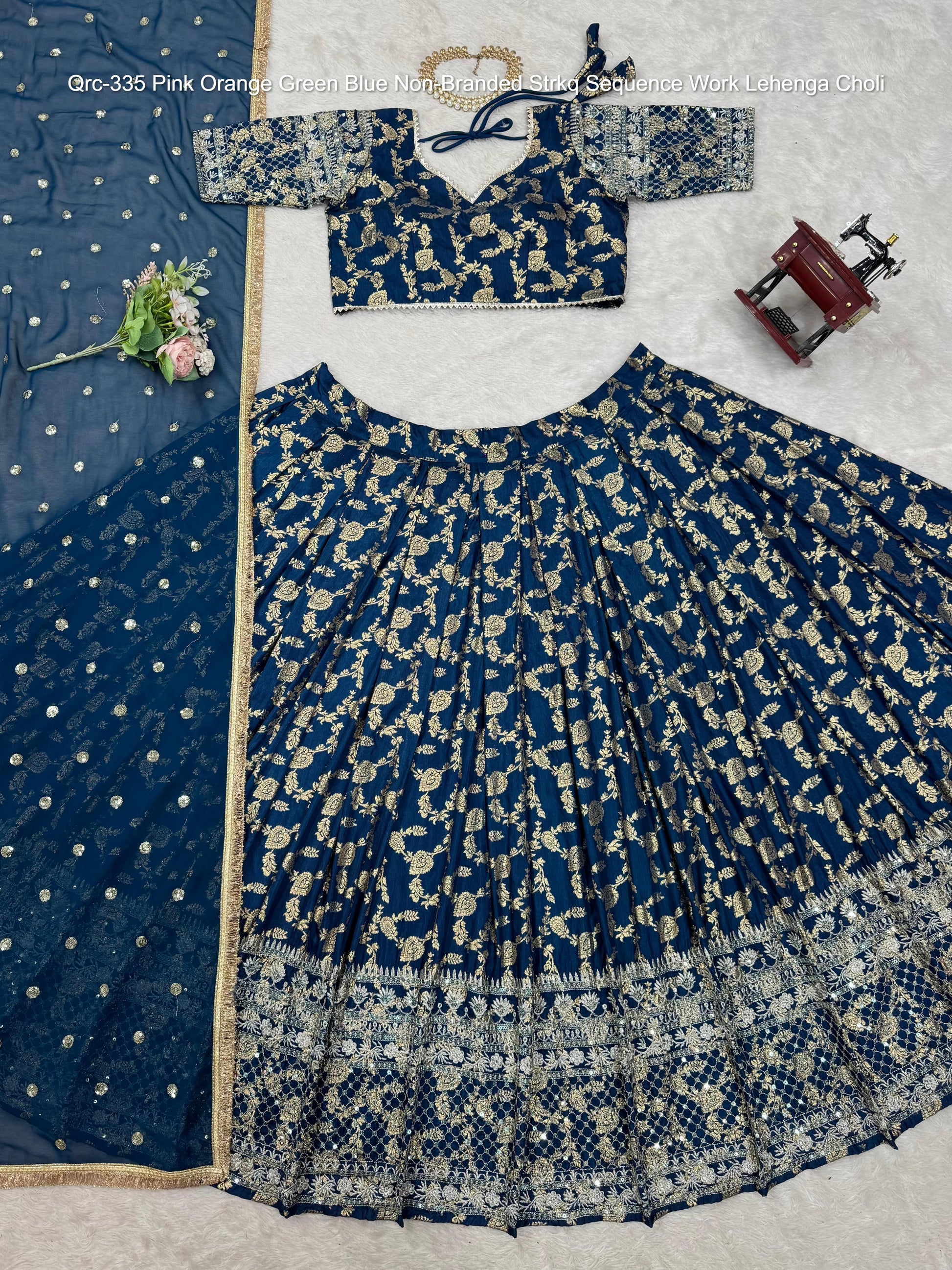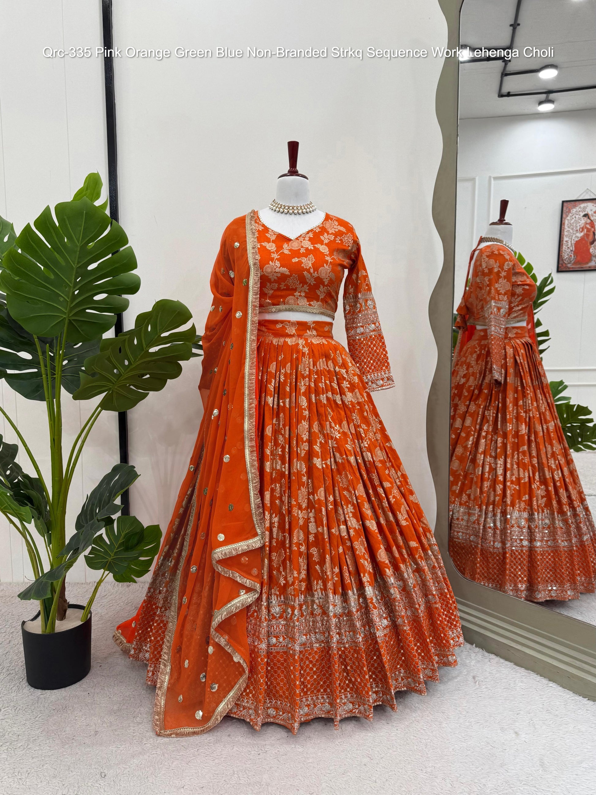 - Qrc-335 Pink Orange Green Blue Non-Branded Strkq Sequence Work Lehenga Choli Dealer Ahmedabad Surat Wholesale Gujarat India Lowest Price Best Quality Buy Purchase Shipping Kurta Salwaar Kameez Also free Cash on delivery