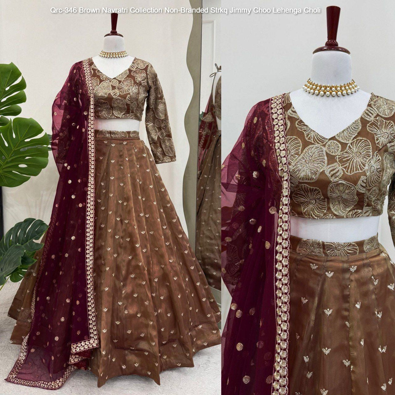 Qrc-346 Brown Navratri Collection Non-Branded Strkq Jimmy Choo Lehenga Choli