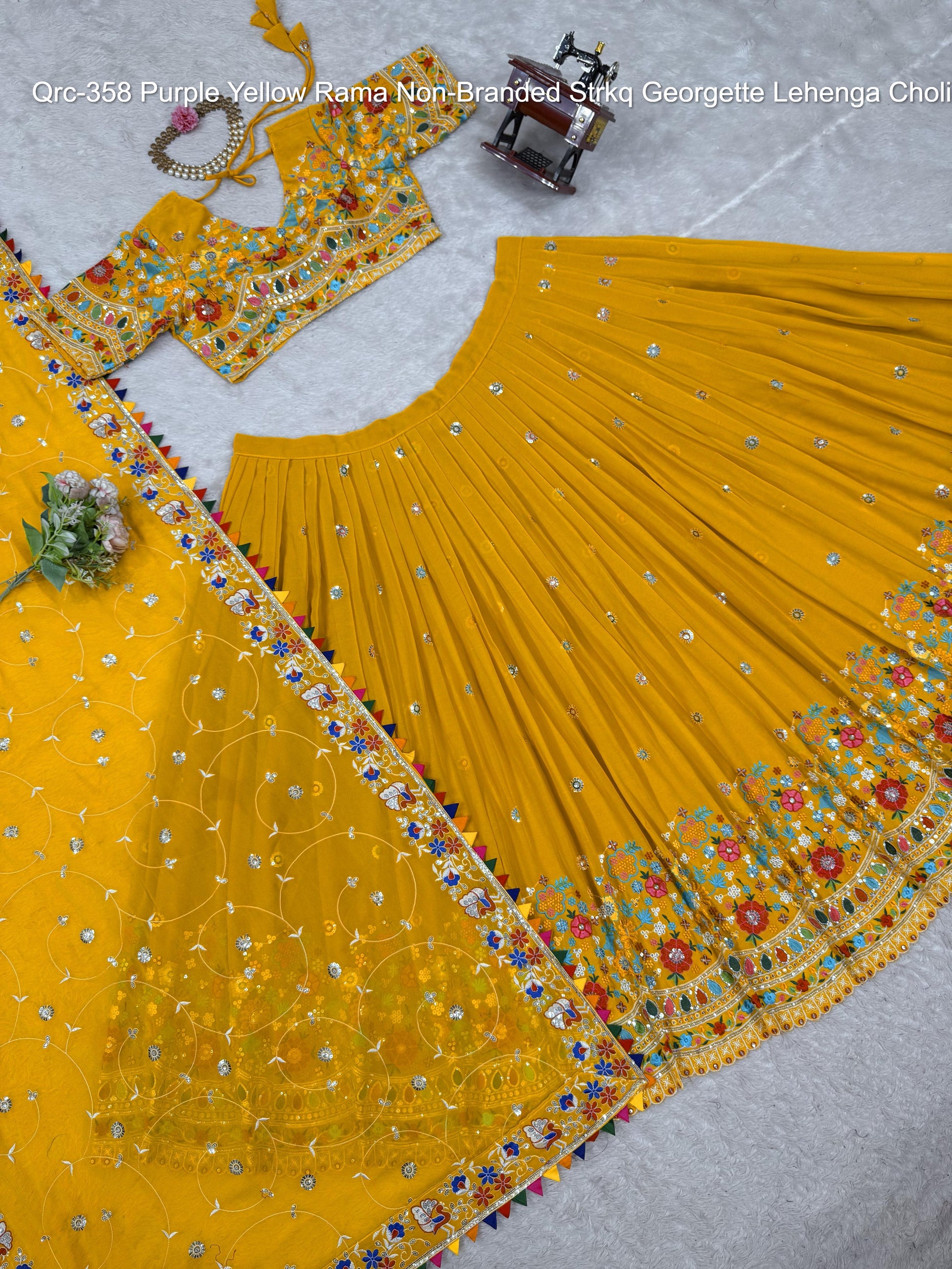 - Qrc-358 Purple Yellow Rama Non-Branded Strkq Georgette Lehenga Choli Dealer Ahmedabad Surat Wholesale Gujarat India Lowest Price Best Quality Buy Purchase Shipping Kurta Salwaar Kameez Also free Cash on delivery