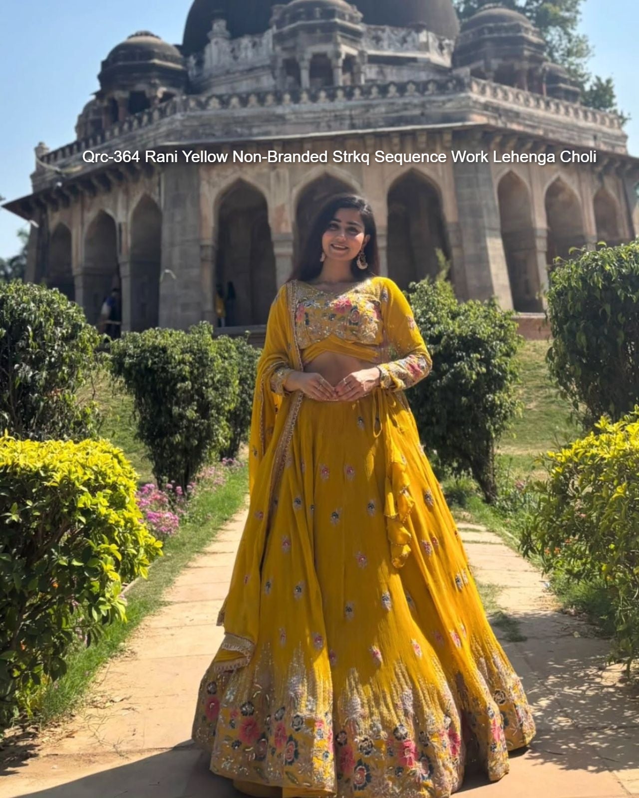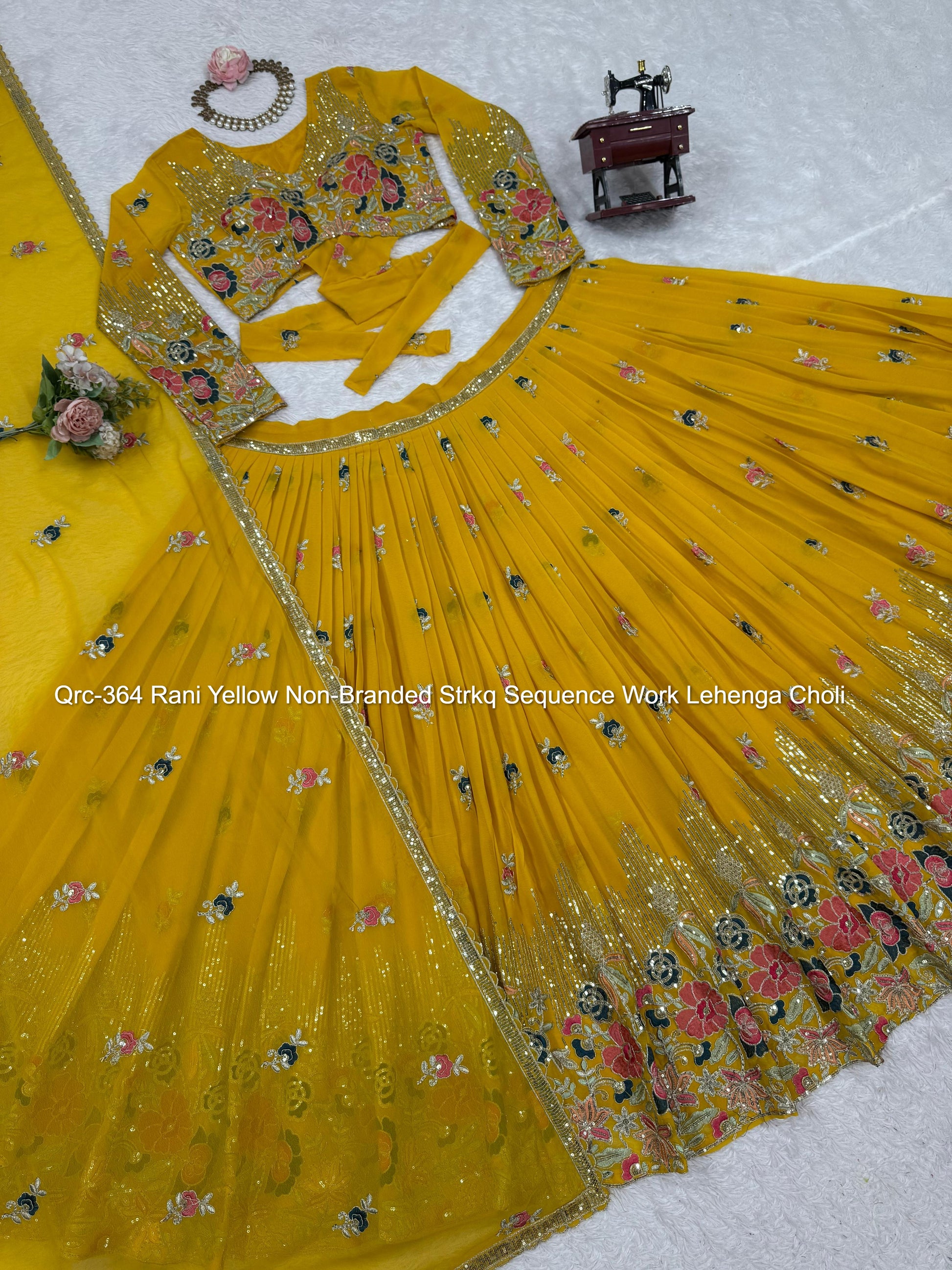 Qrc-364 Rani Yellow Non-Branded Strkq Sequence Work Lehenga Choli