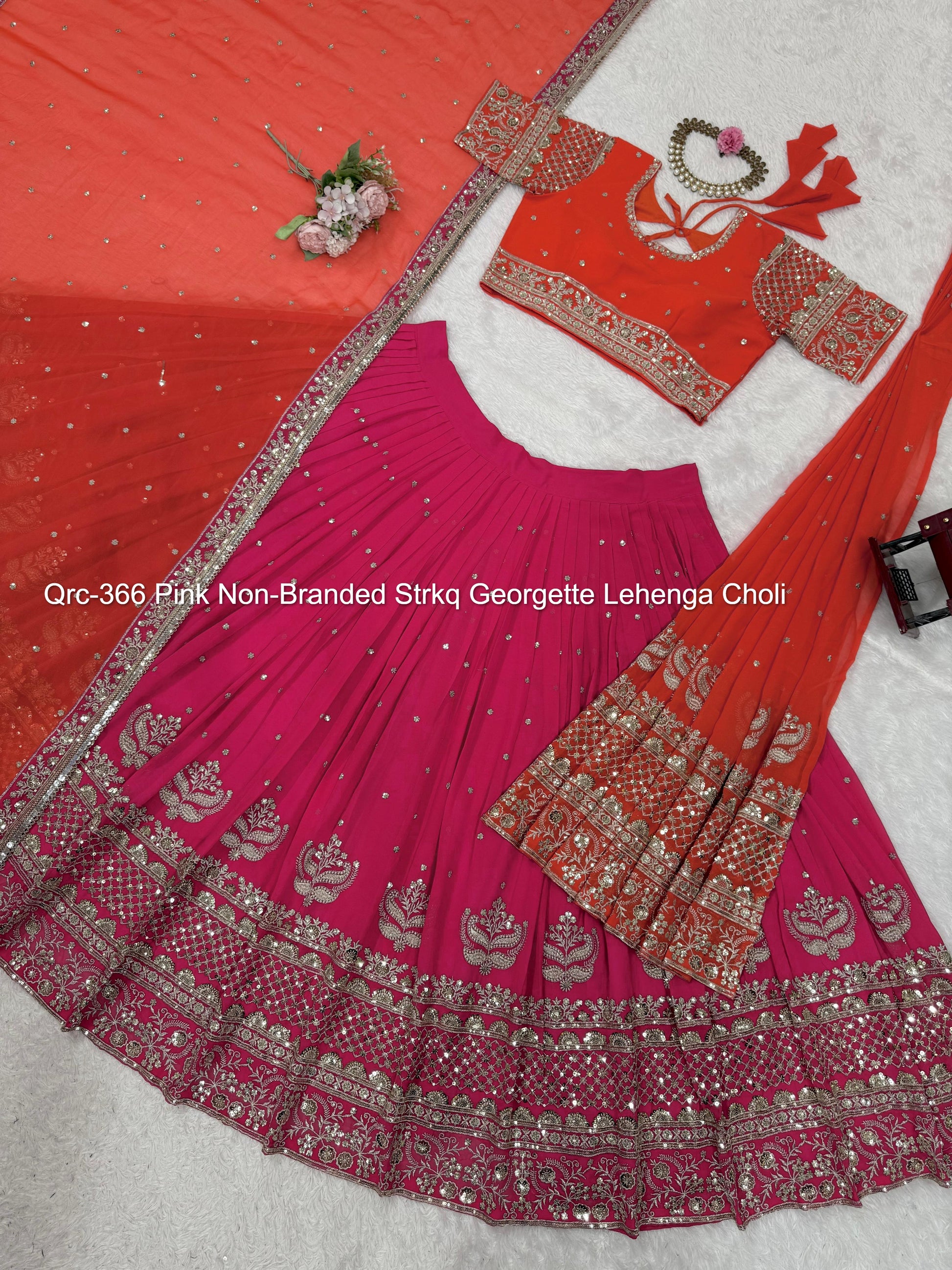 Qrc-366 Pink Non-Branded Strkq Georgette Lehenga Choli