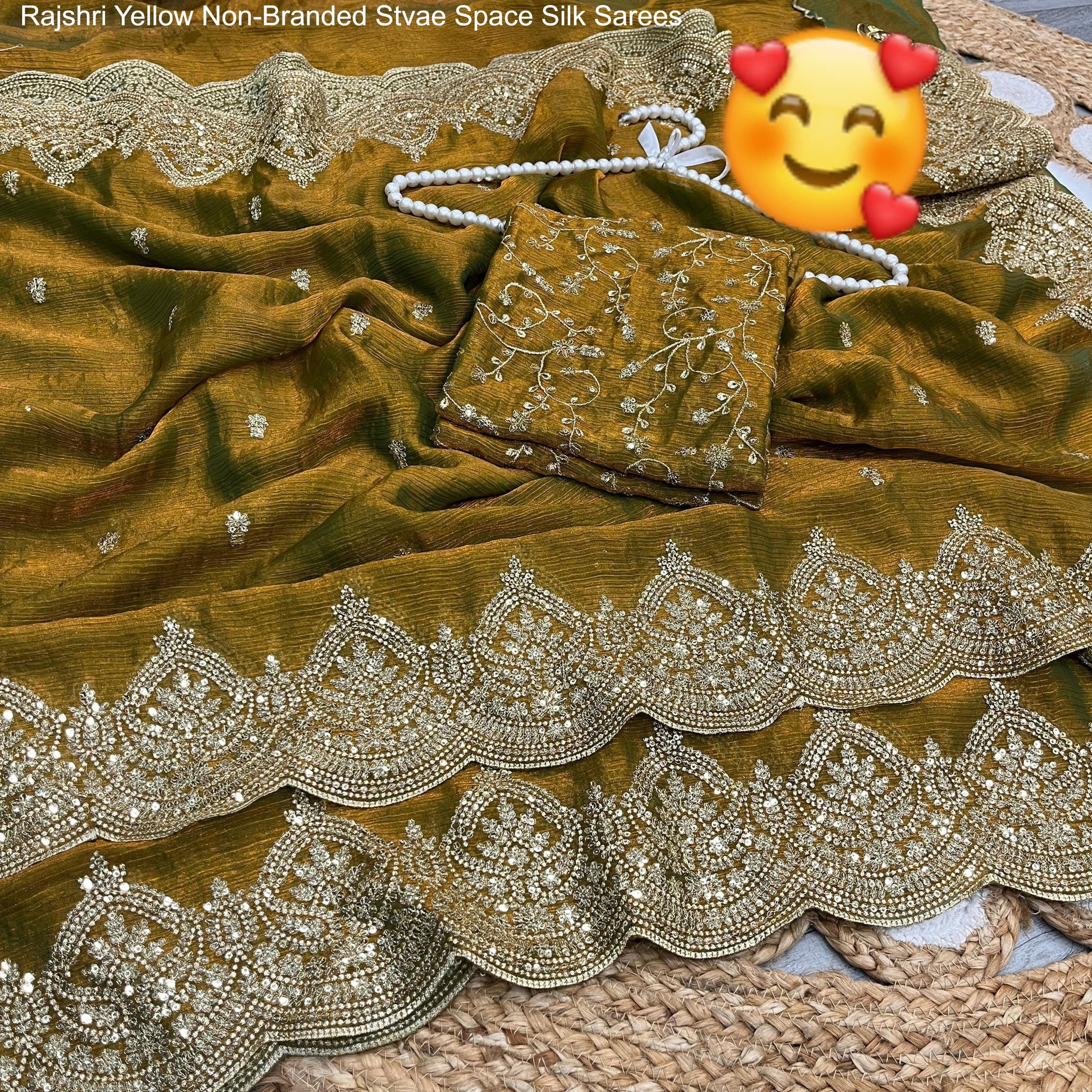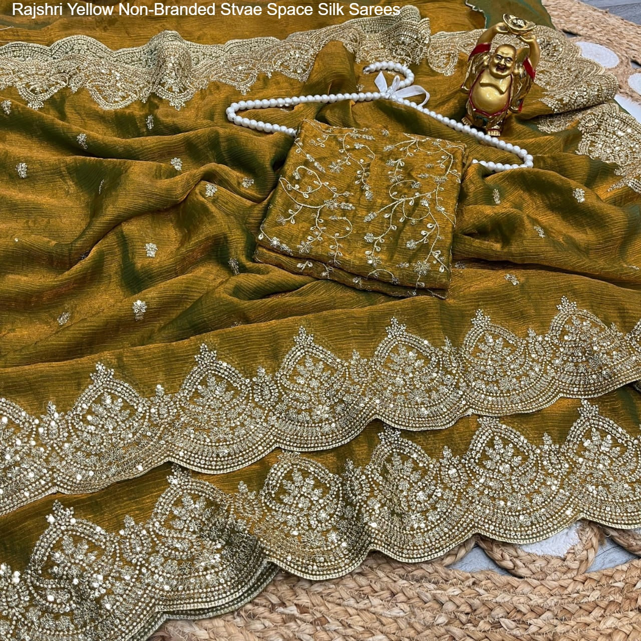 Rajshri Yellow Non-Branded Stvae Space Silk Sarees