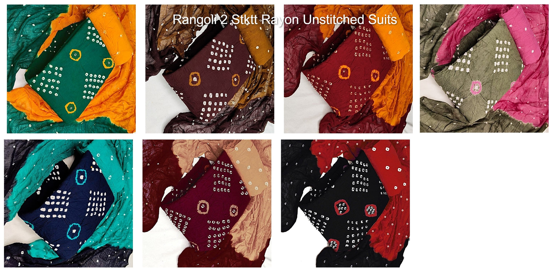 - Rangoli 2 Stktt Rayon Unstitched Suits Dealer Ahmedabad Surat Wholesale Gujarat India Lowest Price Best Quality Buy Purchase Shipping Kurta Salwaar Kameez Also free Cash on delivery
