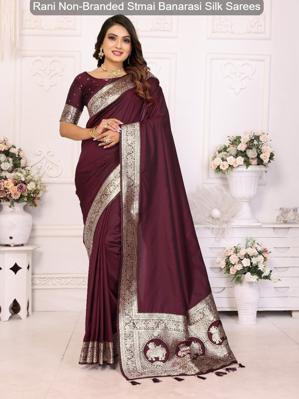 Rani Non-Branded Stmai Banarasi Silk Sarees