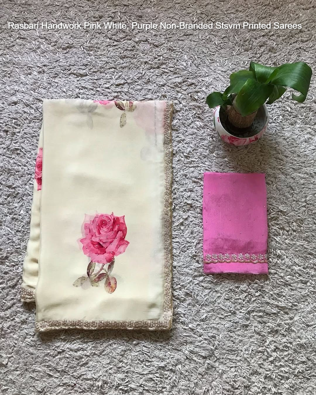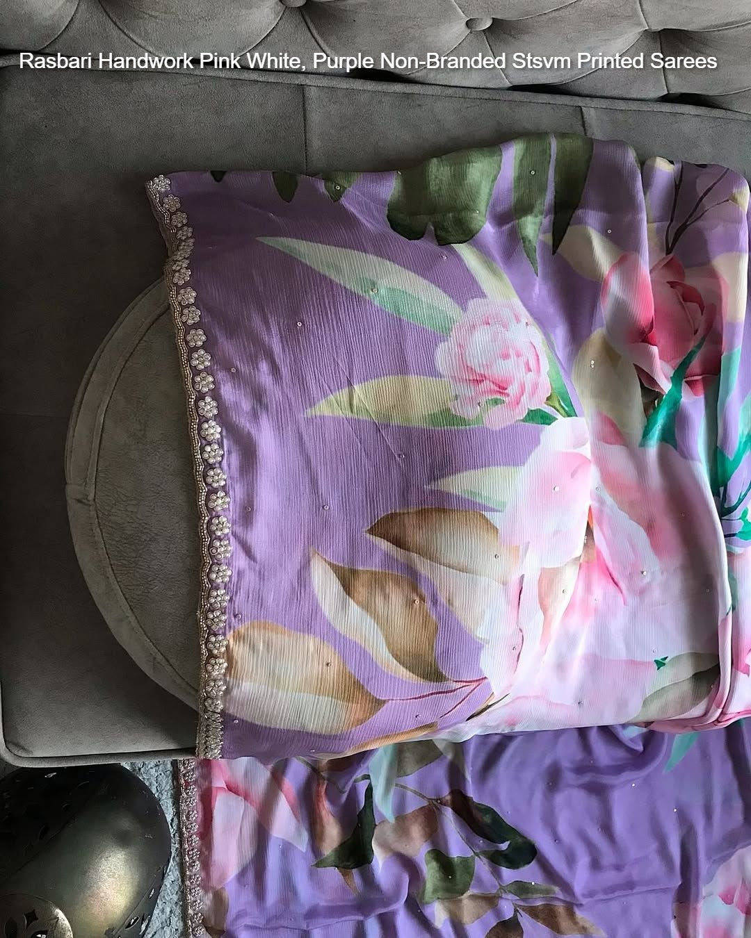 - Rasbari Handwork Pink White, Purple Non-Branded Stsvm Printed Sarees Dealer Ahmedabad Surat Wholesale Gujarat India Lowest Price Best Quality Buy Purchase Shipping Kurta Salwaar Kameez Also free Cash on delivery