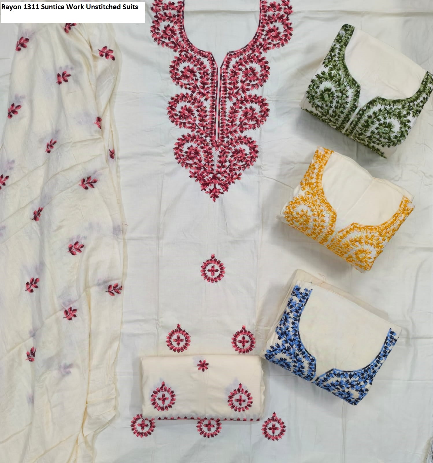 - Rayon 1311 Suntica Work Unstitched Suits Dealer Ahmedabad Surat Wholesale Gujarat India Lowest Price Best Quality Buy Purchase Shipping Kurta Salwaar Kameez Also free Cash on delivery
