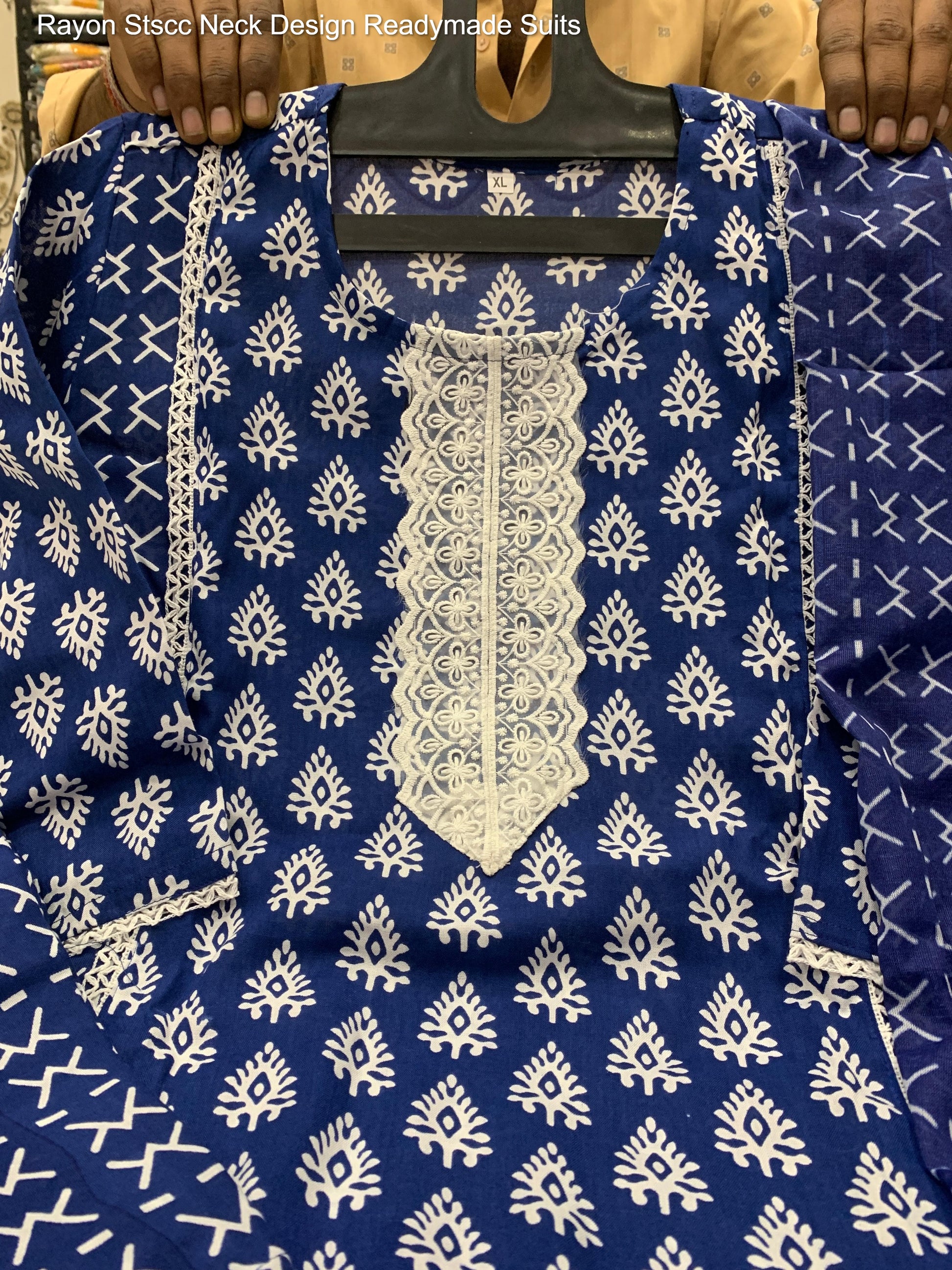 - Fabric Detail: Top : Rayon Cotton Round Neck Design Heavy Lace , Bottom : Rayon Cotton , Dupatta : Rayon Cotton , Size : M, L, Xl, 2Xl