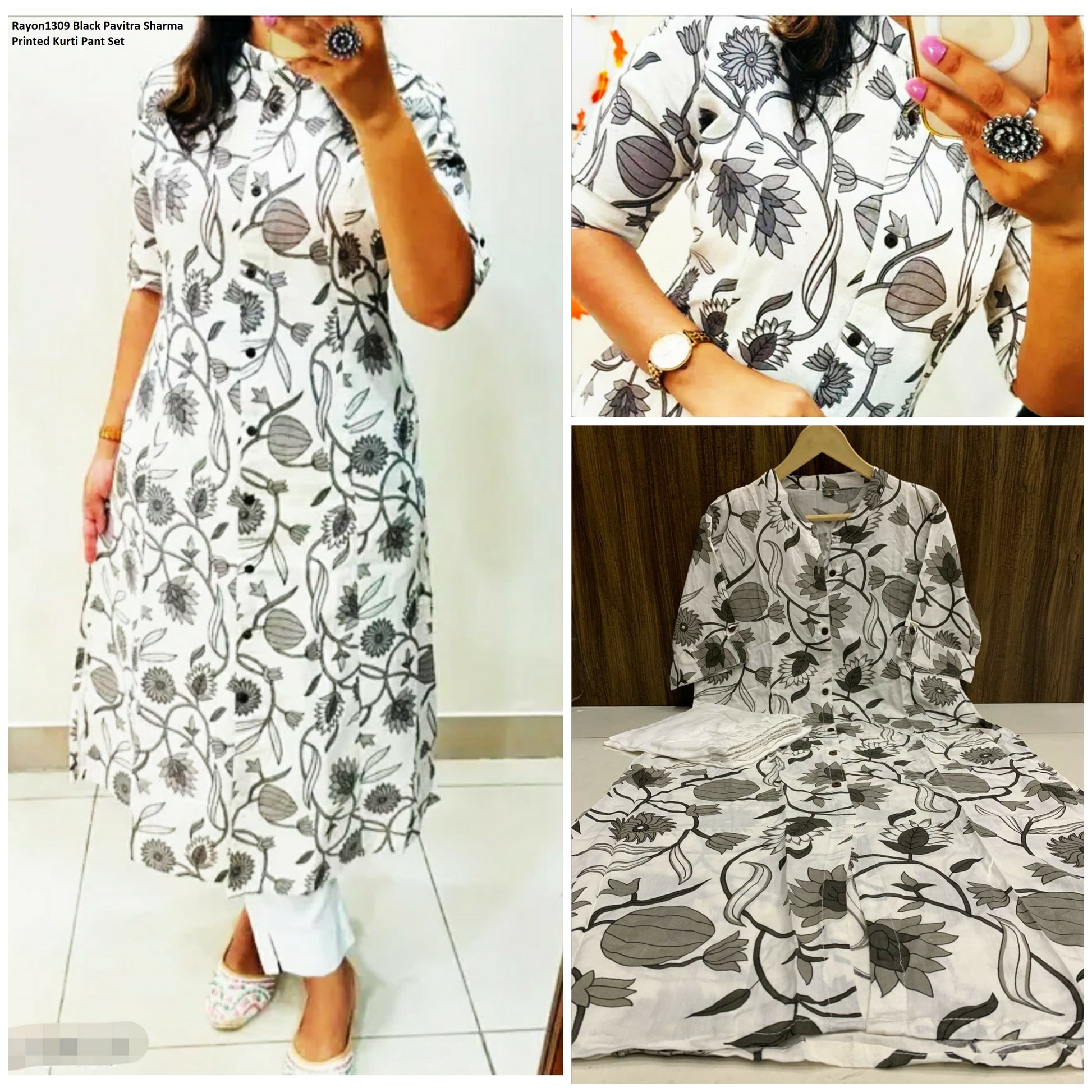 - Rayon1309 Black Pavitra Sharma Printed Kurti Pant Set Dealer Ahmedabad Surat Wholesale Gujarat India Lowest Price Best Quality Buy Purchase Shipping Kurta Salwaar Kameez Also free Cash on delivery