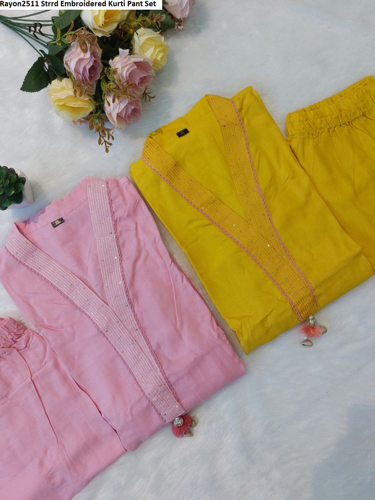 Rayon2511 Strrd Embroidered Kurti Pant Set