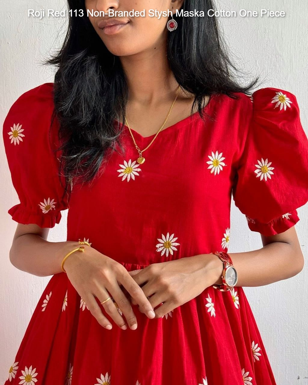 - Roji Red 113 Non-Branded Stysh Maska Cotton One Piece Dealer Ahmedabad Surat Wholesale Gujarat India Lowest Price Best Quality Buy Purchase Shipping Kurta Salwaar Kameez Also free Cash on delivery