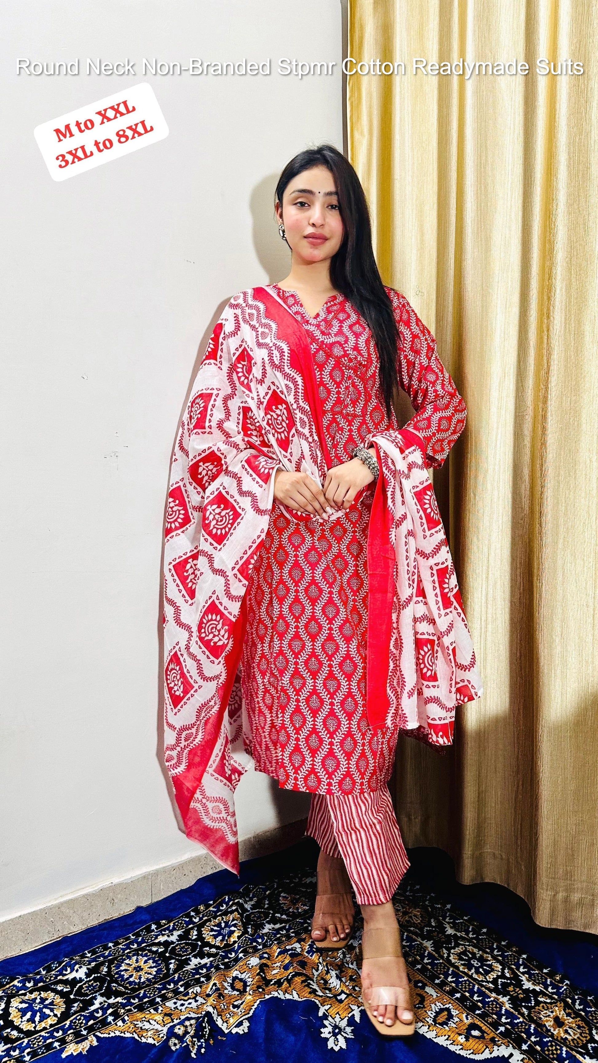 Round Neck Non-Branded Stpmr Cotton Readymade Suits