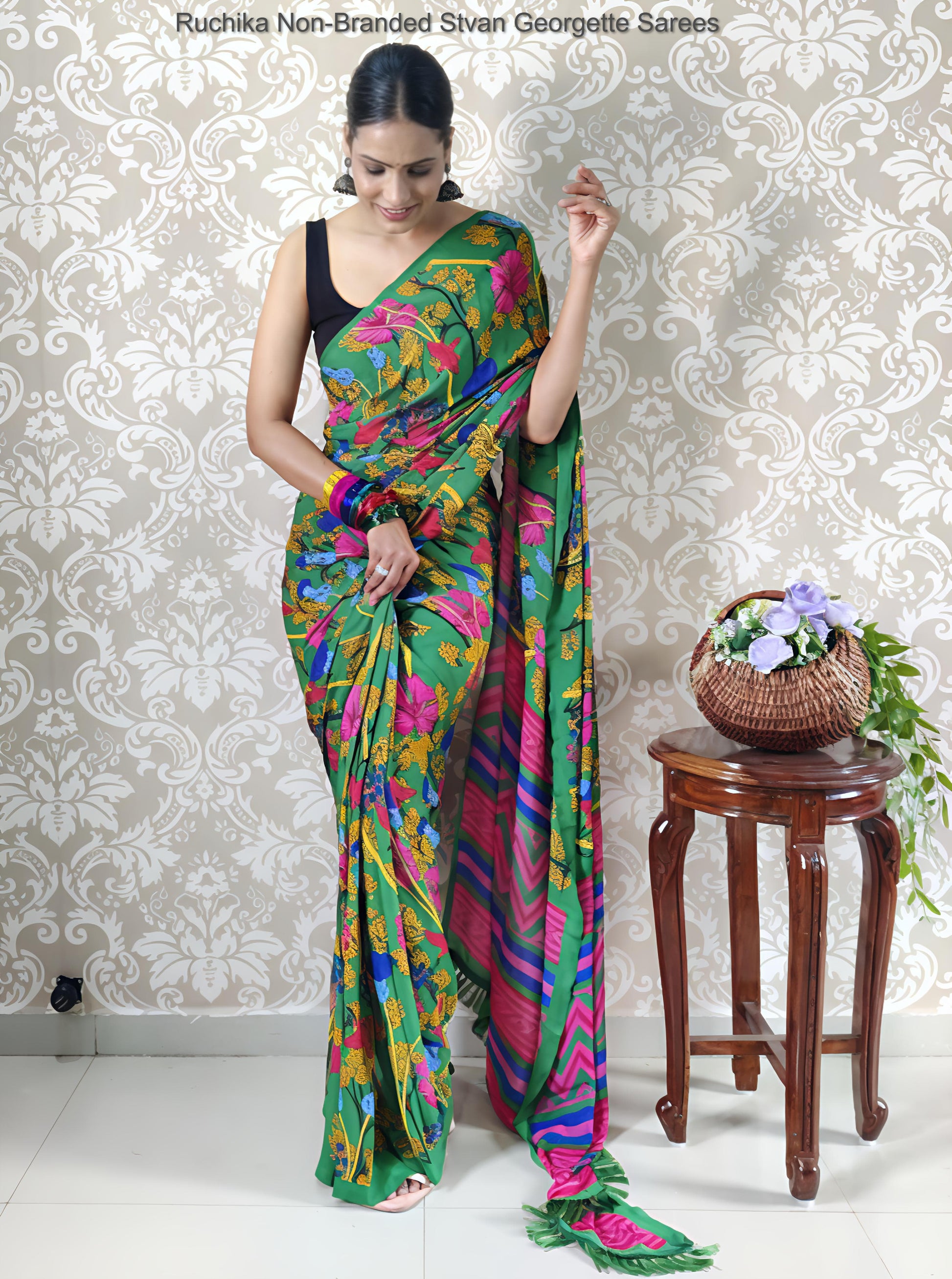 - Ruchika Non-Branded Stvan Georgette Sarees Dealer Ahmedabad Surat Wholesale Gujarat India Lowest Price Best Quality Buy Purchase Shipping Kurta Salwaar Kameez Also free Cash on delivery