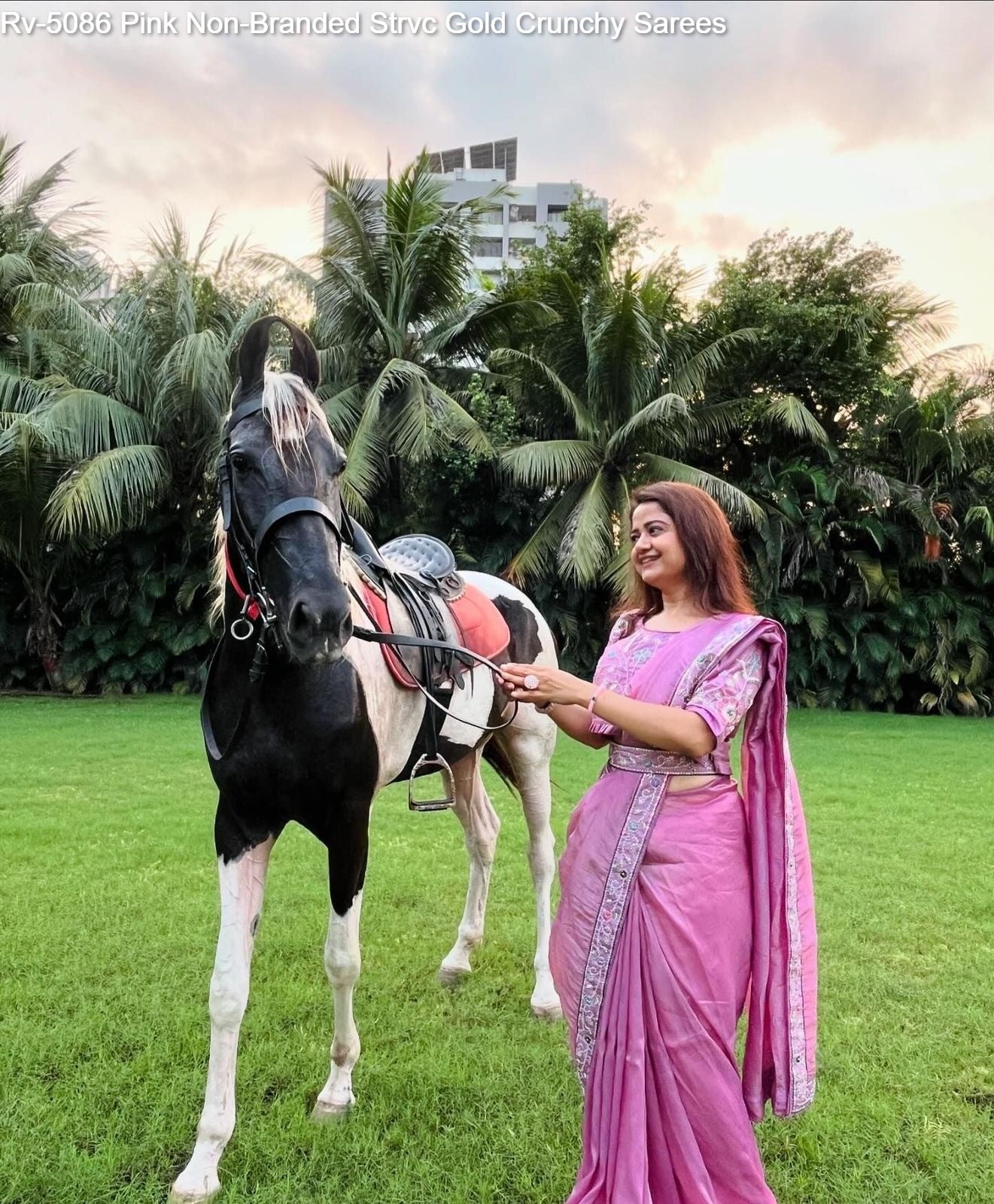 Rv-5086 Pink Non-Branded Strvc Gold Crunchy Sarees